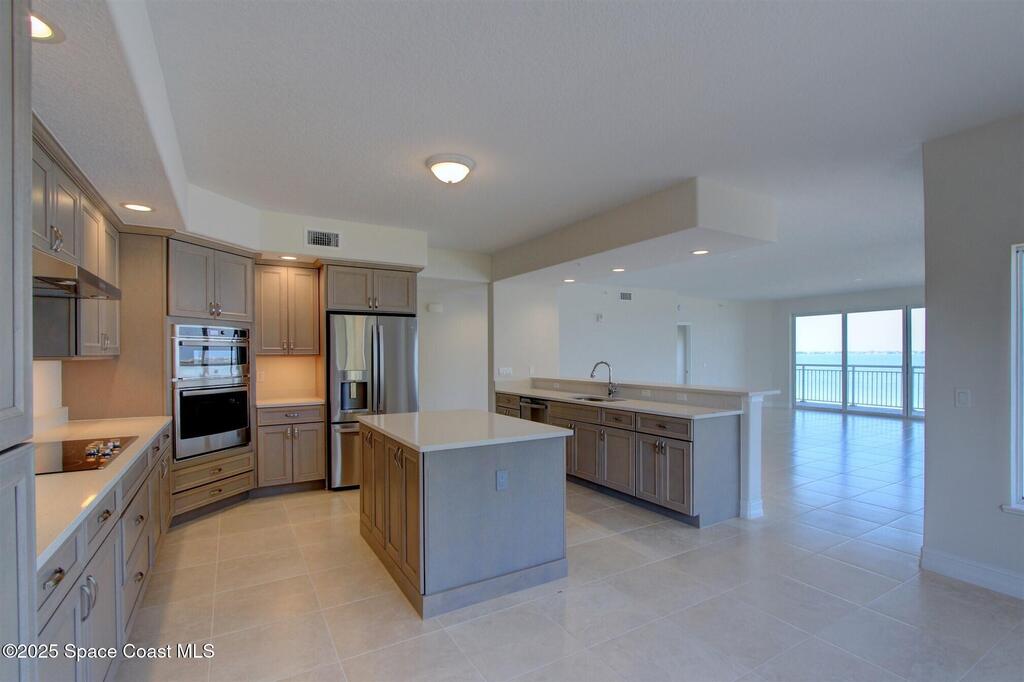 Wrap Around Balcony on this corner Unit feels like a 6th floor unit due to the elevation. Wide sweeping views of the Indian River, Eau Gallie Causeway to the North and Melbourne Causeway to the South. Brand New, 2348 sq ft of lux living space. Light fixtures have been installed and remote control window shades. The kitchen, laundry room and baths are like the size you would find in a single-family home. This unit features unique upgraded quartz countertops, and cream cabinets, tile floors throughout, and GE appliances including double ovens, beverage fridge, full size fridge, electric cooktop, and washer/dryer. Amenities include a heated pool, activity room, two elevators, decorated secure lobby, 50+ guest parking spaces. Close to downtown shops and restaurants, quick to the white sandy beaches of the Atlantic Coast, the Melbourne airport minutes away, and the Orlando attractions only 45 minutes drive.