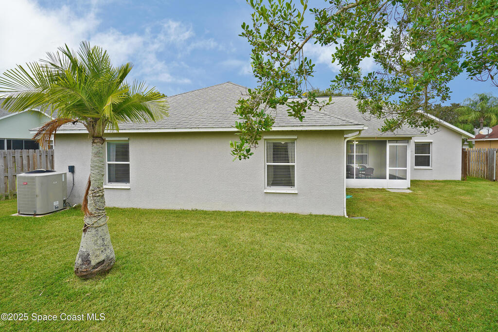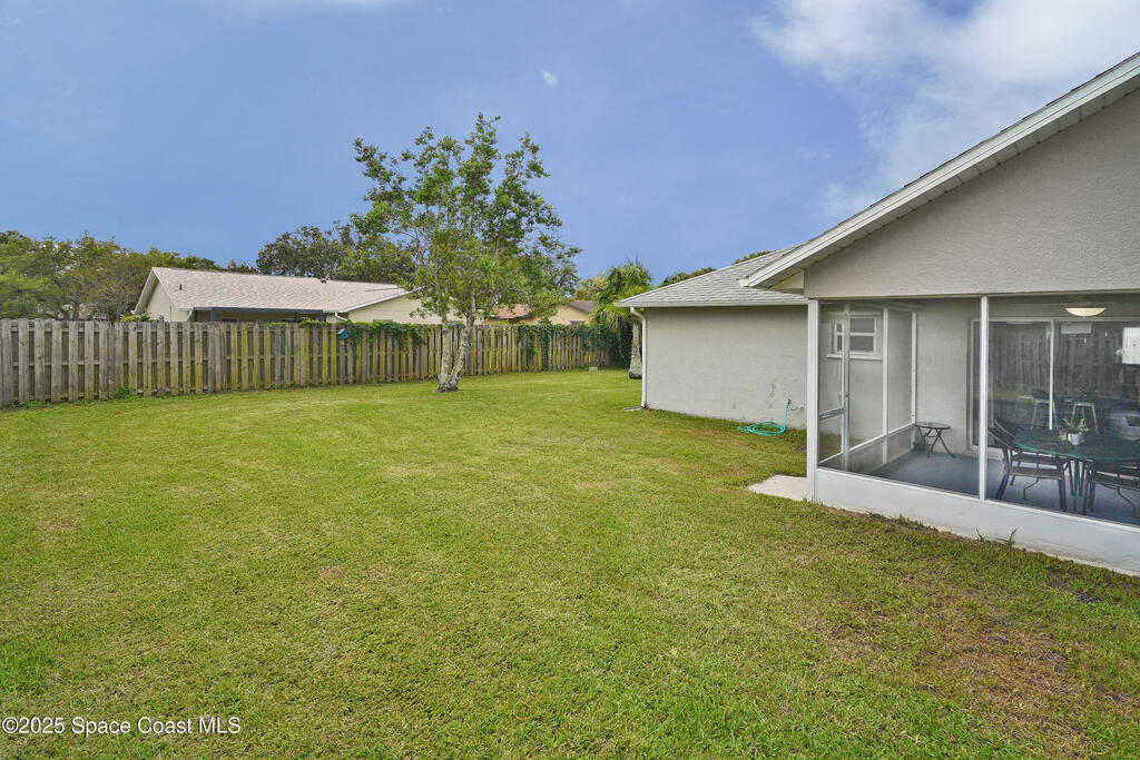 This move-in ready home is situated perfectly off of Lake Washington Rd. with only a few minutes to EGAD, the beaches & I95. Excellent floor plan, covered patio , New roof to be added before closing. Cathedral ceilings offer aesthetic benefits of elegant design and spaciousness as well as functional perks such as improved air circulation and versatility of lighting options. LOW HOA of $150 A YEAR! Vaulted Ceilings , 1846 Sq. Ft. of Living Space. Bring your pets, large fenced in backyard. Plenty of room for your dream pool. split floor plan offers privacy for the primary bedroom including his + her own walk-in closets + large bathroom. Bedrooms 2 + 4 are located on the opposite side of the home. This home is very well maintained & loved. Peaceful backyard encompassed by attractive fencing as well.