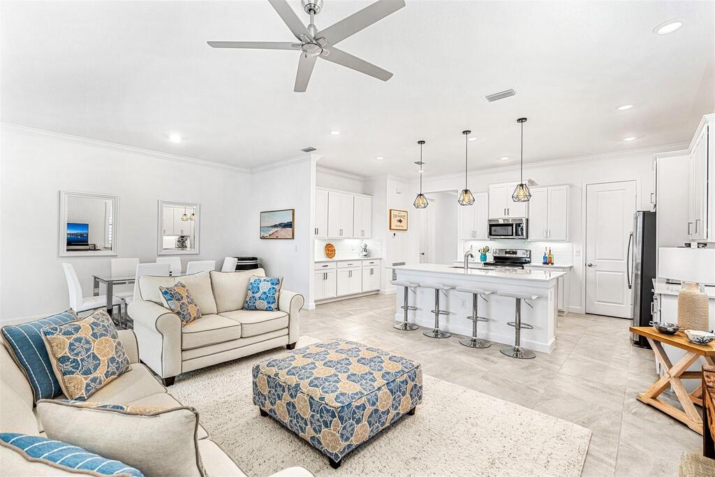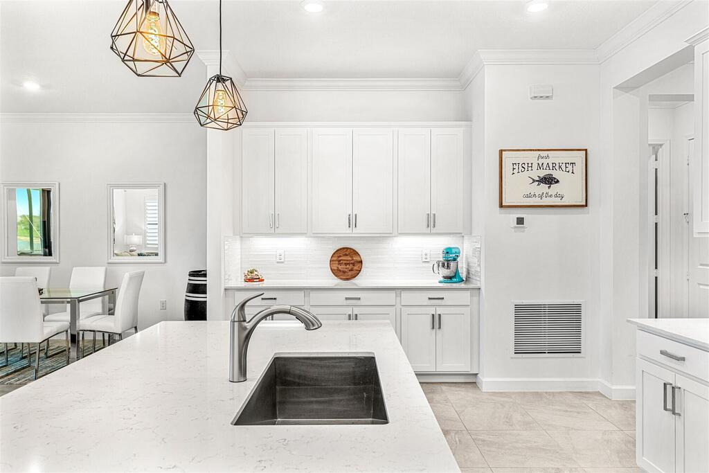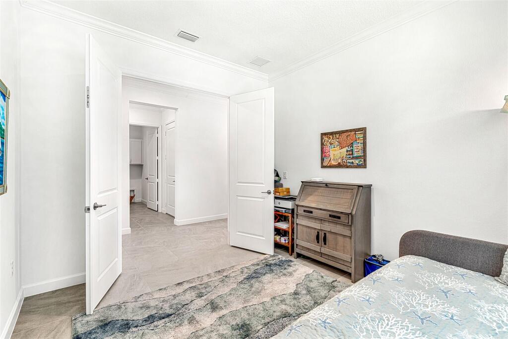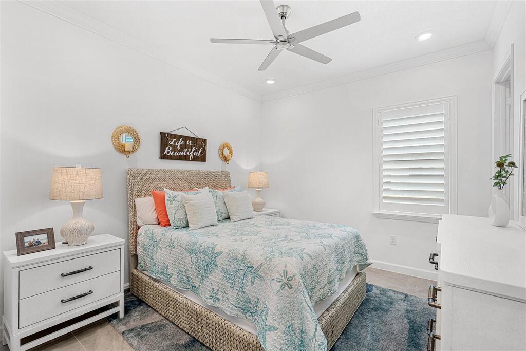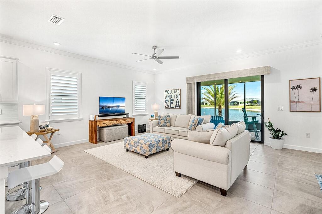 Stunning, two-year-old, 3 bedroom plus study, 3 1/2 bath, waterfront home in Bridgewater, Viera's popular gated 55+ resort style community. All three bedrooms are en-suites, making the Key Largo the most coveted floorplan! This meticulous, barely lived in home is loaded with extras including IMPACT WINDOWS and SLIDERS, plantation shutters and crown molding throughout, tile floors (no carpet!), screened lanai, luxury bath package, LED's in all bedrooms and great room, ceiling fans, pendent lights and 8' doors. Other ''must haves'' include white kitchen cabinets w/glass tile backsplash, quartz counters in kitchen & baths, and laundry room cabinets! Storage galore with 8 closets, plus a walk-in pantry and a 20'X21' garage! Owner added $13,000 in additional landscaping to enhance this impeccable lake front home! Truly turnkey! May also be sold furnished at an added cost. Unbelievable clubhouse w/ heated pool and spa, movie theater, fitness center, coffee lounge, tennis & pickleball.