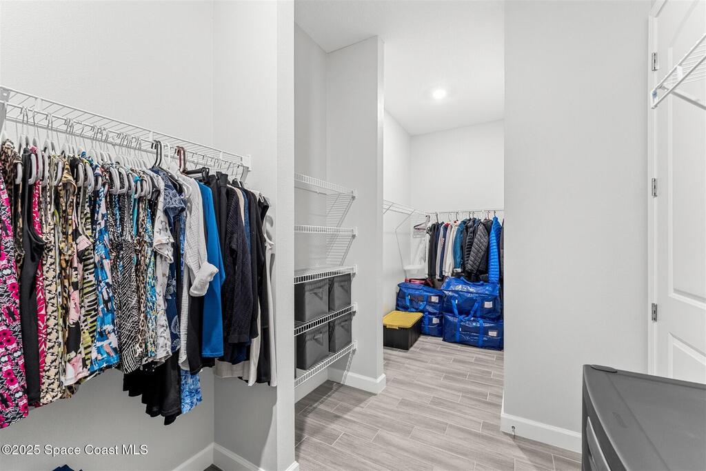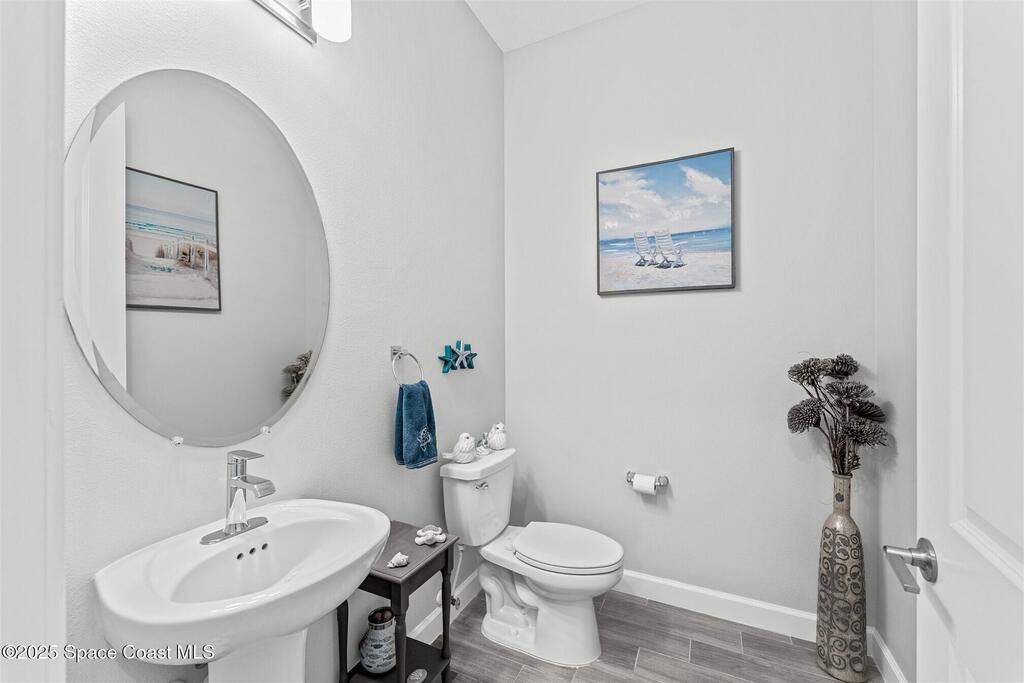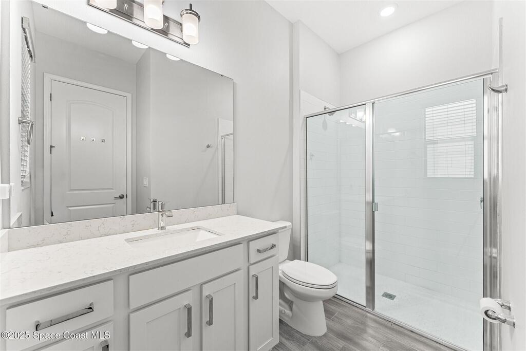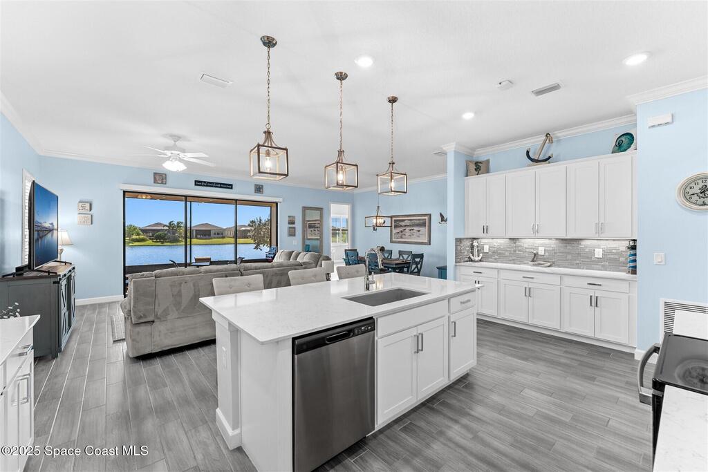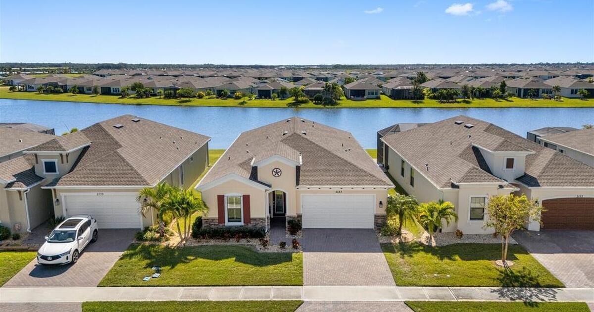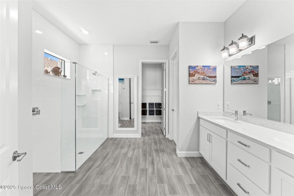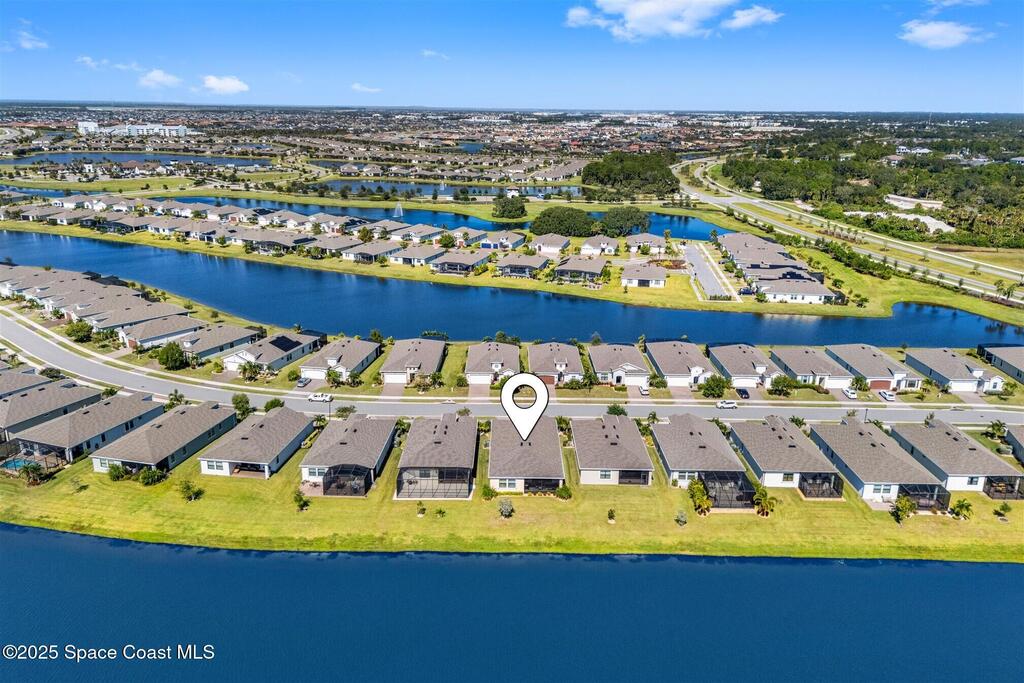 Pristine 3 bedroom plus study, 3 1/2 bath home in Bridgewater, Viera's popular 55+ resort style community! Move in ready with every upgrade: new porcelain tile plank floors throughout, crown molding, plantation shutters, screened in lanai, 8' doors, epoxy garage floors and more! Perfect for guests, every bedroom is an ensuite with its own bath! Large three panel sliders in great room bring the beautiful lake views into your home and set it apart from similar key largo style homes! The outside is as meticulous as the interior with stone trim enhancing the freshly painted exterior. As you approach the home, you will notice the stone landscape beds and impact glass etched front door. Accordion shutters are on all windows and sliders and a transformer switch for a future generator add to your peace of mind. The private clubhouse offers a large heated pool and spa, fitness center, tennis & pickleball courts and a movie theater! Short drive to ocean beaches, cruise ships, shopping, dining!