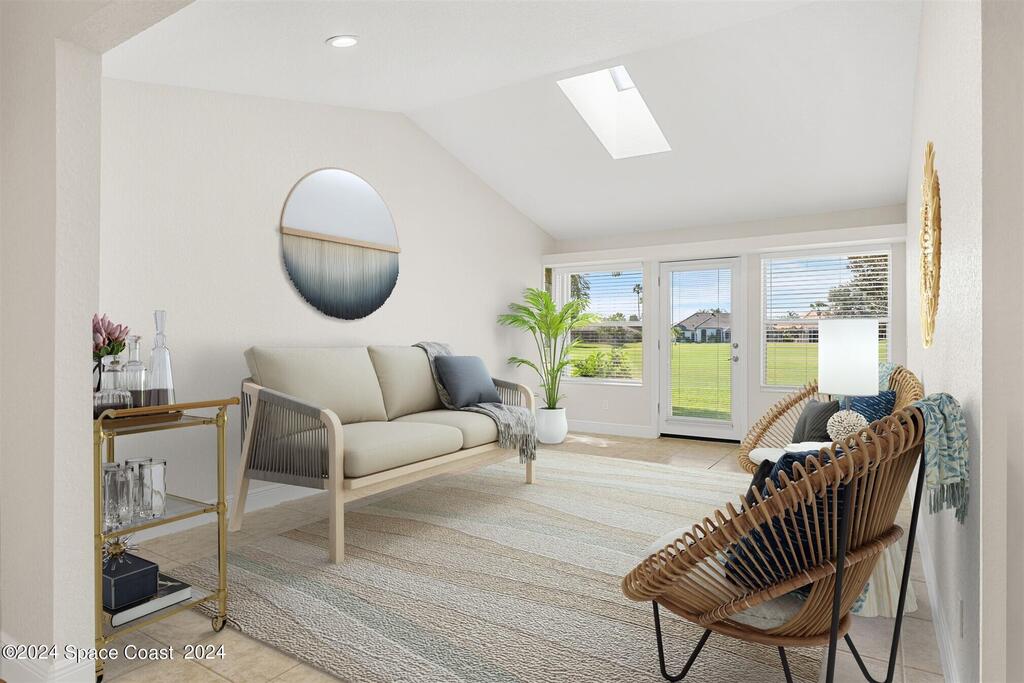 Suntree direct golf course lot located in Quail Point. Move in ready, two bedroom, two-bath townhome. The open floor plan boasts skylights, new cabinetry, interior doors, hardware, plumbing and paint throughout. Enjoy stunning sunset views across of the 15th hole of the Suntree Country Club. The spacious primary bedroom features a thoughtfully redesigned bathroom with new walk-in shower and Japanese style soaking tub. The original back patio has been incorporated into the home adding 225 SF of AC'd living space (not reflected in tax rolls). Even the front courtyard has been newly landscaped! Oversized 2+ car garage (600 SF) with newly surfaced concrete floor can accommodate a golf cart, two cars and much more. The community pool is directly across the street. Zoned for A rated schools including the new middle school and high school in Viera. HOA fees cover landscaping and pest control making this the perfect low maintenance abode.