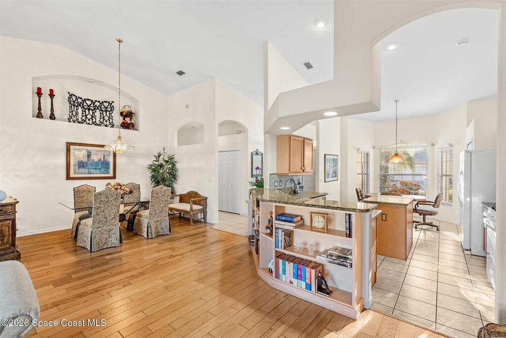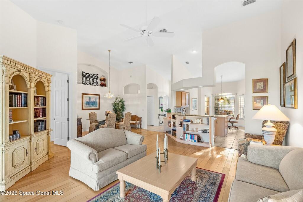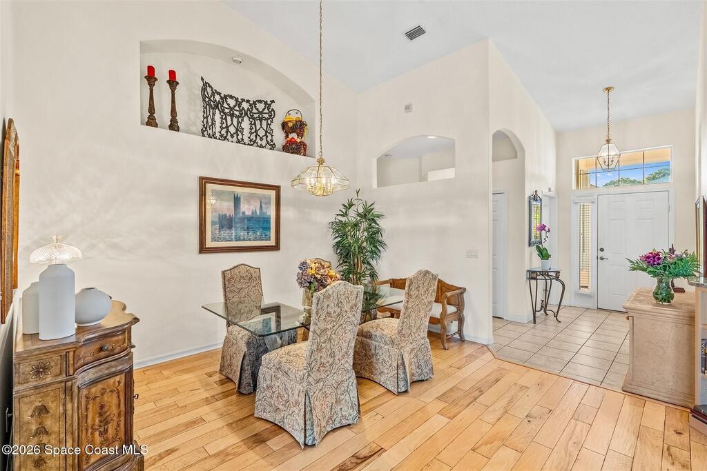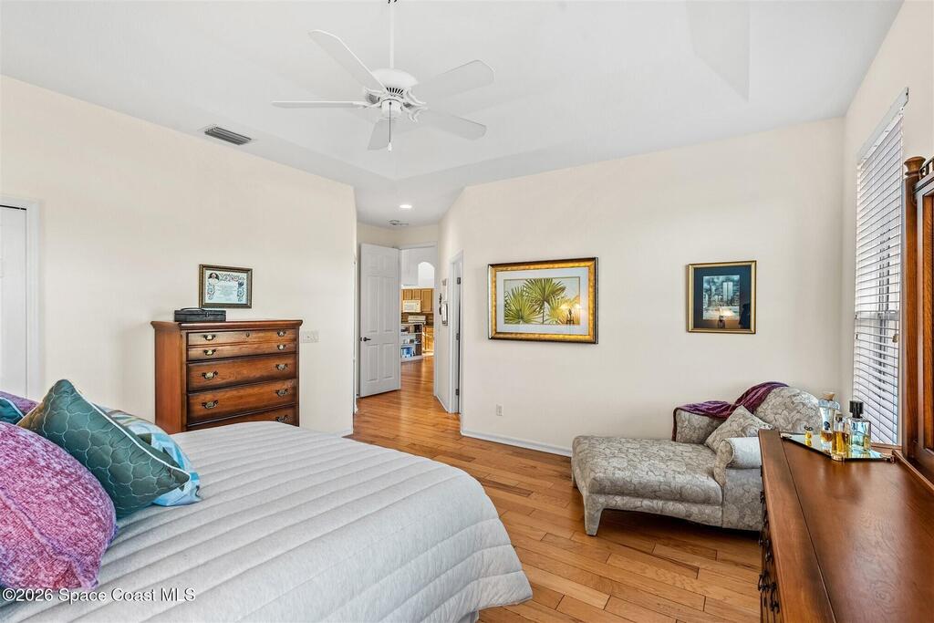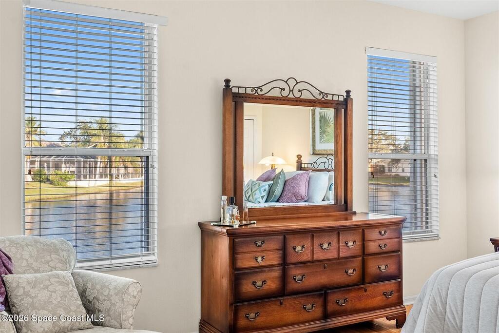 Enter through the community gate of Magnolia Pointe in Suntree and follow around to this 3-bedroom, 2-bath, 2-car garage home with water views! This popular one level floor plan has upgrades that include: granite countertops, new shower in hall bathroom, 140 sq. ft. porch with air (total sq. footage= 1,921), engineered wood flooring by Classic Wood Floors in the main living areas and all bedrooms (no carpet). Enjoy the east facing views and watch the ducks and wildlife on the waterway from the patio, porch, great room or primary bedroom.This half-duplex offers a low-maintenance lifestyle which includes lawn and sprinkler care, roof replacement, exterior painting, exterior insurance and more. A community pool and cabana complete the picture for a great lifestyle in a quiet community near shopping and restaurants.Original owners leaving their much-loved home and community to be closer to children. Roof (2016 by HOA), Water Heater (2014, HVAC (2016)