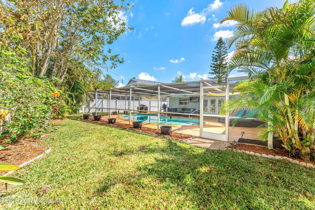 Villa De Palmas! Well appointed home fully remodeled Pool home featuring 4 bed/2 bath and a fenced in Private Yard Waterproof, stain resistant wood floors in the main living spaces and primary suite. HUGE kitchen has soft close, wood shaker cabinets, upgraded hardware, electric range overlooking the family room, double oven, granite countertops with matching backsplash, and more! Primary suite with double sinks and walk-in shower with decorative tile. Massive back yard, with brand new white vinyl privacy fence, and workshop w/ electricity and water. The screened pool has hookups for electric heat (if desired), and the oversized patio is perfect for gatherings and parties! Heated Pool and so much more located close to Shopping, Beaches ,Golf and more!