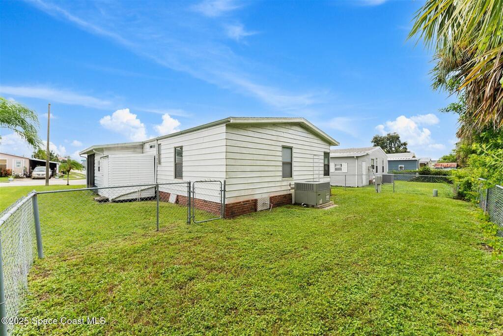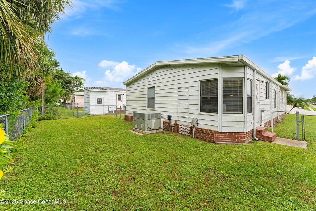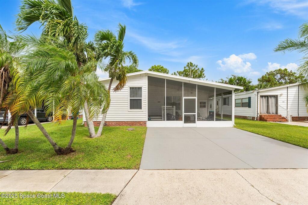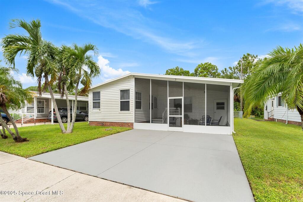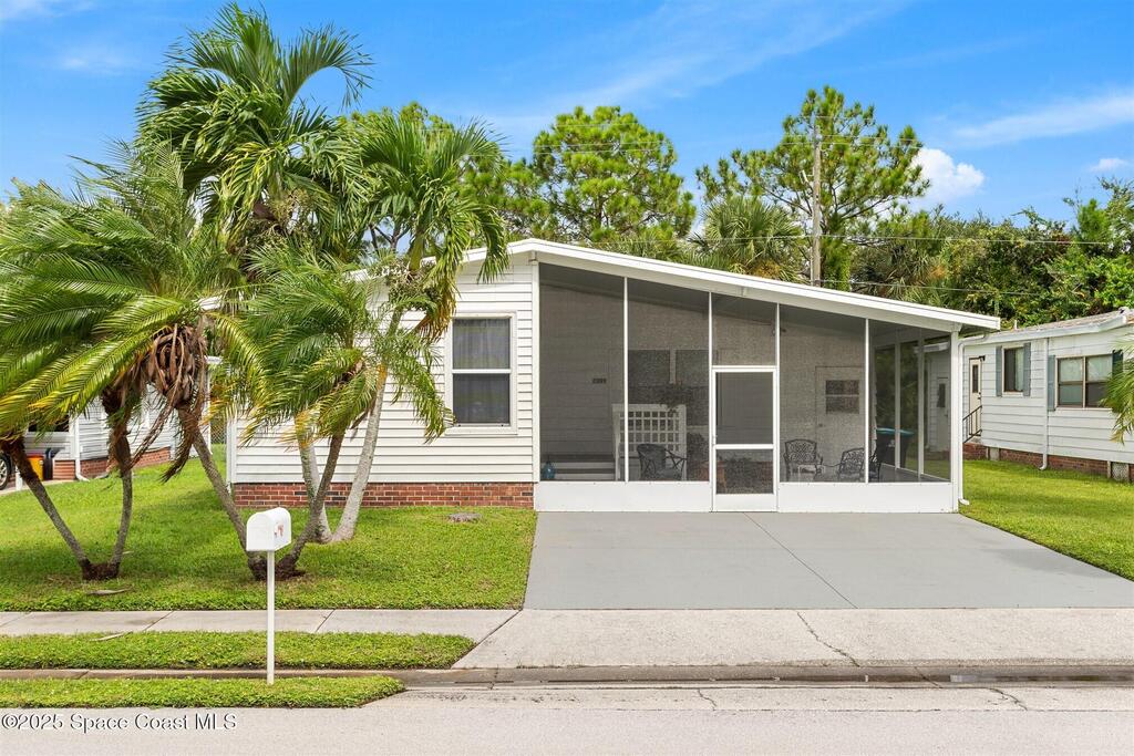 Welcome to this beautifully updated and meticulously maintained 2-bedroom, 2-bath manufactured home in the desirable 55+ community of Palm Bay Colony. Flooded with natural light, this spacious home features a bright family room, a separate dining area perfect for entertaining, and a well-equipped kitchen. Enjoy peace of mind with a new roof (2021) and A/C system (2022). Just move right in! The home offers a comfortable layout with generous living space, and both bedrooms provide ample storage. Step outside to a tidy fenced yard on land you own. No lot rent here! The voluntary HOA offers added flexibility and low-maintenance living. Palm Bay Colony is close to shopping, dining, medical facilities, and other amenities, making everyday convenience a breeze. Whether you're looking to downsize or enjoy a seasonal retreat, this bright, inviting home has everything you need in a friendly, active community. Don't miss this rare opportunity. Schedule your showing today!