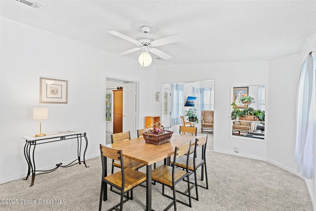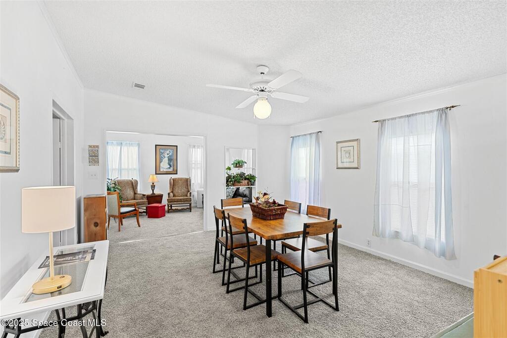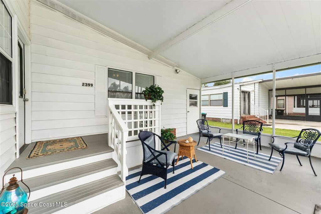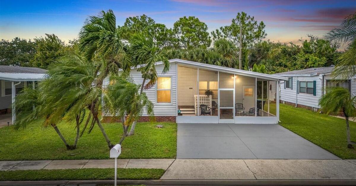 Welcome to this beautifully updated and meticulously maintained 2-bedroom, 2-bath manufactured home in the desirable 55+ community of Palm Bay Colony. Flooded with natural light, this spacious home features a bright family room, a separate dining area perfect for entertaining, and a well-equipped kitchen. Enjoy peace of mind with a new roof (2021) and A/C system (2022). Just move right in! The home offers a comfortable layout with generous living space, and both bedrooms provide ample storage. Step outside to a tidy fenced yard on land you own. No lot rent here! The voluntary HOA offers added flexibility and low-maintenance living. Palm Bay Colony is close to shopping, dining, medical facilities, and other amenities, making everyday convenience a breeze. Whether you're looking to downsize or enjoy a seasonal retreat, this bright, inviting home has everything you need in a friendly, active community. Don't miss this rare opportunity. Schedule your showing today!