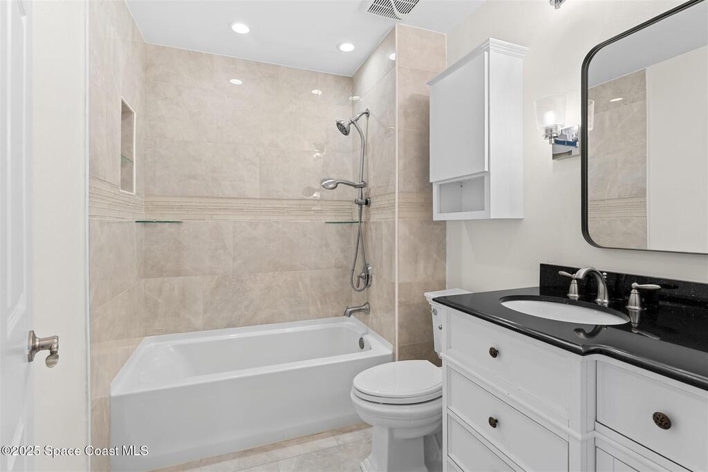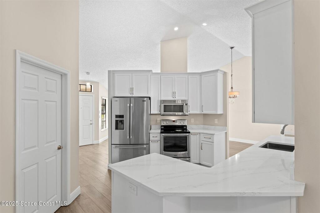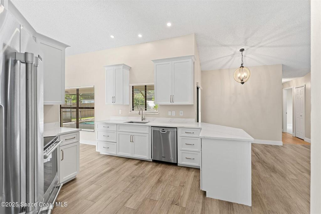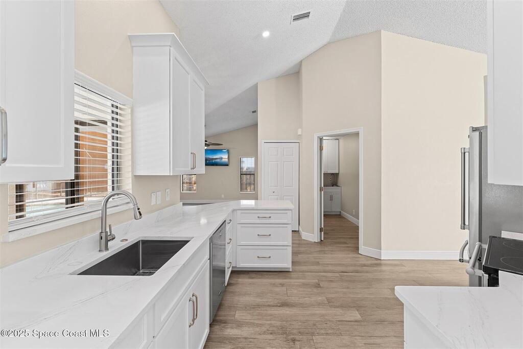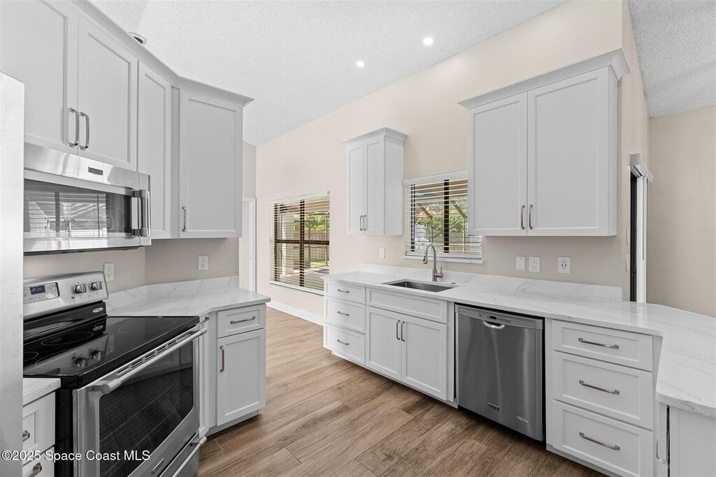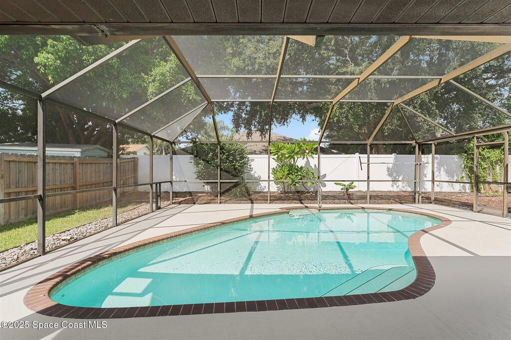 Welcome to this updated 3 bedrooms, 2 bath, pool home with natural gas generator located in a quiet neighborhood with mature trees, lush landscaping and sidewalks. When you enter this house, you will be greeted with vaulted ceilings, tiled floors and a bright, recently remodeled kitchen which features new cabinets and beautiful quartz countertops. The primary bathroom is gorgeous with new cabinets, floors, tile, lighting and offers a large closet that has been finished by a custom closet expert. The interior and exterior are freshly painted; the roof was replaced in 2016. Conveniently located in central Brevard with easy access to Viera, beaches, and Orlando.