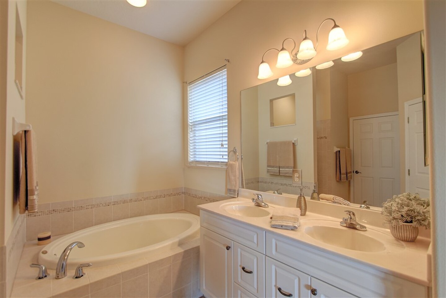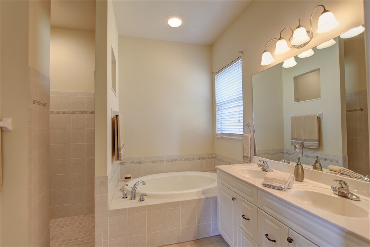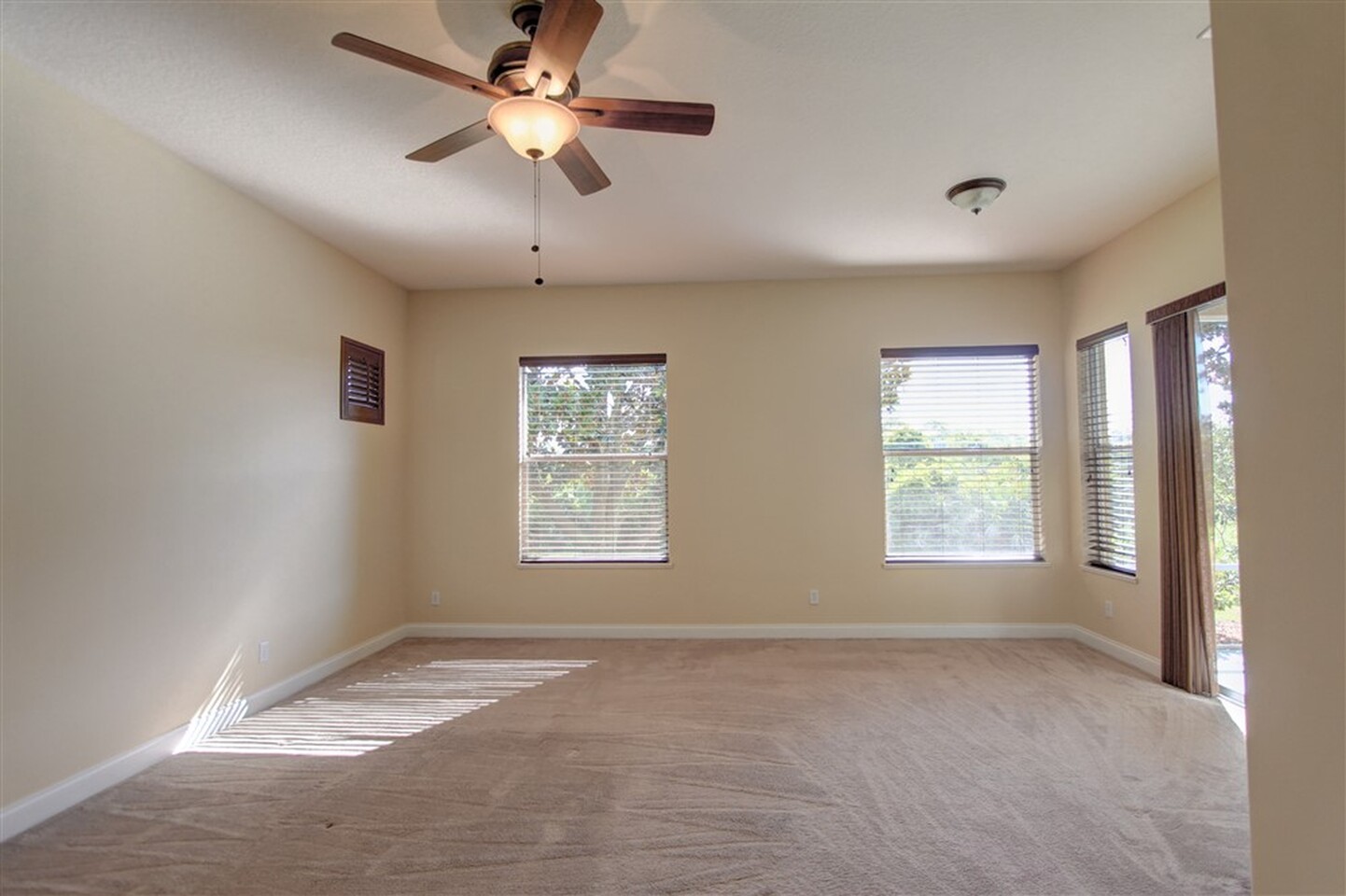 This custom-built 4-bedroom, 2-bath home in Wingate Estates offers over 2,200 sq. ft. of living space with 10-foot ceilings, a two-year-old roof (2023), a paver driveway, new 4-ton condensing unit (2024) for added comfort, and private preserve views. The community includes a resort-style pool, playground, and walking paths, perfect for families. The updated kitchen features 36-inch cabinets, Silestone quartz countertops, ample counter space, and a breakfast bar, open to the main living area for seamless family gatherings. The family room leads to a screened-in patio with private preserve views. The owner suite offers two large walk-in closets, a sitting area, and a spa-style bath with garden tub and Roman shower. A large guest bathroom has double sinks and a shower/tub combo. Three additional bedrooms provide space for family, guests, or a home office. Conveniently located near top-rated schools, shopping, dining, and I-95.