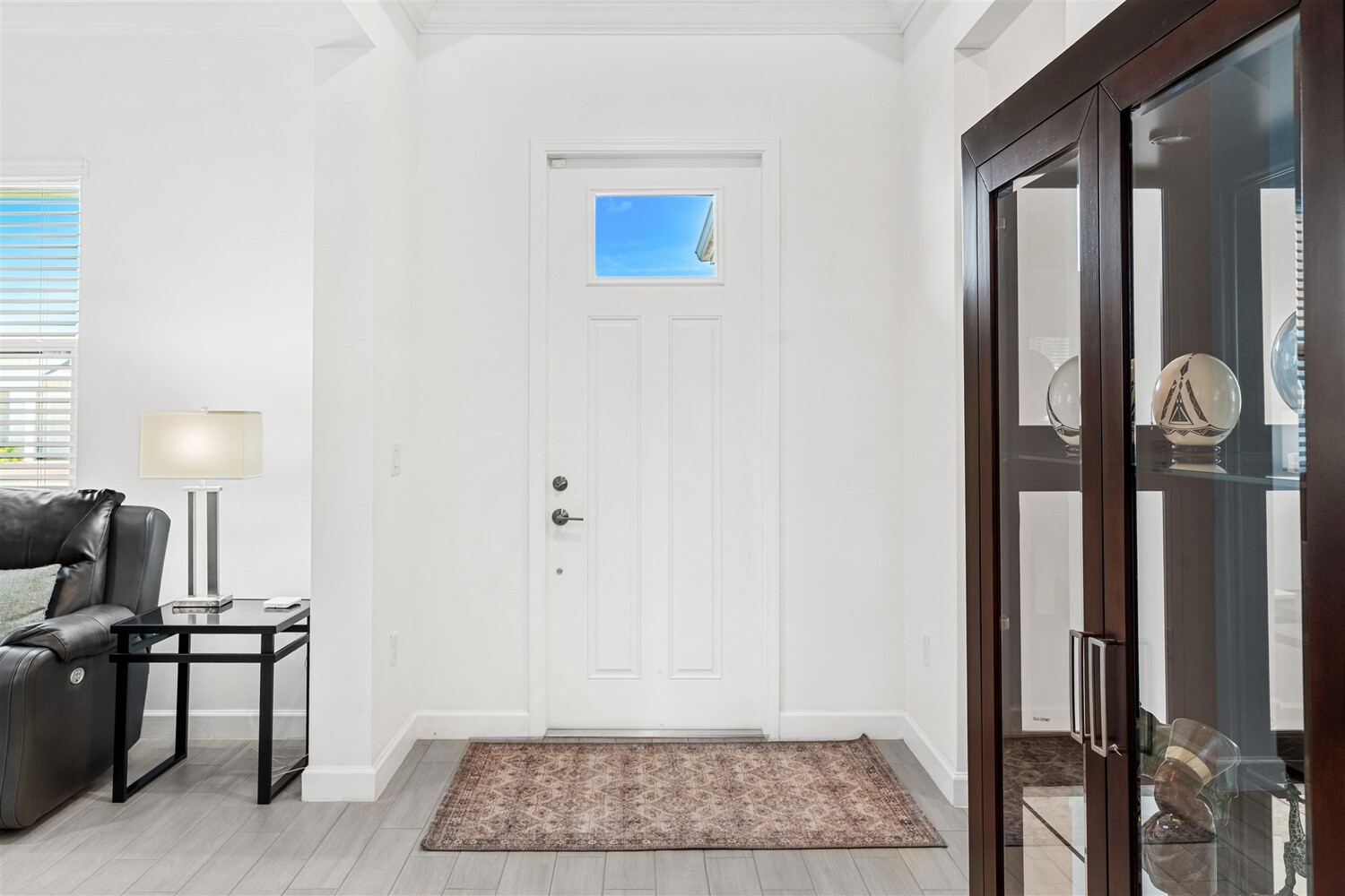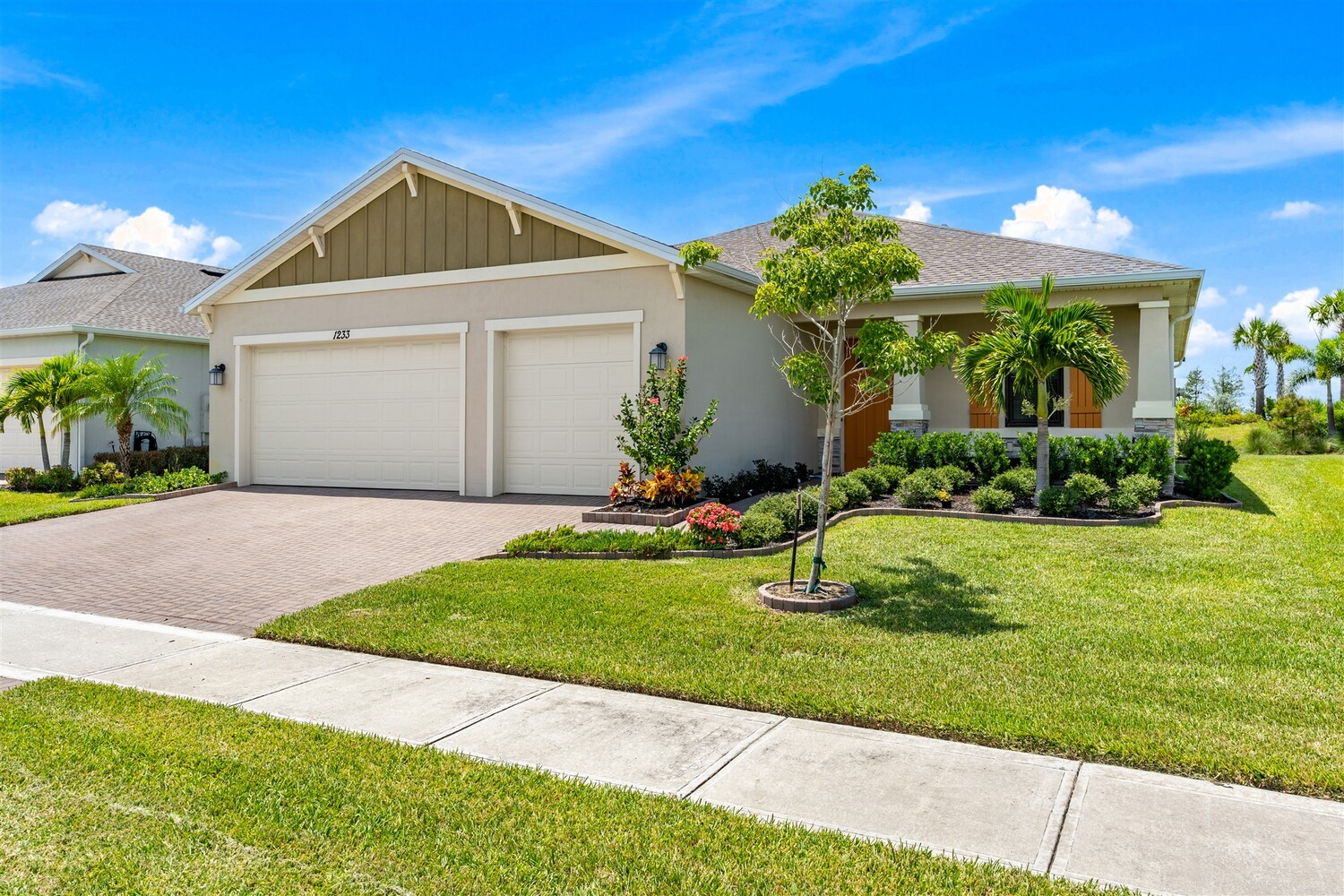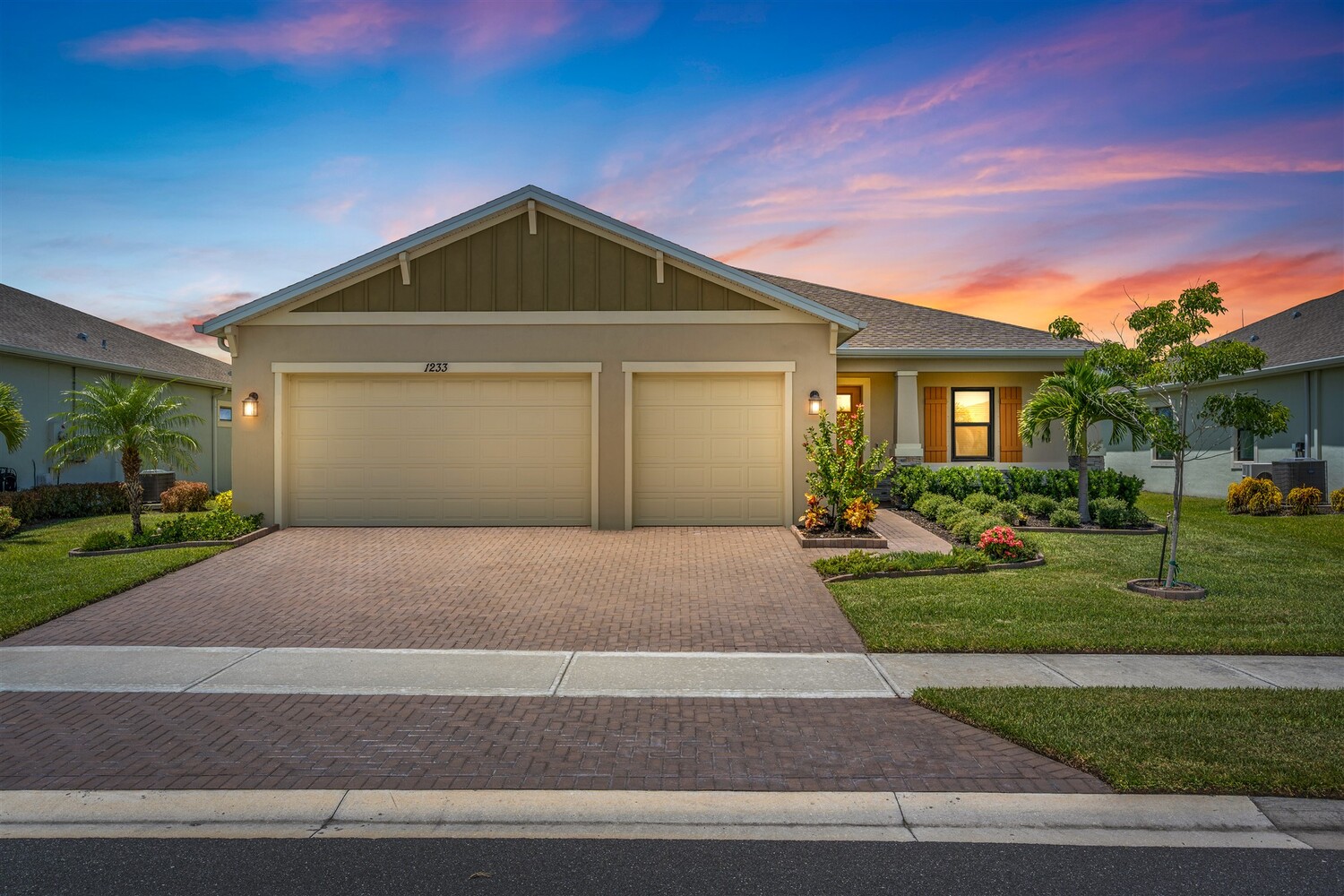 Like new, 3 bedroom, 3 car garage home in Bridgewater, Viera's popular 55+ resort style community! This stunning home has all the extras: New IMPACT WINDOWS AND SLIDERS, crown molding and tile plank floors throughout, and a gourmet kitchen with tiled backsplash, convection wall oven & microwave, cooktop, and designer hood. Enjoy the upgraded lighting package with undercabinet kitchen lights, and smart home features! Remote control roll-down hurricane screens on the back patio allow you to keep furniture outdoors during storms! And the extended screened lanai expands your outdoor living space! Even the garage doesn't disappoint with an epoxy floor! Whole house water treatment system, upgraded HVAC w/ultraviolet lights complete the package! Your dream life continues at the private clubhouse with a heated pool and spa, fitness center, tennis, pickleball and bocce ball, billiards room, ballroom, coffee lounge and even a movie theater! Close to the ocean, dining, shopping, cruises!