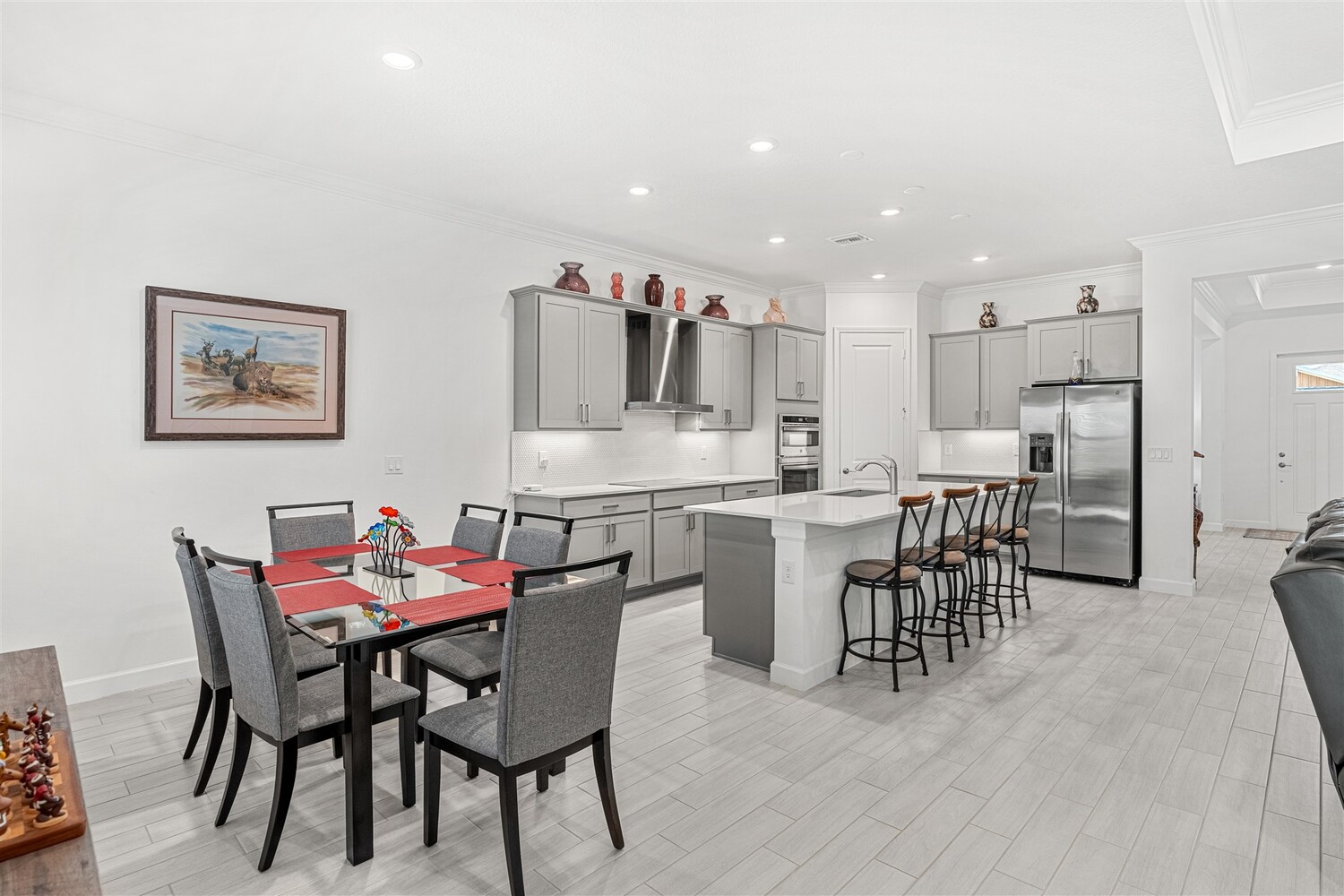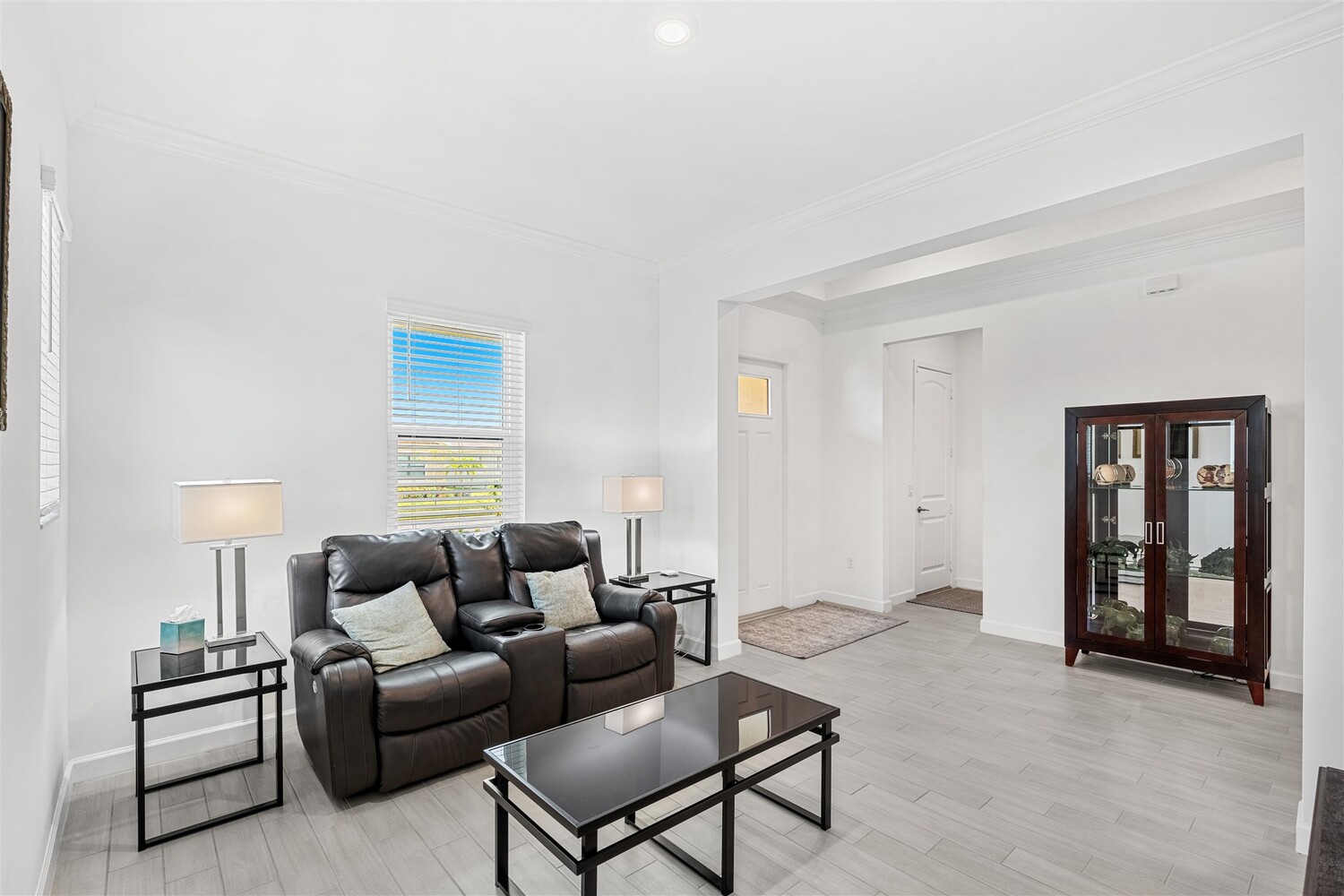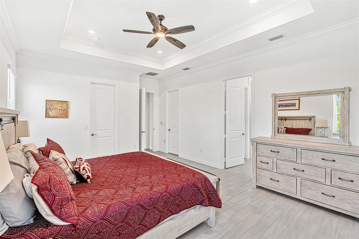 Like new, 3 bedroom, 3 car garage home in Bridgewater, Viera's popular 55+ resort style community! This stunning home has all the extras: New IMPACT WINDOWS AND SLIDERS, crown molding and tile plank floors throughout, and a gourmet kitchen with tiled backsplash, convection wall oven & microwave, cooktop, and designer hood. Enjoy the upgraded lighting package with undercabinet kitchen lights, and smart home features! Remote control roll-down hurricane screens on the back patio allow you to keep furniture outdoors during storms! And the extended screened lanai expands your outdoor living space! Even the garage doesn't disappoint with an epoxy floor! Whole house water treatment system, upgraded HVAC w/ultraviolet lights complete the package! Your dream life continues at the private clubhouse with a heated pool and spa, fitness center, tennis, pickleball and bocce ball, billiards room, ballroom, coffee lounge and even a movie theater! Close to the ocean, dining, shopping, cruises!
