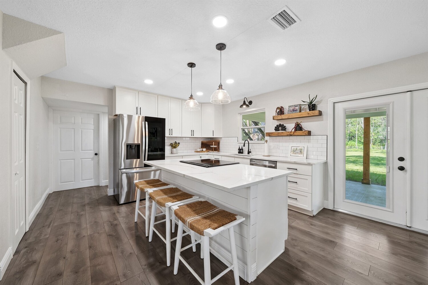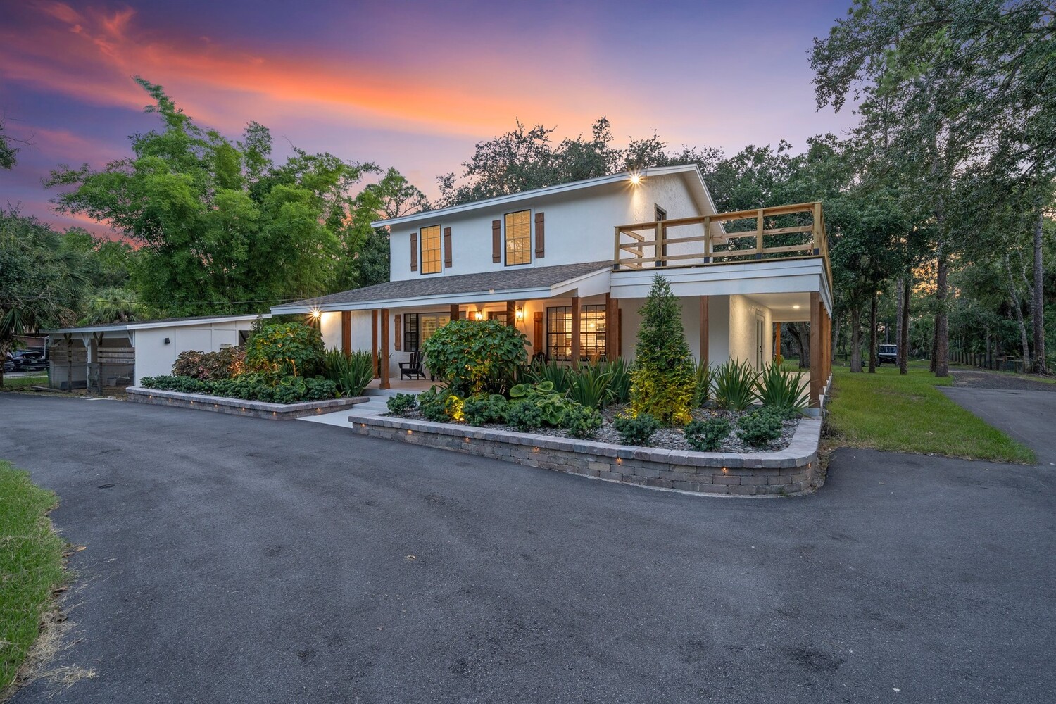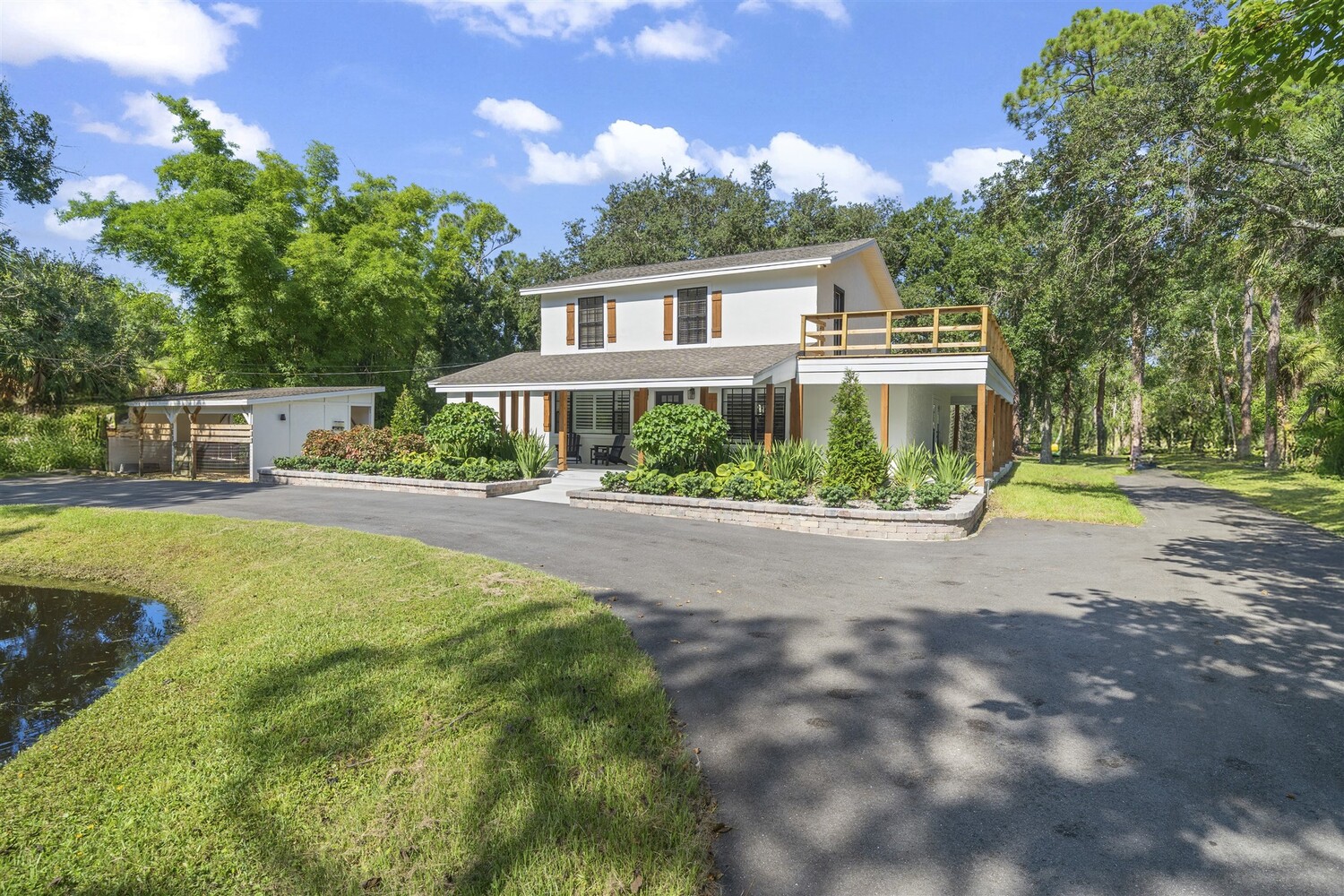 COUNTRY CHARM MEETS MODERN STYLE! Discover this beautifully renovated 4-bedroom, 2.5-bathroom modern farmhouse, perfectly nestled on nearly 2.65 private acres of peaceful countryside. This home blends timeless character with today's most desirable features, offering a unique balance of comfort, style, and functionality. Step inside to an open and airy layout centered around a stunning gourmet kitchen featuring white shaker cabinetry, bold black hardware, Quartz countertops, stainless steel appliances, and a large island ideal for gathering and entertaining. Light oak wood-style flooring flows throughout the home, adding warmth and cohesion. The main-floor primary suite offers a cozy yet spacious retreat, while three additional bedrooms and a full bath upstairs are accompanied by a flexible loft space—perfect for a home office, playroom, or creative nook. Start your mornings with coffee on the peaceful front porch overlooking your private pond, and end your day dining al fresco. Enjoy morning coffee from the peaceful front porch overlooking your private pond, and wind down with al fresco dinners and sunsets on the expansive wraparound upper deck with Western exposure. The possibilities are endless with room for a pool, large garage, animals, or all your outdoor hobbies. Additional highlights include dual laundry areas (both upstairs and down), a newer roof, A/C, and water heater (all 2021), and thoughtful upgrades throughout. If you're looking for space, style, and a one-of-a-kind lifestyle this home is a must-see!