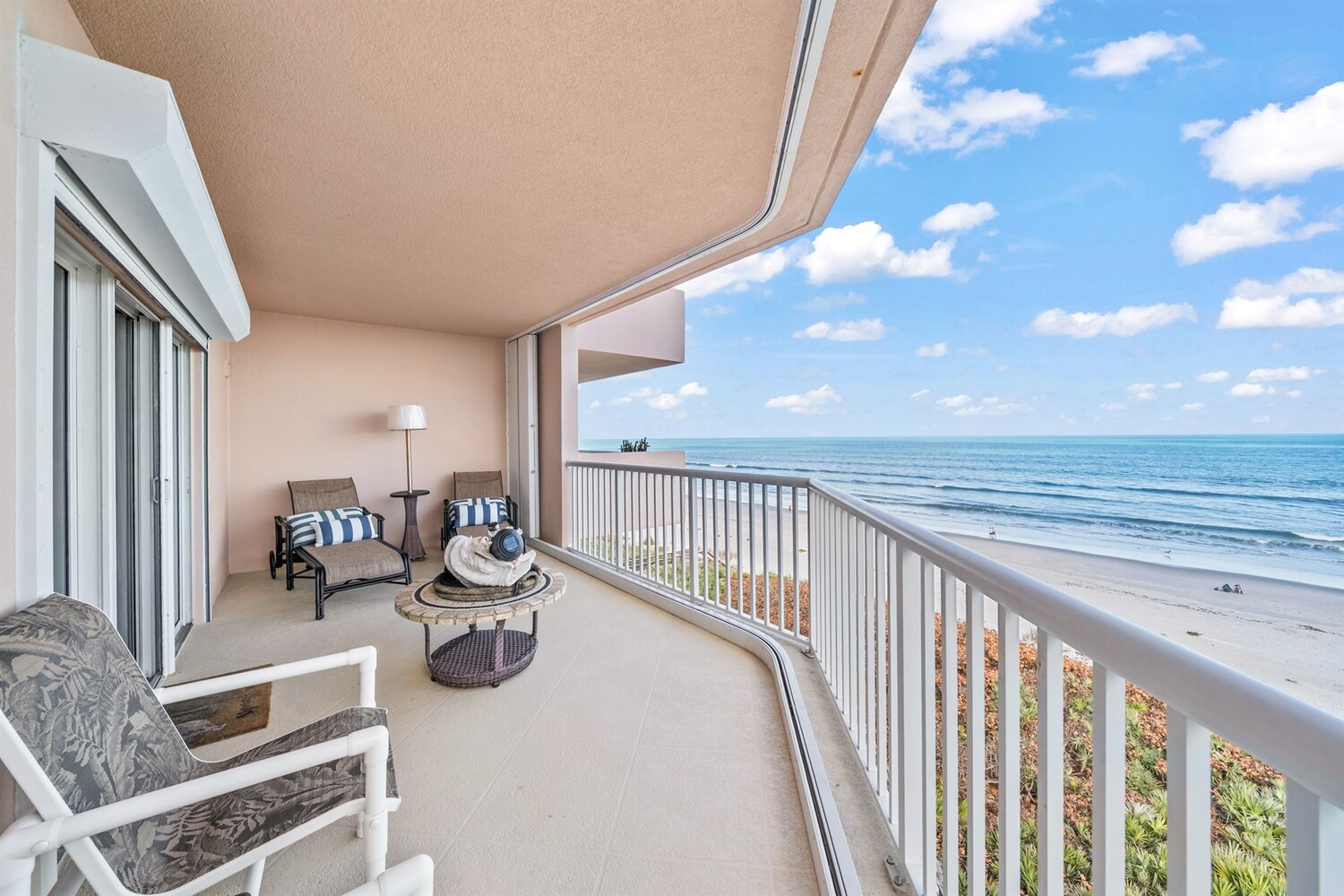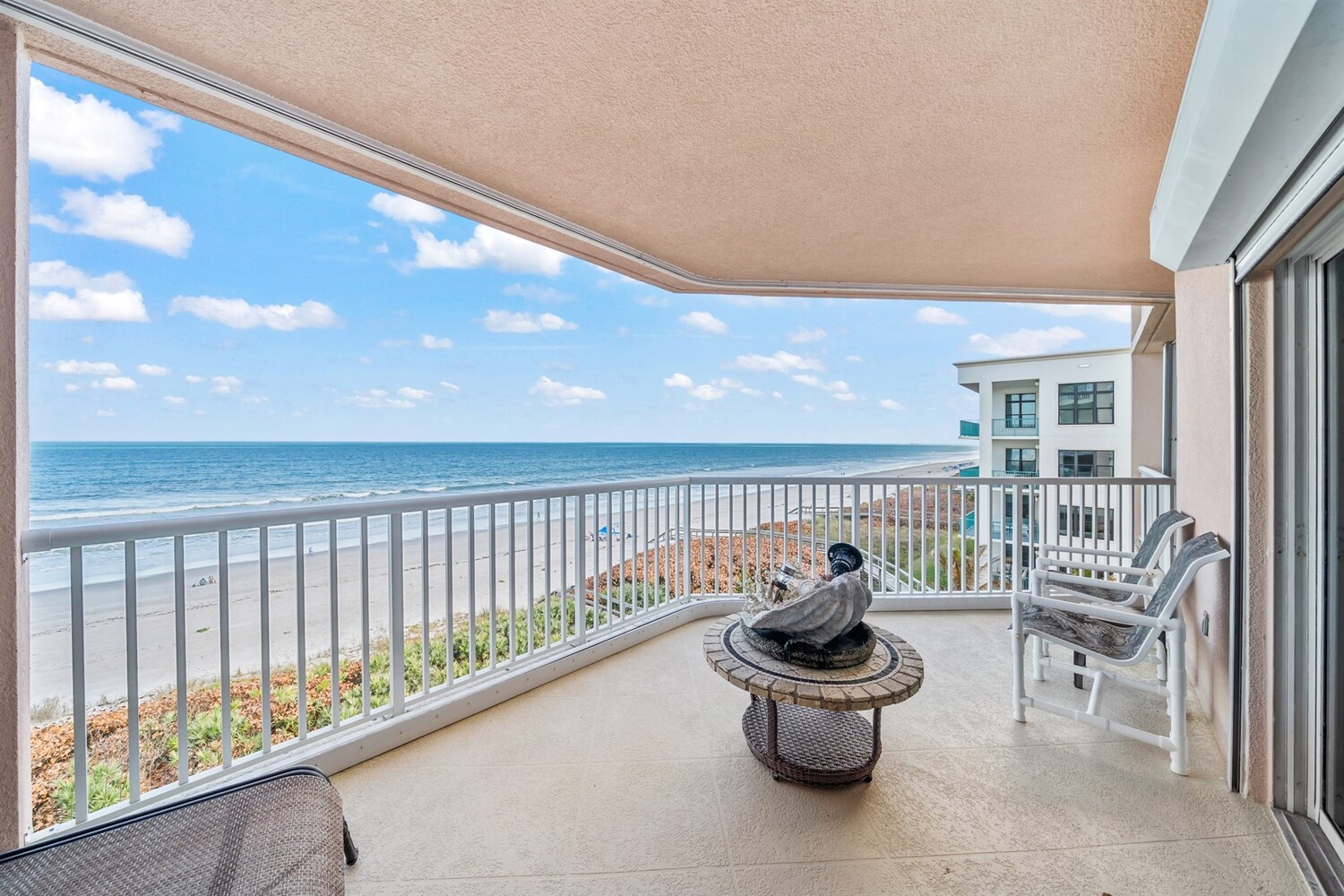 SE- corner unit on the 5th floor of the beautiful Barringer Condominium with stunning, direct ocean views! This spacious, updated residence offers over 2,600 sq. ft. of coastal living with angled wood-look tile throughout and modern, designer paint. The open kitchen features custom cabinetry, designer backsplash, and upgraded stainless steel appliances, including a double-oven range. Additional upgrades include an EcoSmart tankless water heater & water filter system. The primary suite enjoys breathtaking water views, two walk-in closets with professional organizers & a spa-like bath with soaking tub, custom cabinetry & large walk-in shower. Electric hurricane shutters, two garage parking spaces, and private storage are included. The exclusive, owner-occupied Barringer community offers a heated oceanfront pool, private beach access, secured lobby entry, and enclosed garage parking. Centrally located between the causeways! Indialantic's Barringer Condominium is centrally located between the causeways and consists of two seven-story buildings with only 35 total residences. This exclusive, owner-occupied community does not permit rentals. Open floor plans feature spacious dining and living areas accented by crown molding, wet bars and expansive balconies overlooking the ocean.The Barringer combines the charm and security of a suburban beach community with close proximity to outstanding dining, shopping, and entertainment. Residents can easily walk or bike to nearby venues. Popular destinations include Space Coast Stadium, Brevard Zoo, and The Avenue Viera, an open-air shopping and entertainment complex with over 100 restaurants and major retailers.During the day, explore breathtaking wildlife preserves or enjoy water sports such as surfing, jet skiing, fishing, and boating. In the evening, take in local concerts or dine alfresco at waterfront seafood restaurants. With the ocean just steps from your door, enjoy cooling breezes, soothing waves, and a lifestyle many only experience on vacation. Live where others escape. This beautiful and diverse coastal region offers an exceptional oceanfront lifestyle
