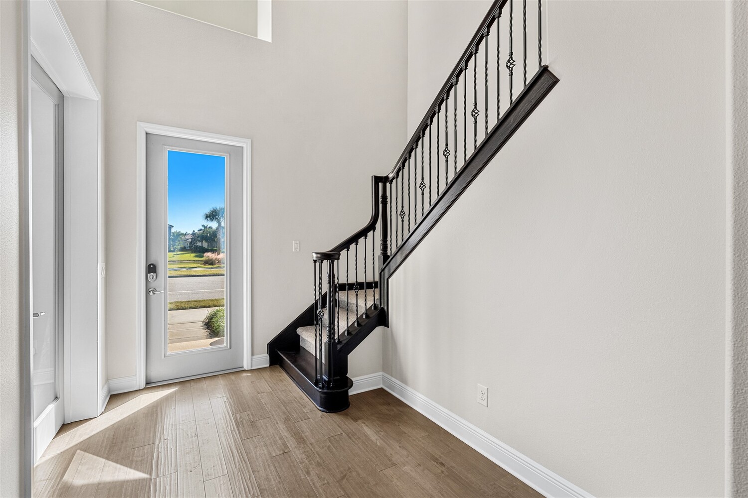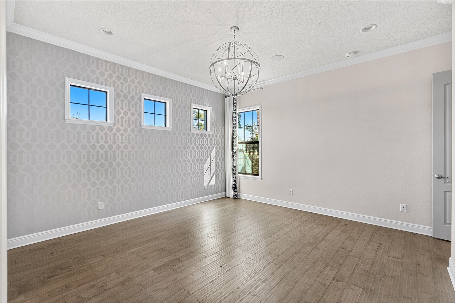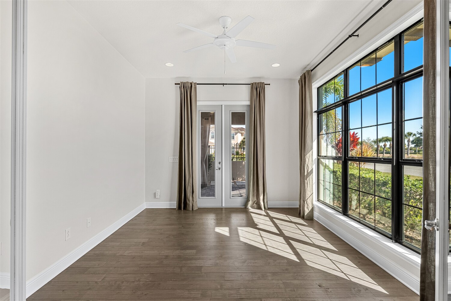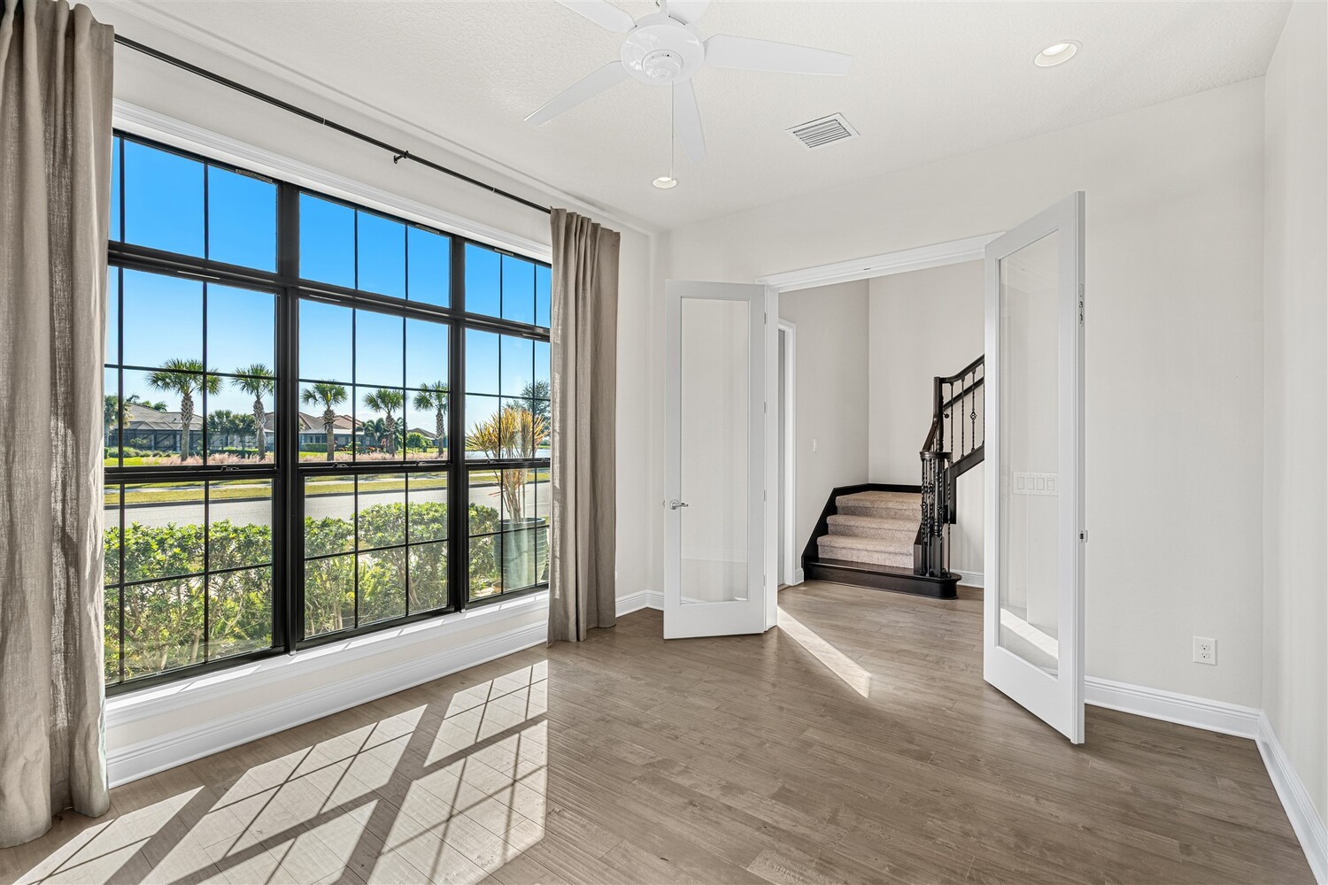 A standout in Viera's sought-after Reeling Park neighborhood, this spectacular 4/5 former model offers over $200K in contemporary upgrades and luxurious living spaces. As you enter through the foyer and pass the office, you're greeted by bright open spaces that draw in soft natural light through the glass front door and windows in the main living spaces. Family gatherings and quiet relaxation are a breeze in the main living space, featuring an electric fireplace and views to the courtyard. The modern kitchen features stainless steel appliances, gas cooktop, vented hood, white cabinetry, quartz counters, and a walk-in pantry. Step outside through the French doors to find a breezy, covered retreat equipped with paver flooring and a summer kitchen, perfect for summertime entertaining. The first-floor primary suite includes an incredible walk-in closet and a spa-like ensuite bathroom with glass and tile shower and soaking tub. . Upstairs, enjoy function and flexibility with three additional bedrooms that can easily be used as workspaces, home gyms, or a bonus room. You'll find plentiful storage options throughout. A generous 2-car garage with epoxy floors offers room for all the toys. Viera carefree living is waiting for you.