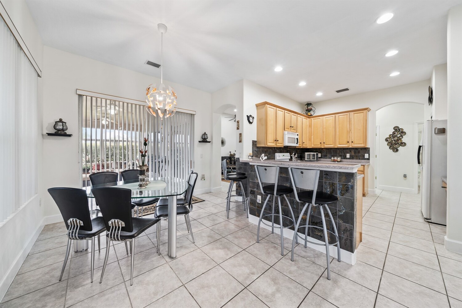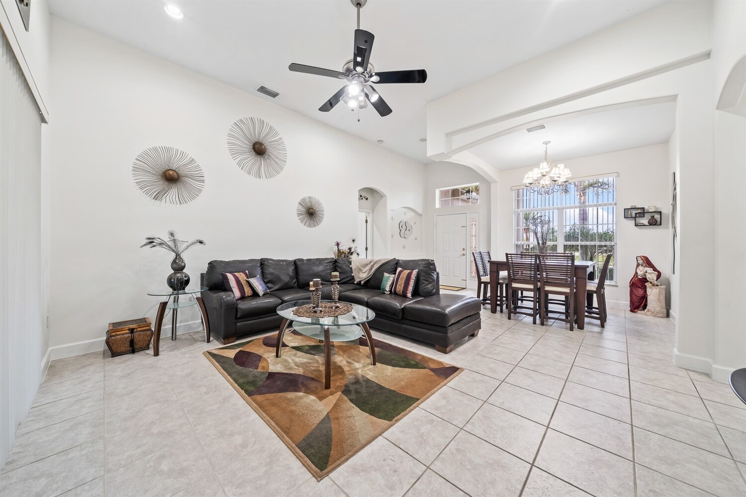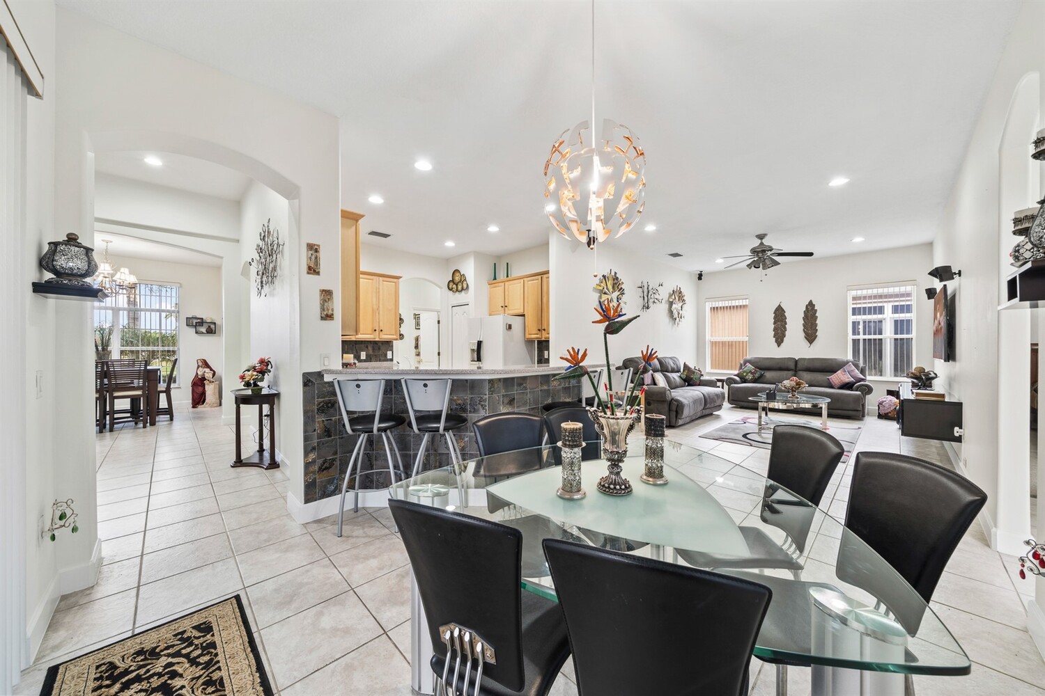 Beautiful 4 bedroom, 3 full bath, 3-car garage home located in the fabulous gated 55+ community of Heritage Isles. This light and bright home features high ceilings and tile flooring throughout the main living areas. The open kitchen with solid-surface countertops overlooks the spacious family room and breakfast nook, perfect for everyday living and entertaining. Enjoy the super Florida room, ideal for relaxing or hosting guests. The primary suite offers sliders to the Florida room, two walk-in closets, and a private bath with double vanities, garden tub, and separate shower. Split bedroom floor plan provides excellent privacy. Convenient indoor laundry room. The oversized garage includes screens, making it great for hobbies or enjoying the breeze. Community amenities include a pool, tennis courts, and a large community center with a wide variety of activities.