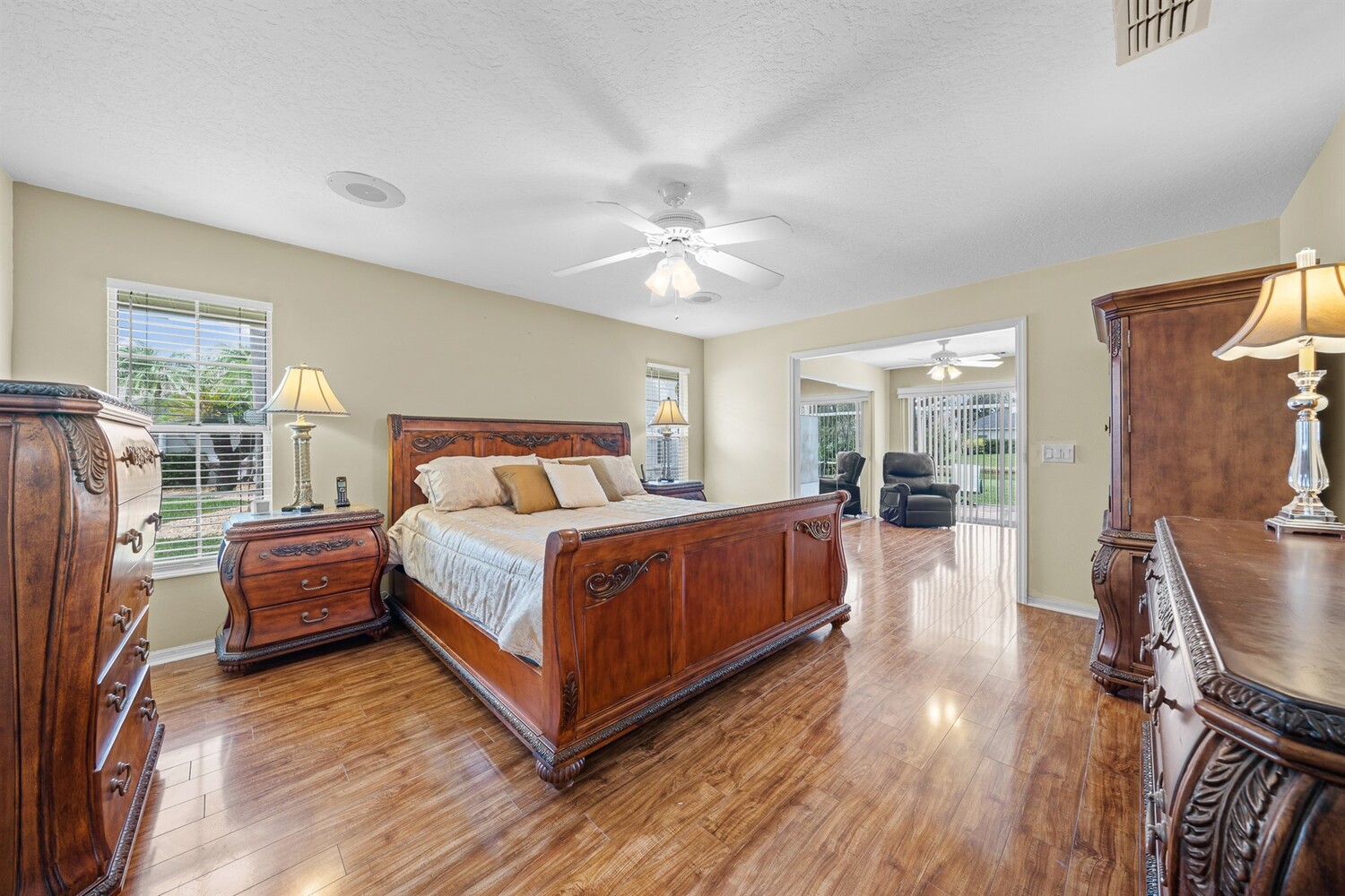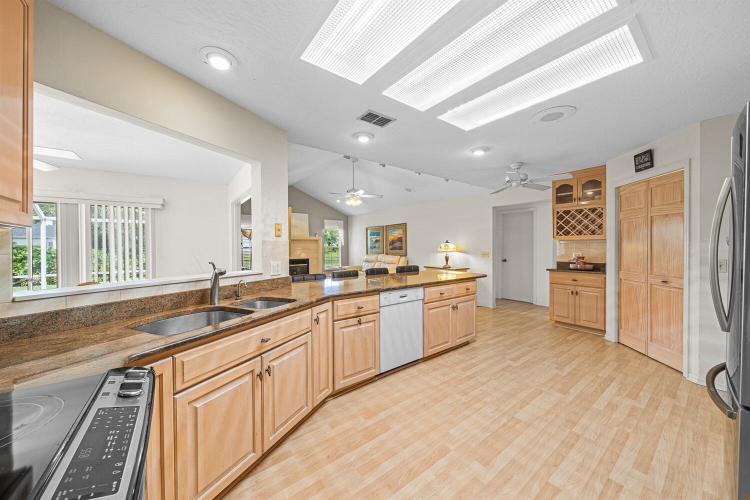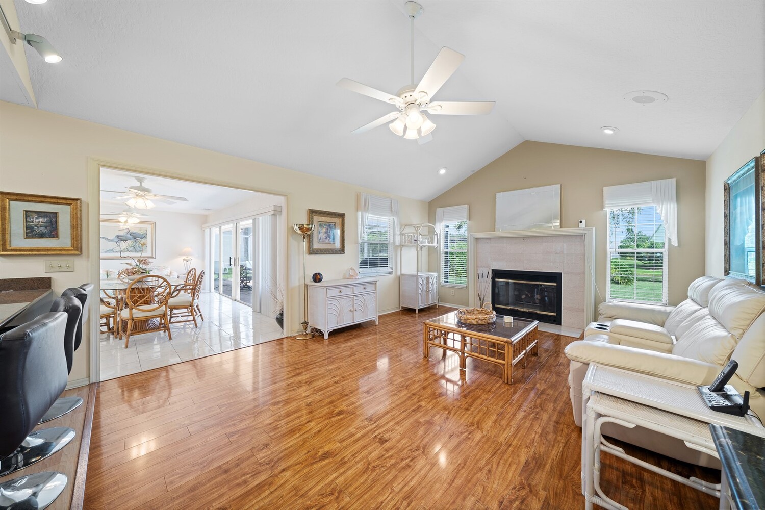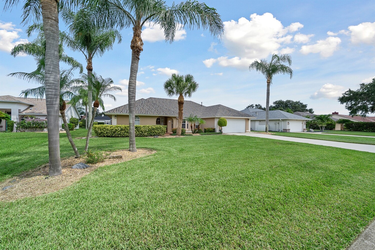 LAKEFRONT LIVING IN THE HEART OF SUNTREE! Nestled on a spacious .36-acre lot, this home offers the perfect blend of comfort and convenience. Recent updates include a brand-new roof & beautifully updated granite kitchen counters. Step inside to soaring cathedral ceilings & bright, open split floor plan. The central kitchen is designed for both function & style, featuring a breakfast bar, pantry, ample cabinet space, and custom pull-out shelving, spice racks, and trash storage. The family room with cozy gas fireplace flows seamlessly into the large enclosed Florida room, overlooking an expansive screened patio ideal for entertaining or enjoying peaceful lake views. The primary suite is a true retreat with abundant closet space, a walk-in dressing room, an extended area perfect for a home office, gym, or nursery. The updated bath offers double sinks, a soaking tub, and a separate shower. Additional highlights include a front paver patio and a convenient inside laundry.