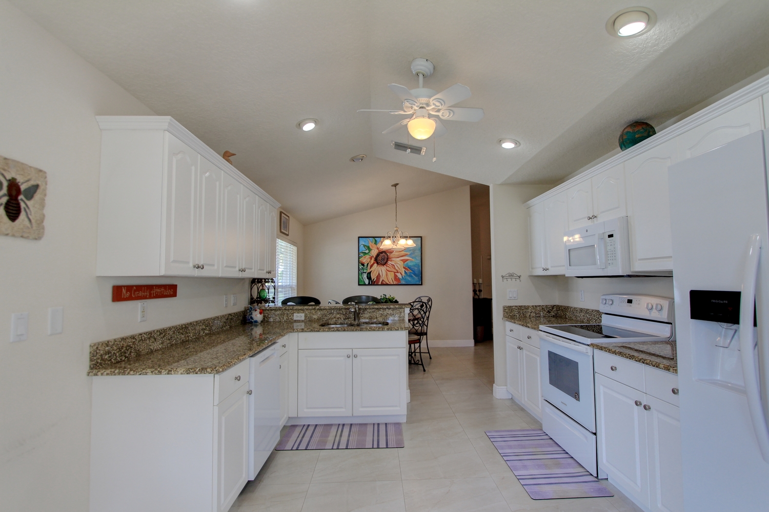 Welcome Home! This well-maintained 3-bedroom, 2-bath home offers a desirable split floor plan and a spacious enclosed patio with golf course and wildlife views—perfect for morning coffee or evening relaxation. Inside, the kitchen and main living areas feature new tile flooring, while the bedrooms are comfortably carpeted. The bright, open kitchen includes granite countertops, abundant cabinetry, and a breakfast bar, ideal for both everyday meals and entertaining. Located in the popular Viera East Golf Community, residents enjoy access to a welcoming clubhouse along with a wealth of resort-style amenities including a sparkling pool, tennis, bocce ball, pickleball, and shuffleboard. Recent updates provide peace of mind with a roof (2017), AC (2021), and water heater (2022). Enjoy the perfect combination of comfort, convenience, and active Florida living in this vibrant golf community surrounded by natural beauty and wildlife.
