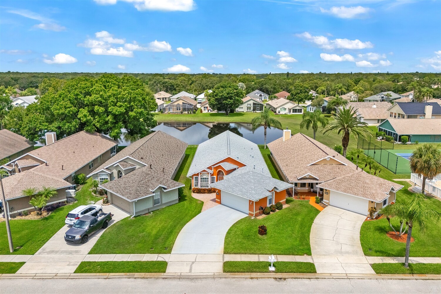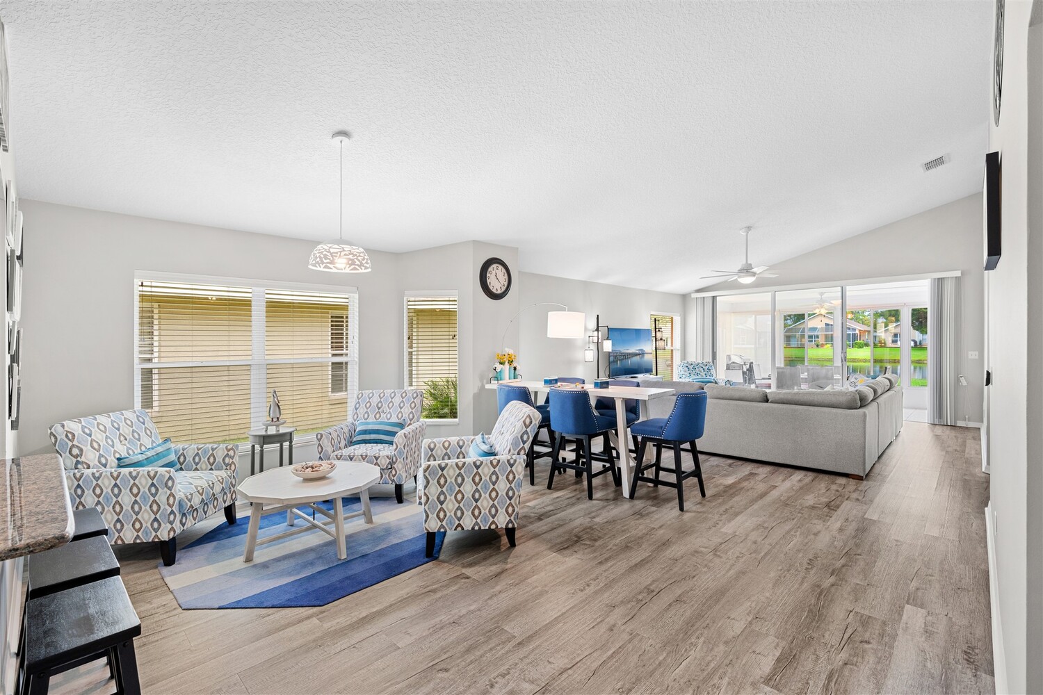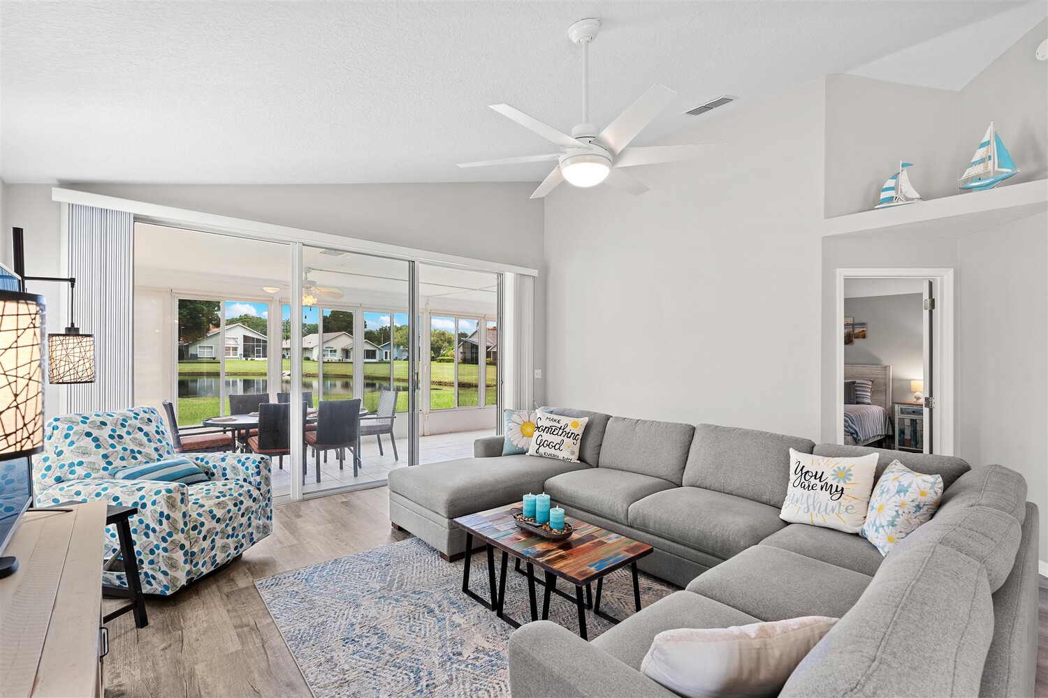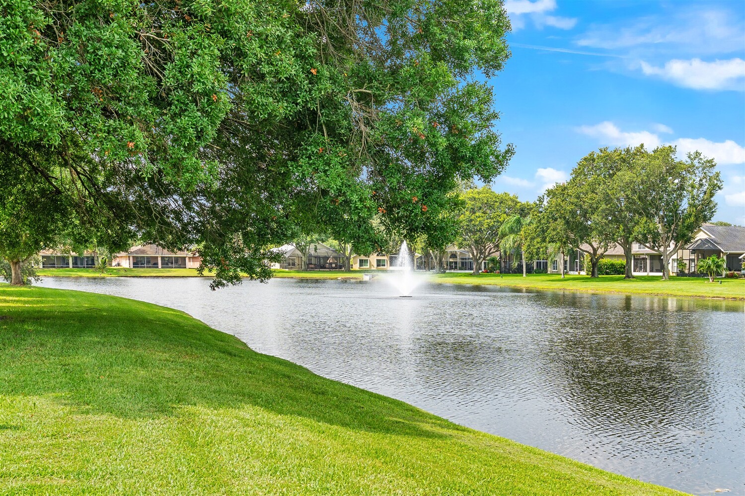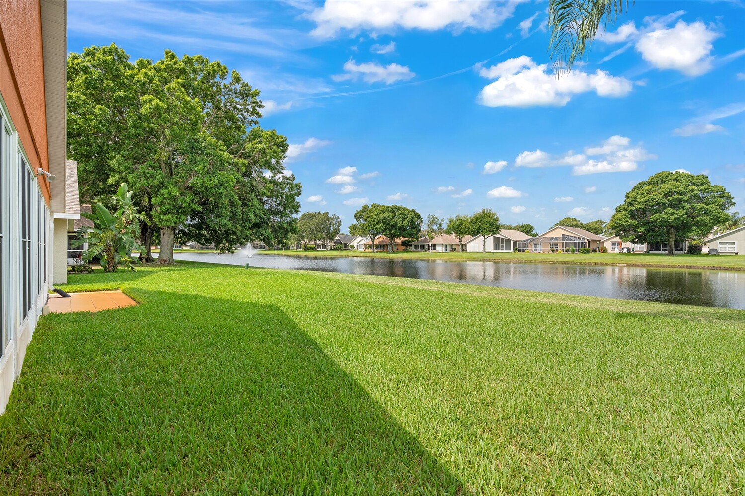 Meticulously cared-for lakefront 3-bed, 2-bath home boasting 1951 sq ft of living space, plus an additional 330 sq ft of enclosed airconditioned patio. The roof was installed and upgraded in 11/22 with retro fit single-wrap hurricane straps, ensuring durability and safety. A/C system was installed in 4/22. Bright, airy eat in kitchen with elegant white cabinetry and gleaming granite countertops. Open concept family room and dining room combo with 8 ft triple sliding glass doors provide ample natural light and gorgeous views of the lake. Large primary suite featuring a luxurious garden tub, separate shower, dual-sink vanity, and a spacious walk-in closet. Throughout the main living areas and bedrooms, vinyl plank flooring was installed in 2/22 adding a modern yet warm aesthetic while offering easy maintenance. Popcorn ceilings modernized with a clean knockdown texture. Nestled centrally in Melbourne, this home offers prime access to shopping and dining, many within