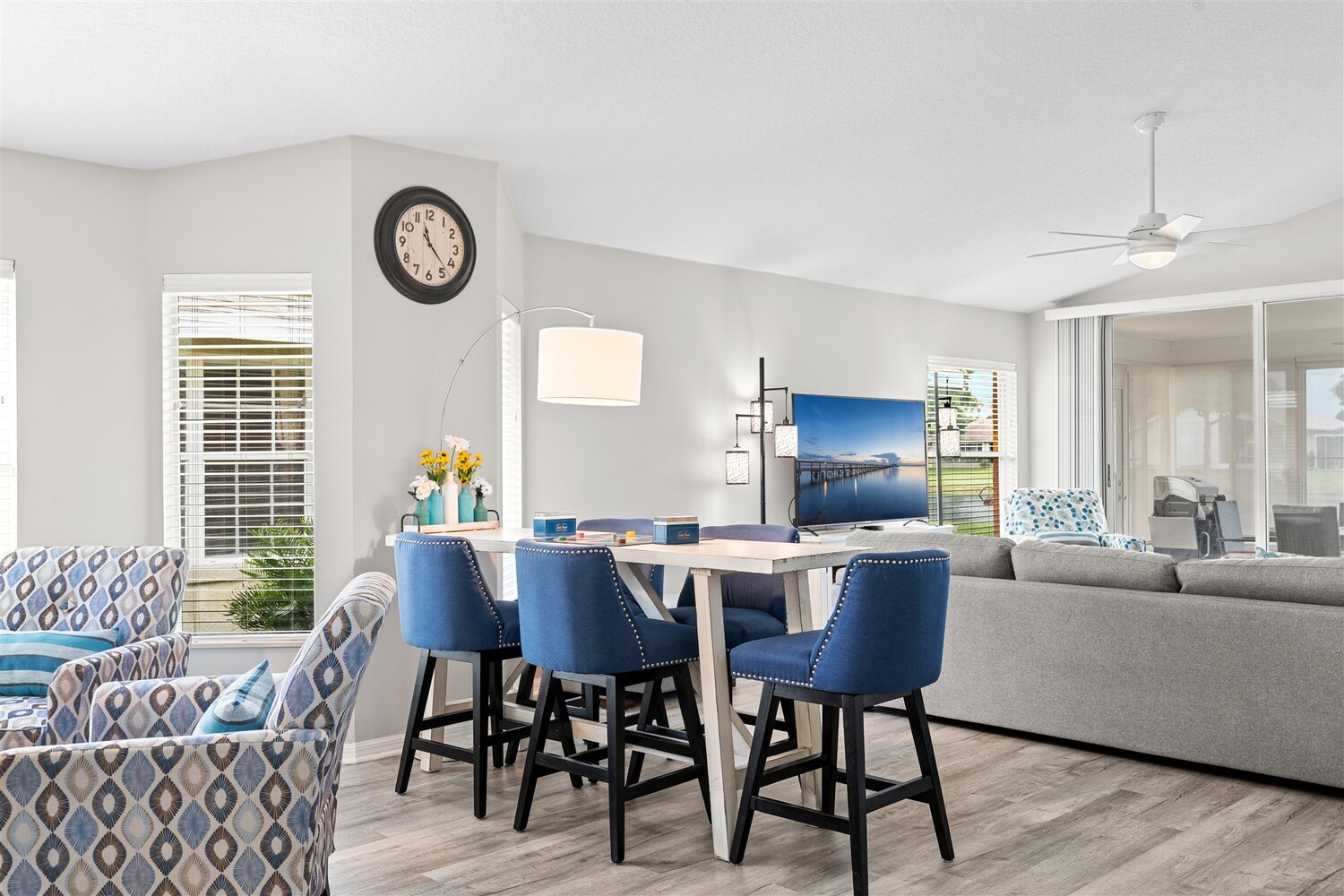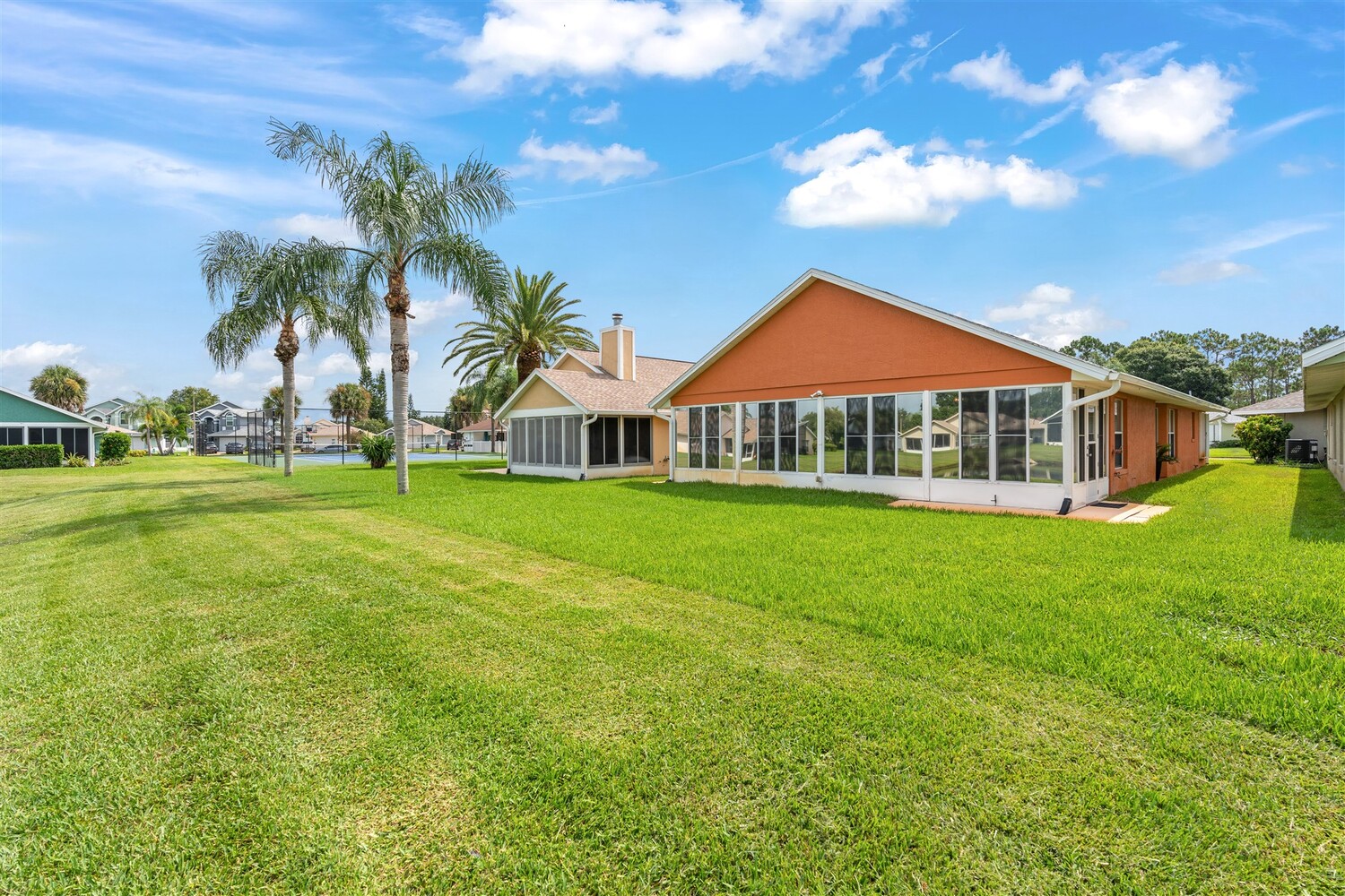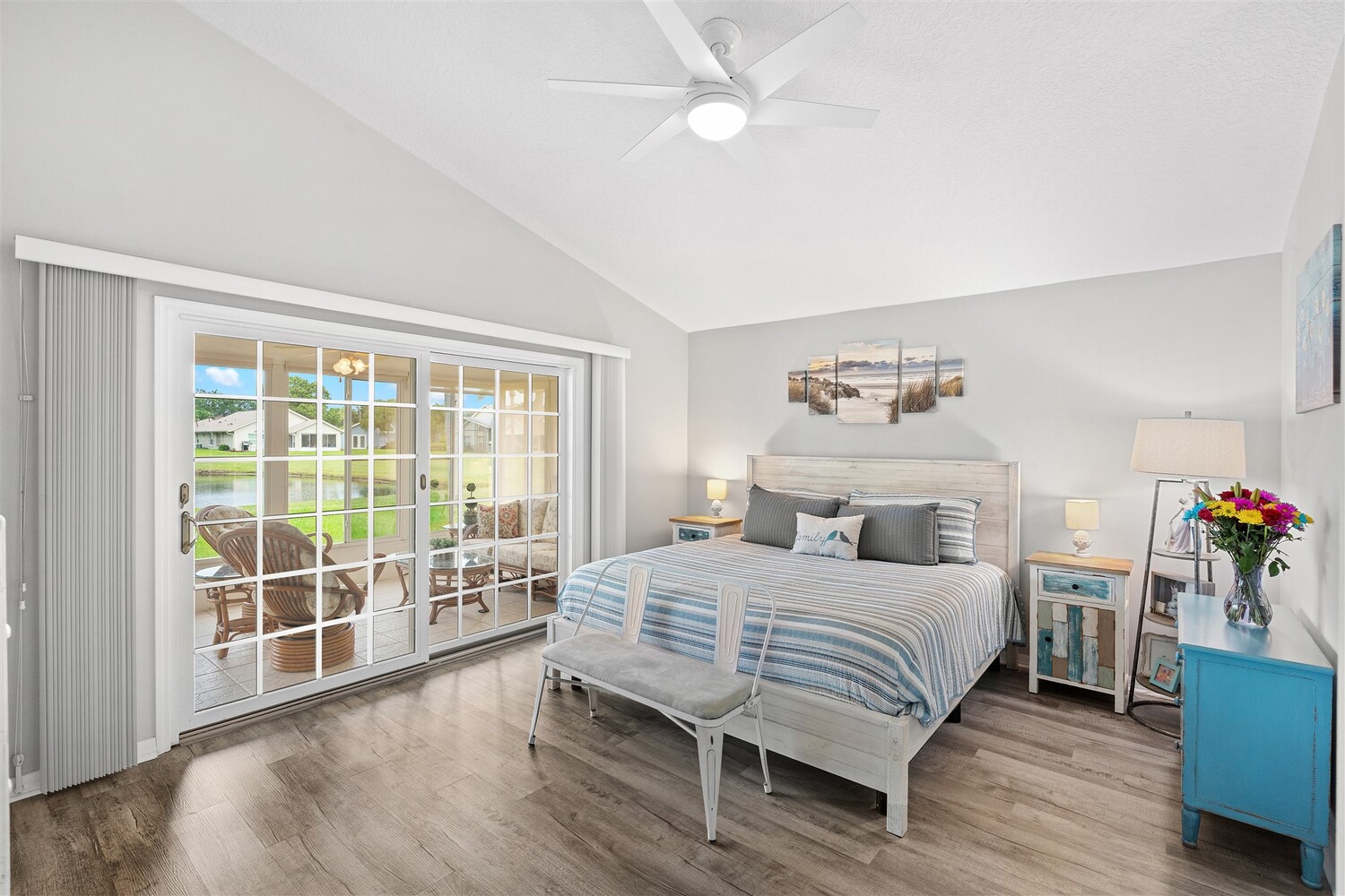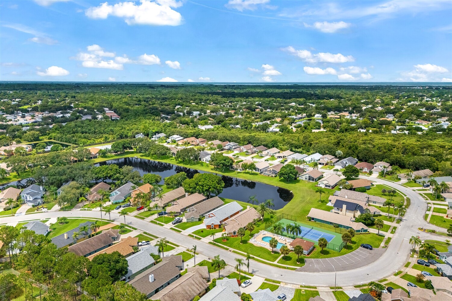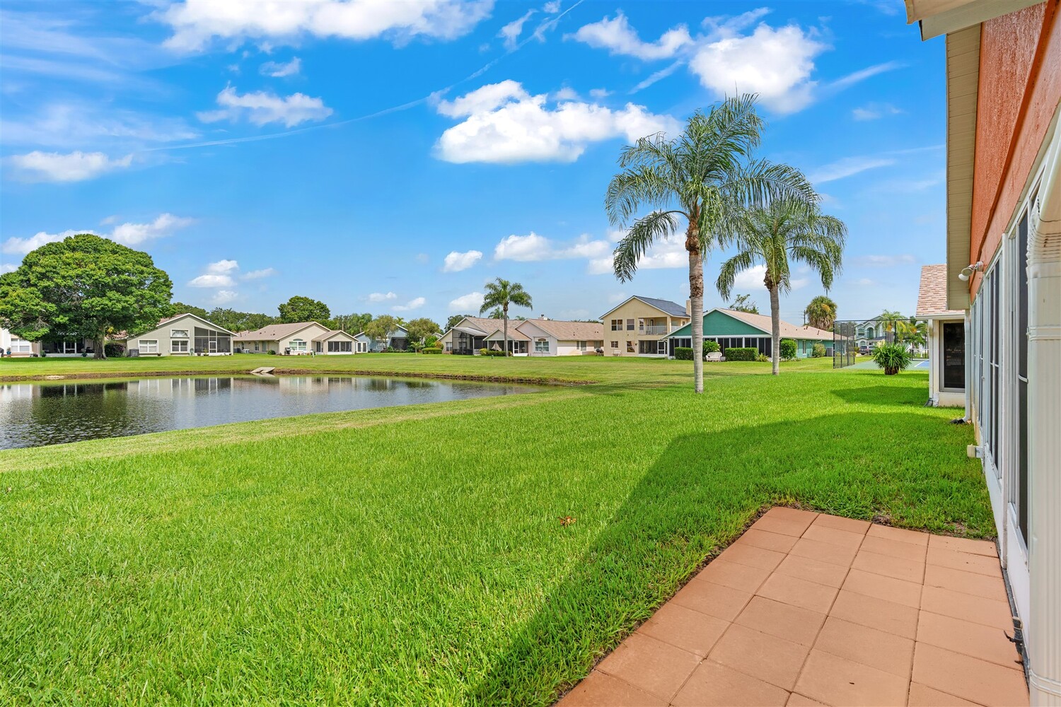 Meticulously cared-for lakefront 3-bed, 2-bath home boasting 1951 sq ft of living space, plus an additional 330 sq ft of enclosed airconditioned patio. The roof was installed and upgraded in 11/22 with retro fit single-wrap hurricane straps, ensuring durability and safety. A/C system was installed in 4/22. Bright, airy eat in kitchen with elegant white cabinetry and gleaming granite countertops. Open concept family room and dining room combo with 8 ft triple sliding glass doors provide ample natural light and gorgeous views of the lake. Large primary suite featuring a luxurious garden tub, separate shower, dual-sink vanity, and a spacious walk-in closet. Throughout the main living areas and bedrooms, vinyl plank flooring was installed in 2/22 adding a modern yet warm aesthetic while offering easy maintenance. Popcorn ceilings modernized with a clean knockdown texture. Nestled centrally in Melbourne, this home offers prime access to shopping and dining, many within