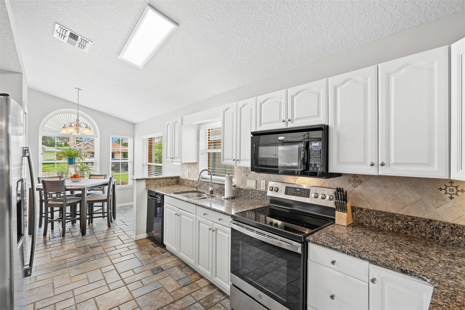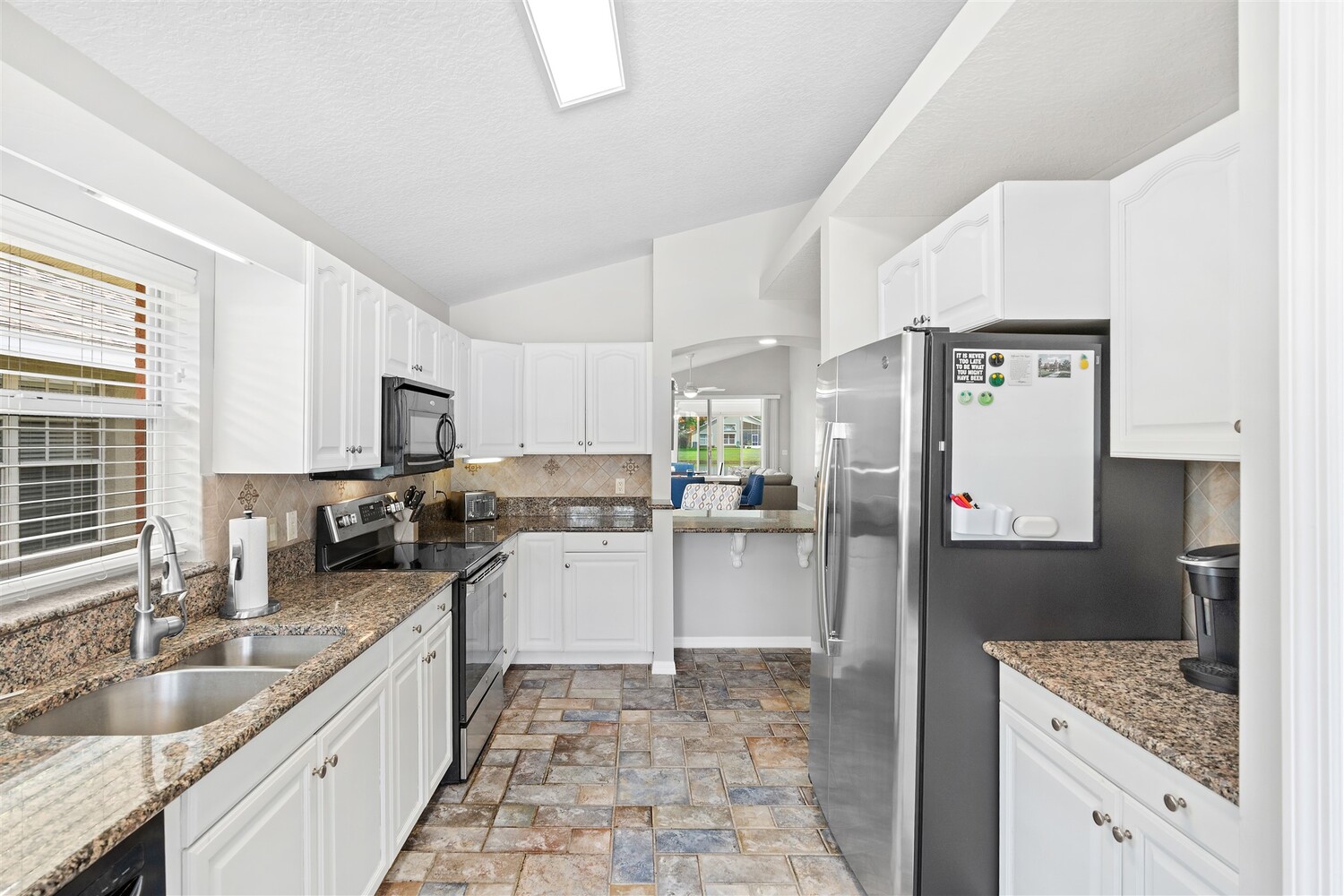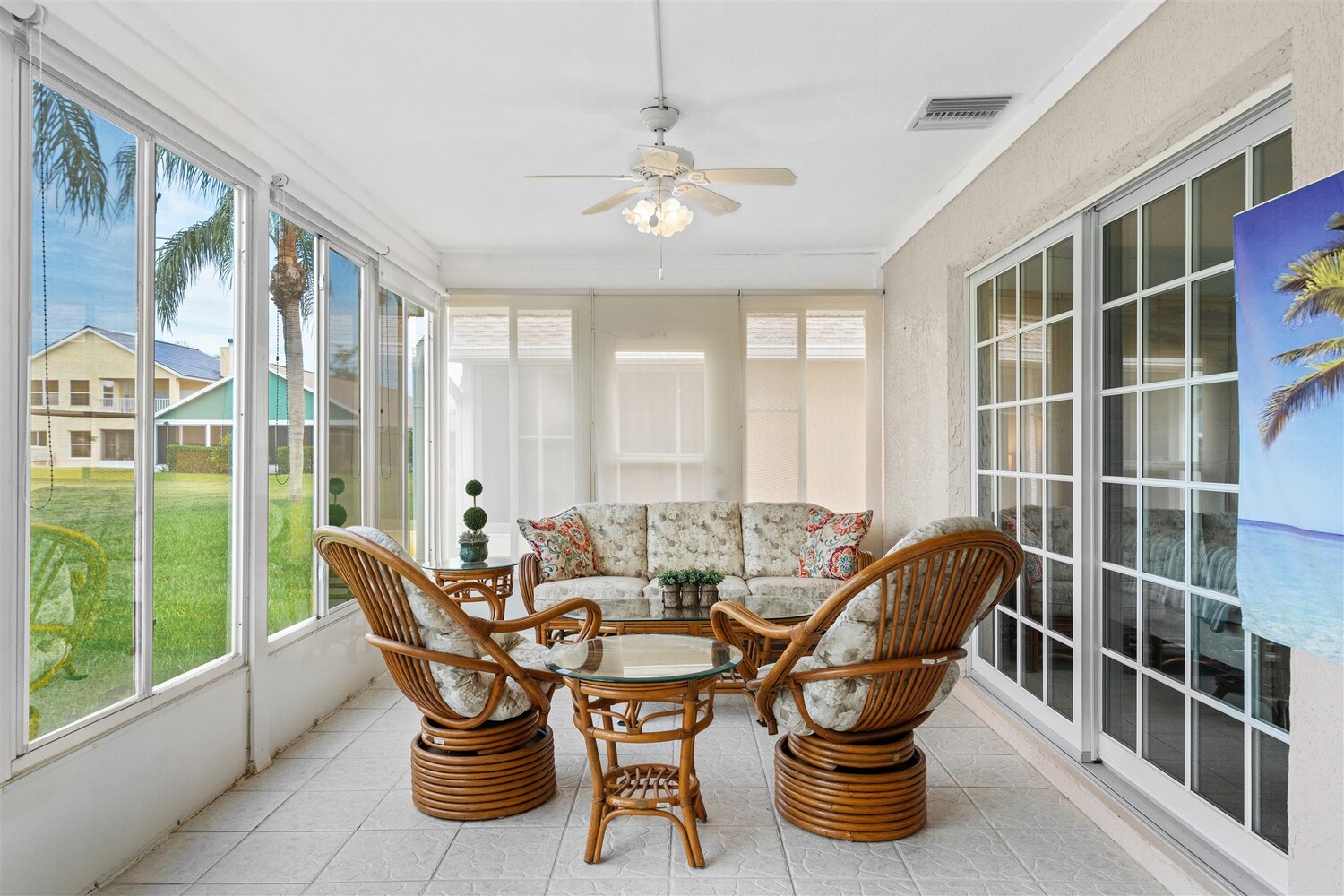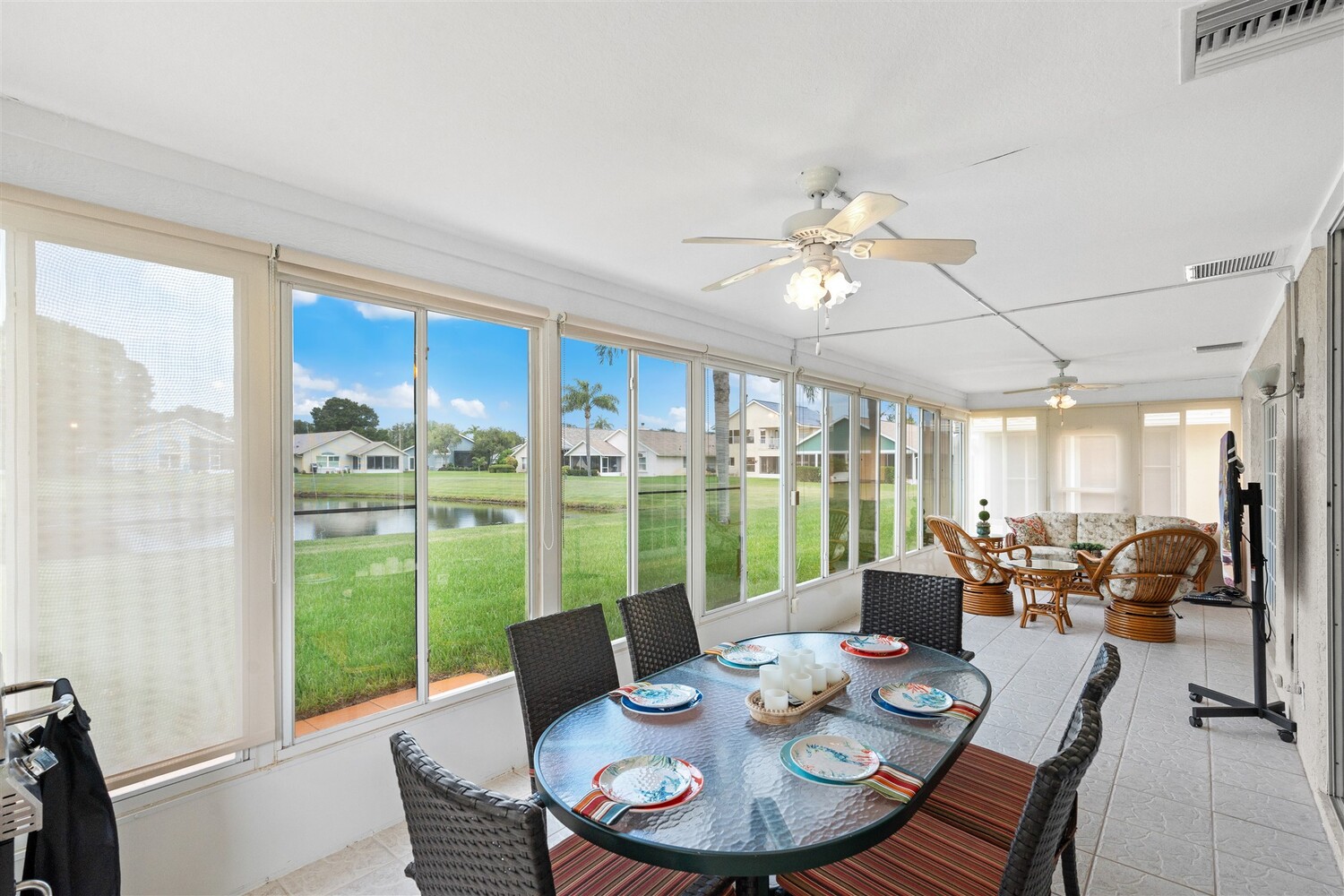 Meticulously cared-for lakefront 3-bed, 2-bath home boasting 1951 sq ft of living space, plus an additional 330 sq ft of enclosed airconditioned patio. The roof was installed and upgraded in 11/22 with retro fit single-wrap hurricane straps, ensuring durability and safety. A/C system was installed in 4/22. Bright, airy eat in kitchen with elegant white cabinetry and gleaming granite countertops. Open concept family room and dining room combo with 8 ft triple sliding glass doors provide ample natural light and gorgeous views of the lake. Large primary suite featuring a luxurious garden tub, separate shower, dual-sink vanity, and a spacious walk-in closet. Throughout the main living areas and bedrooms, vinyl plank flooring was installed in 2/22 adding a modern yet warm aesthetic while offering easy maintenance. Popcorn ceilings modernized with a clean knockdown texture. Nestled centrally in Melbourne, this home offers prime access to shopping and dining, many within