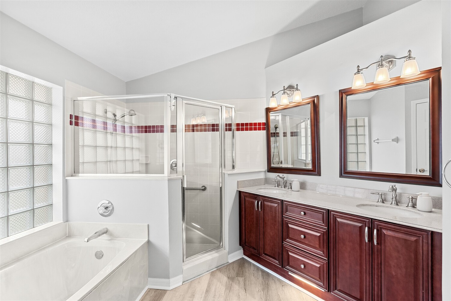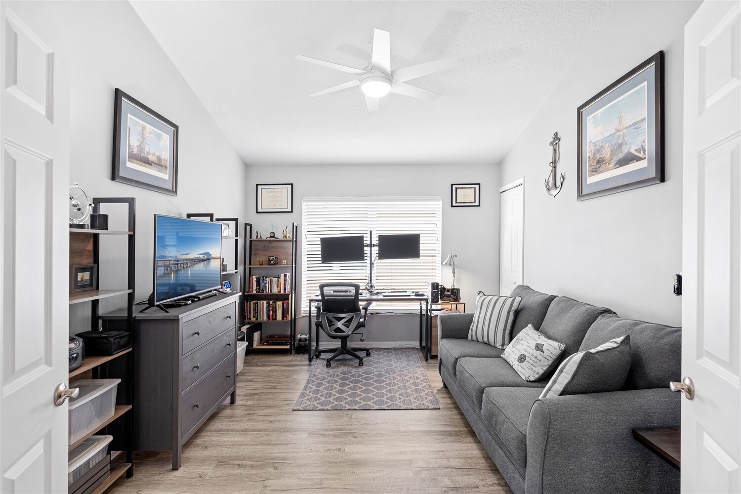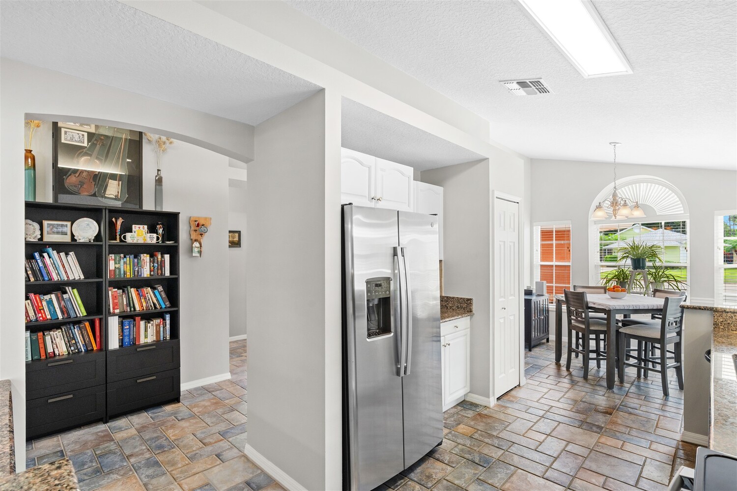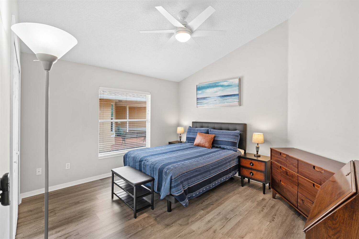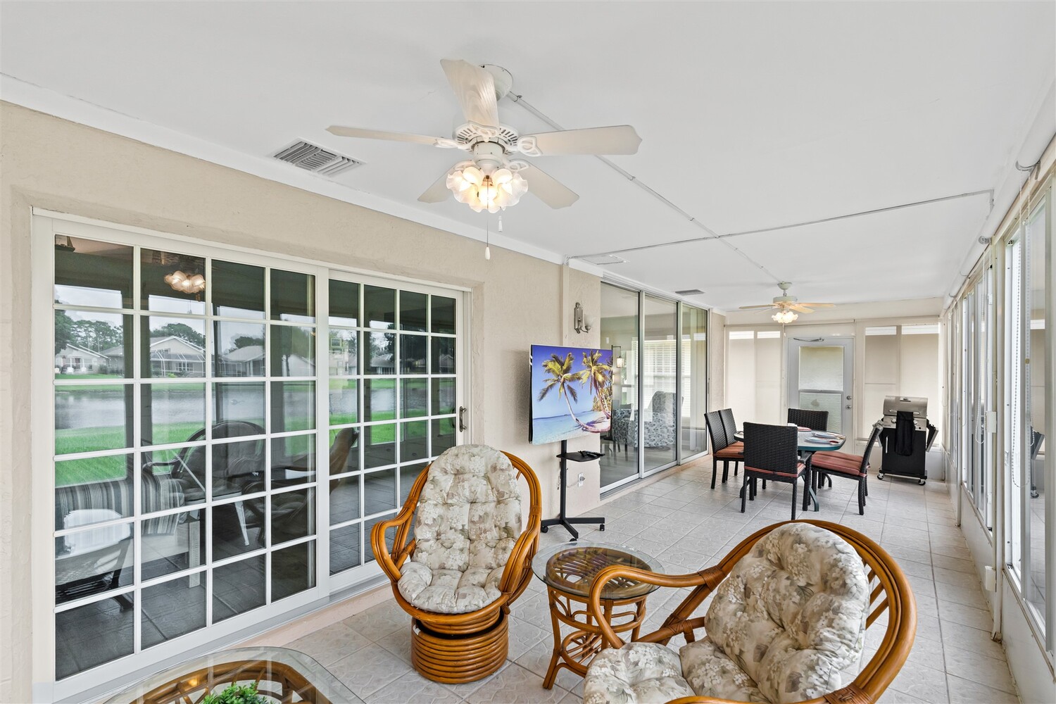 Meticulously cared-for lakefront 3-bed, 2-bath home boasting 1951 sq ft of living space, plus an additional 330 sq ft of enclosed airconditioned patio. The roof was installed and upgraded in 11/22 with retro fit single-wrap hurricane straps, ensuring durability and safety. A/C system was installed in 4/22. Bright, airy eat in kitchen with elegant white cabinetry and gleaming granite countertops. Open concept family room and dining room combo with 8 ft triple sliding glass doors provide ample natural light and gorgeous views of the lake. Large primary suite featuring a luxurious garden tub, separate shower, dual-sink vanity, and a spacious walk-in closet. Throughout the main living areas and bedrooms, vinyl plank flooring was installed in 2/22 adding a modern yet warm aesthetic while offering easy maintenance. Popcorn ceilings modernized with a clean knockdown texture. Nestled centrally in Melbourne, this home offers prime access to shopping and dining, many within