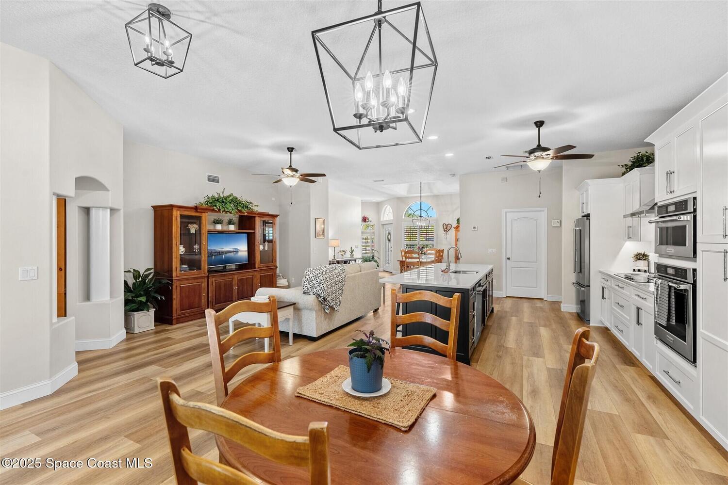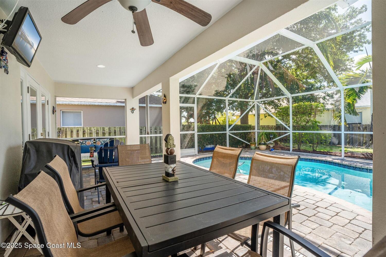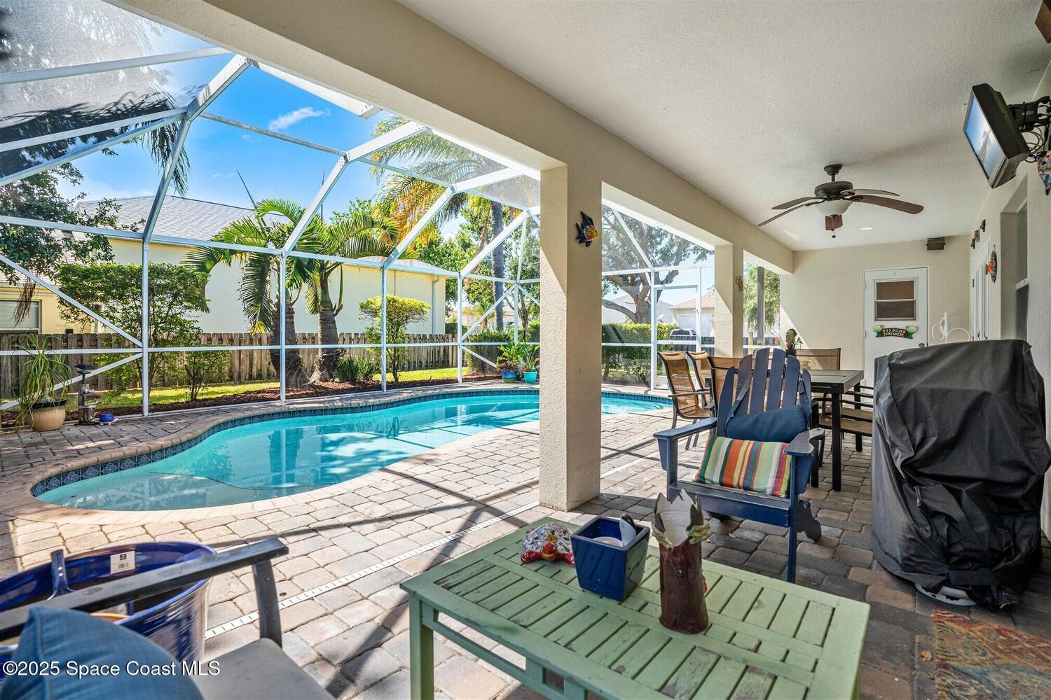 Beautifully remodeled and updated 4-bedroom, 3-bathroom home with a 3-car garage and versatile front den/office space. This open floor plan home offers an amazing kitchen space with an oversized kitchen island, 2023 appliances and extensive cabinet storage. Enjoy plantation shutters throughout and no carpet. Soak up indoor-outdoor living with a screened lanai and swimming pool overlooking a fenced yard. Major updates include a 2019 roof, 2021 A/C, and 2022 hot water heater and 2024 sprinklers. This move-in-ready home offers comfort, style, and peace of mind in every detail. Community amenities include lap pool, tennis, pickleball, playground and clubhouse. Top rated schools, nearby golf courses, restaurants, shopping and easy access to 95 and beaches. A must see home in the desirable Wingate Estates in Viera East.