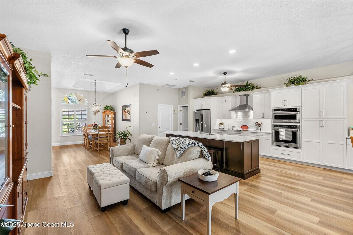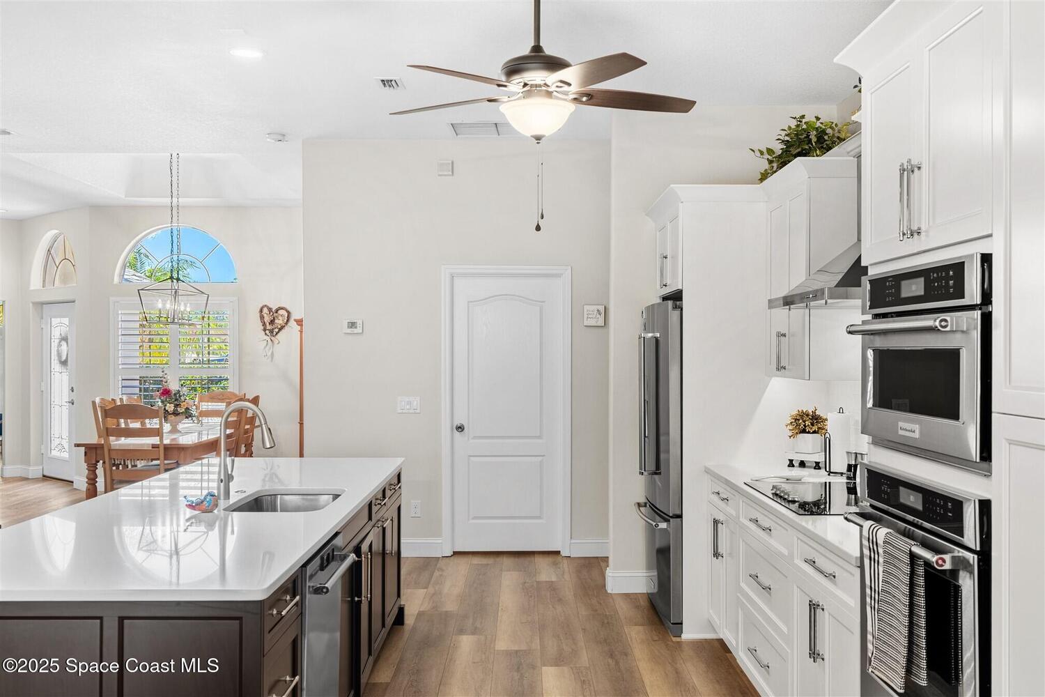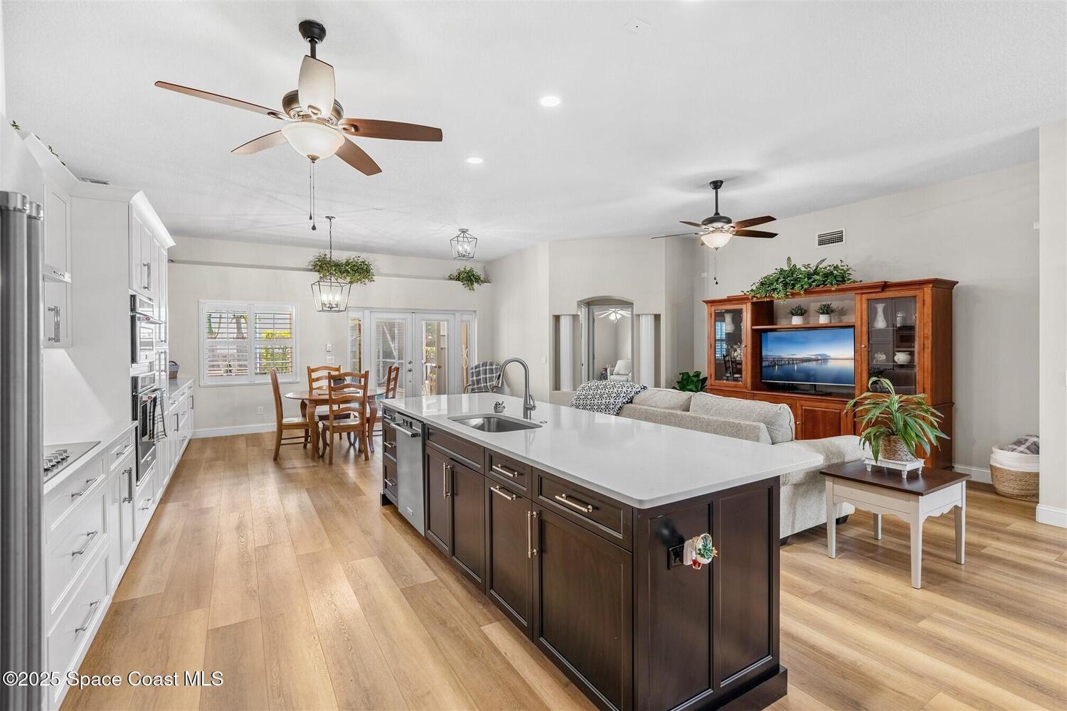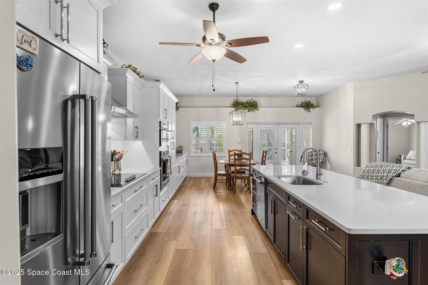 Beautifully remodeled and updated 4-bedroom, 3-bathroom home with a 3-car garage and versatile front den/office space. This open floor plan home offers an amazing kitchen space with an oversized kitchen island, 2023 appliances and extensive cabinet storage. Enjoy plantation shutters throughout and no carpet. Soak up indoor-outdoor living with a screened lanai and swimming pool overlooking a fenced yard. Major updates include a 2019 roof, 2021 A/C, and 2022 hot water heater and 2024 sprinklers. This move-in-ready home offers comfort, style, and peace of mind in every detail. Community amenities include lap pool, tennis, pickleball, playground and clubhouse. Top rated schools, nearby golf courses, restaurants, shopping and easy access to 95 and beaches. A must see home in the desirable Wingate Estates in Viera East.