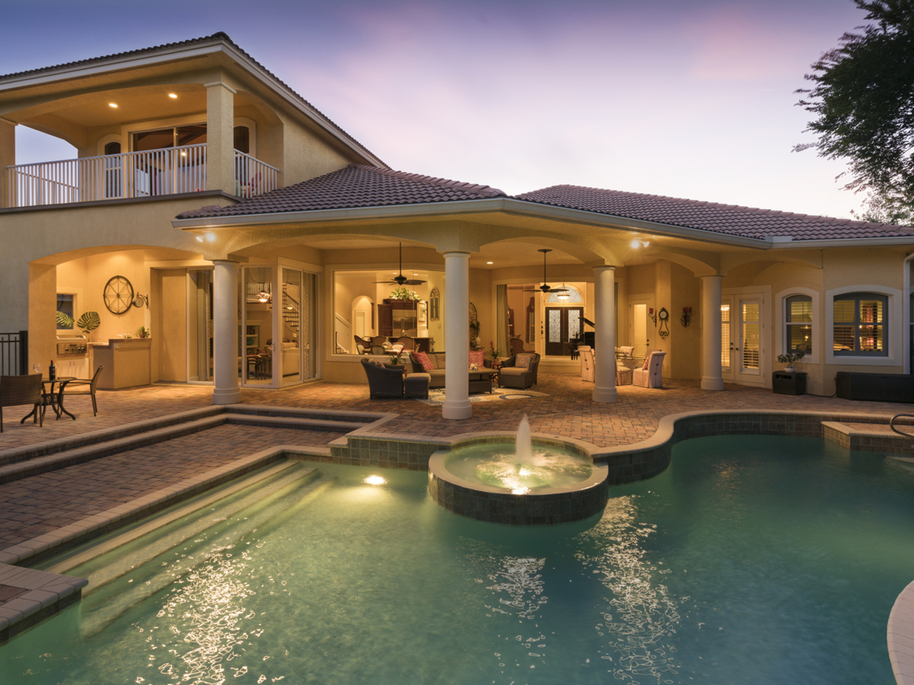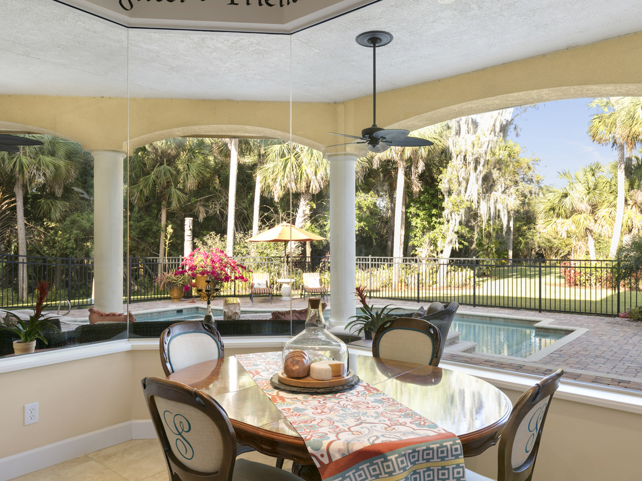 Private Paradise, unique to Summer Lakes! What other homeowners covet can be exclusively yours! This estate is privately situated on a tropically landscaped, nearly 1 acre lot, at the very end of a cul-de-sac, with wooded preserve on 2 sides and a lake view to the third side. The spacious and special setting for this retreat offers something for everyone! Family and guests can take in the lake view, play a game of croquet, volleyball or catch while others sit outdoors and roast marshmallows around the backyard fire pit. For those looking for relaxation or a respite from a busy day, escape upstairs to your private entertainment space and enjoy views of the property’s pool, yard and lake from the 2nd story balcony. The luxurious home offers privacy, grand architecture and functionality. Built by Joyal Construction, this masterpiece boosts nearly 4100 square feet under air and is nestled away in Viera’s gated flagship community of Summer Lakes. This residence features 4 bedrooms, 4 full baths, a private gym, study, separate dining, living and family areas and an upstairs large beamed bonus room/bar area with private guest suite. Experience the feel of a vacation resort in your own backyard! The stately atmosphere is prevalent upon entering the paver drive. Decorative arched windows flank the grand two story entry, where two decorative fountains and a rear entry 3 car garage impart a courtyard feel, to enjoy morning coffee or an evening glass of wine. The dramatic entry’s expansive double doors lead into the foyer where you see floor to ceiling butted glass and stunning views of your private oasis, elegantly framed by the mature oak trees and hanging Spanish moss. Move into the formal living and dining rooms where single and triple-stepped tray ceilings, exquisite faux finishes and granite topped wet bar. Immediately in full view is the gorgeous paver lanai, pool, spa, outdoor fireplace and stunning tropical yard. The chef in the family will be wowed by the island kitchen’s staggered dark wood cabinetry topped with decorative 10’ carved crown molding, 6 burner gas cook top, double ovens, and granite counters. Even the non-cook will appreciate the crown molding, beautiful granite, ceiling detail, dining nook with expansive butted glass windows and breakfast bar that sits adjacent to the home’s leisure room. This combined entertaining space offers a gas fireplace, built-ins, phenomenal views and convenient access to the lanai and pool area. rivate Paradise, unique to Summer Lakes! What other homeowners covet can be exclusively yours! This estate is privately situated on a tropically landscaped, nearly 1 acre lot, at the very end of a cul-de-sac, with wooded preserve on 2 sides and a lake view to the third side. The spacious and special setting for this retreat offers something for everyone! Family and guests can take in the lake view, play a game of croquet, volleyball or catch while others sit outdoors and roast marshmallows around the backyard fire pit. For those looking for relaxation or a respite from a busy day, escape upstairs to your private entertainment space and enjoy views of the property’s pool, yard and lake from the 2nd story balcony. The luxurious home offers privacy, grand architecture and functionality. Built by Joyal Construction, this masterpiece boosts nearly 4100 square feet under air and is nestled away in Viera’s gated flagship community of Summer Lakes. This residence features 4 bedrooms, 4 full baths, a private gym, study, separate dining, living and family areas and an upstairs large beamed bonus room/bar area with private guest suite. Experience the feel of a vacation resort in your own backyard! The stately atmosphere is prevalent upon entering the paver drive. Decorative arched windows flank the grand two story entry, where two decorative fountains and a rear entry 3 car garage impart a courtyard feel, to enjoy morning coffee or an evening glass of wine. The dramatic entry’s expansive double doors lead into the foyer where you see floor to ceiling butted glass and stunning views of your private oasis, elegantly framed by the mature oak trees and hanging Spanish moss. Move into the formal living and dining rooms where single and triple-stepped tray ceilings, exquisite faux finishes and granite topped wet bar. Immediately in full view is the gorgeous paver lanai, pool, spa, outdoor fireplace and stunning tropical yard. The chef in the family will be wowed by the island kitchen’s staggered dark wood cabinetry topped with decorative 10’ carved crown molding, 6 burner gas cook top, double ovens, and granite counters. Even the non-cook will appreciate the crown molding, beautiful granite, ceiling detail, dining nook with expansive butted glass windows and breakfast bar that sits adjacent to the home’s leisure room. This combined entertaining space offers a gas fireplace, built-ins, phenomenal views and convenient access to the lanai and pool area. The grand master suite provides a true retreat for the homeowner. A cool and fresh color scheme, triple-stacked tray ceiling, French door access to the lanai and a window seat positioned beneath a bay window provide peace and privacy. An elegant master bath boasts beautiful dark cabinetry, his and her glass sink basins and a vanity area. Step up to a large Jacuzzi tub with a grand 2 story ceiling and separate tiled walk-in shower which completes the spa like atmosphere. Last, but not least, enter your private workout area. Enjoy morning Pilates or some cardio work before you start your day. Tucked away on the 2nd floor you will find a spacious, multi-purpose game/media room with wrap around granite bar that seats 6, and expansive sliders leading to a private balcony overlooking the amazing landscape and pool area. Entertain friends, serve drinks, shoot pool or enjoy cigars on the back patio deck. A tiled floor wet bar area, vaulted beamed ceiling details and hand scraped wood flooring offer the perfect t