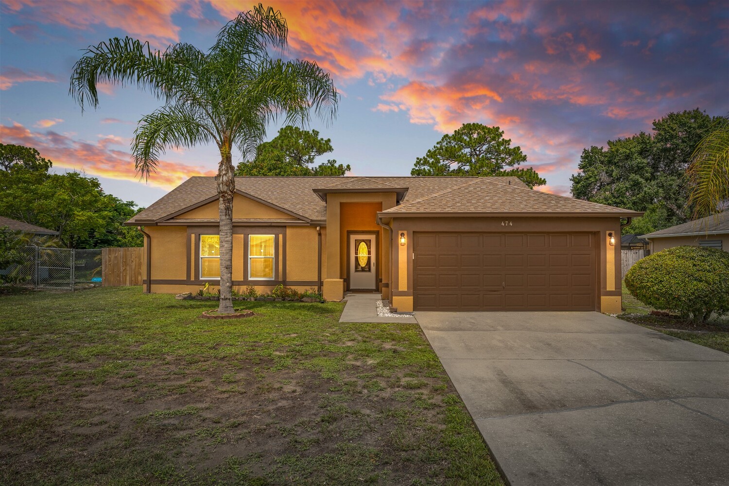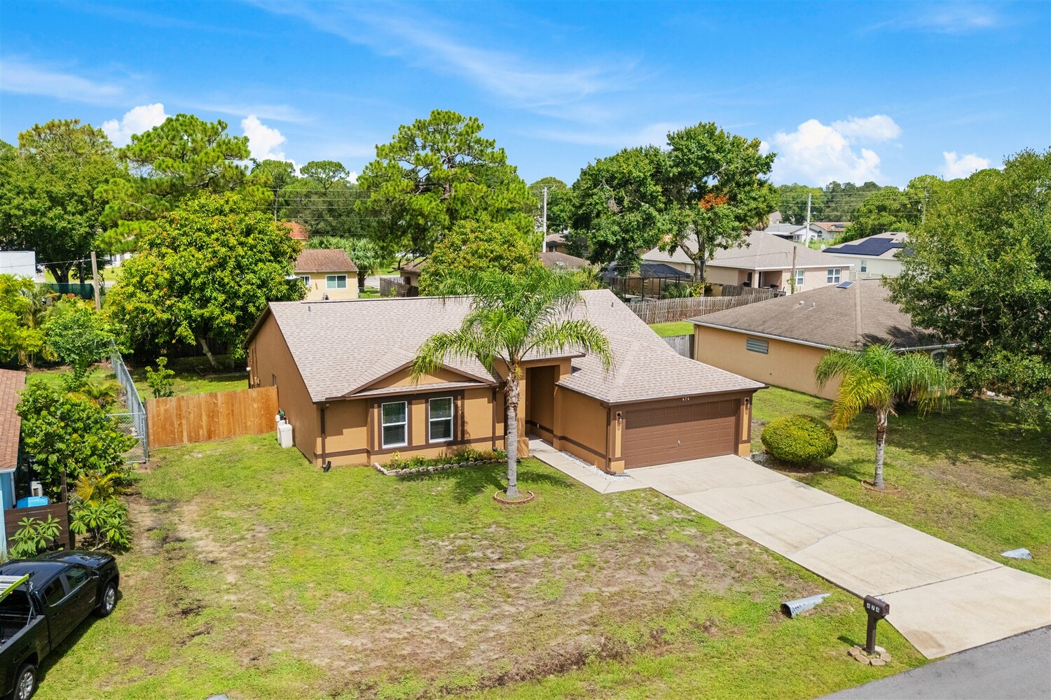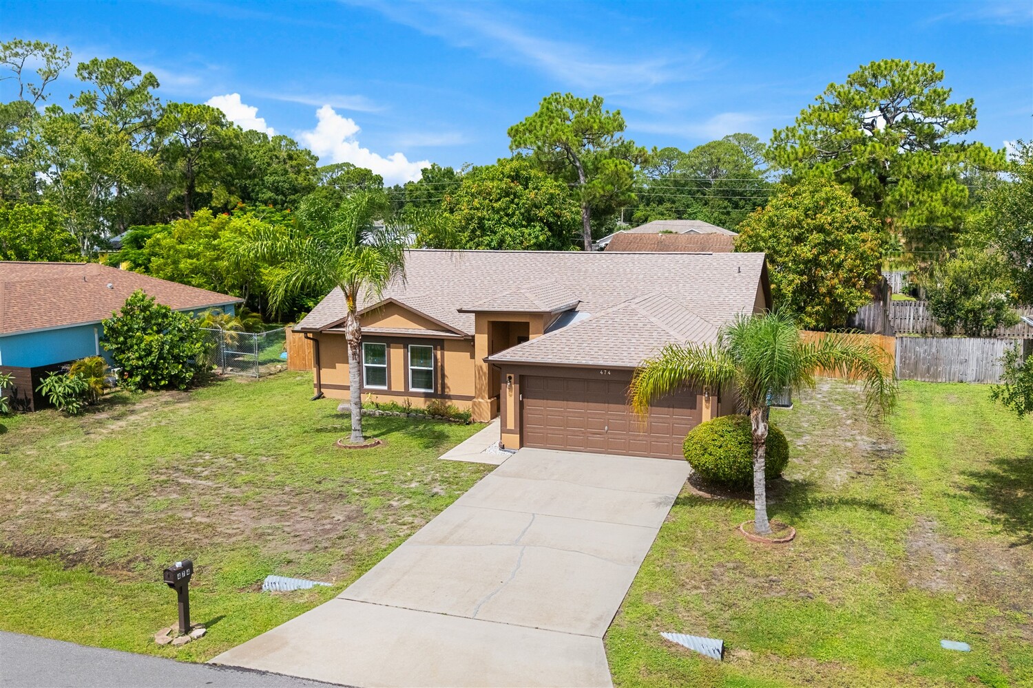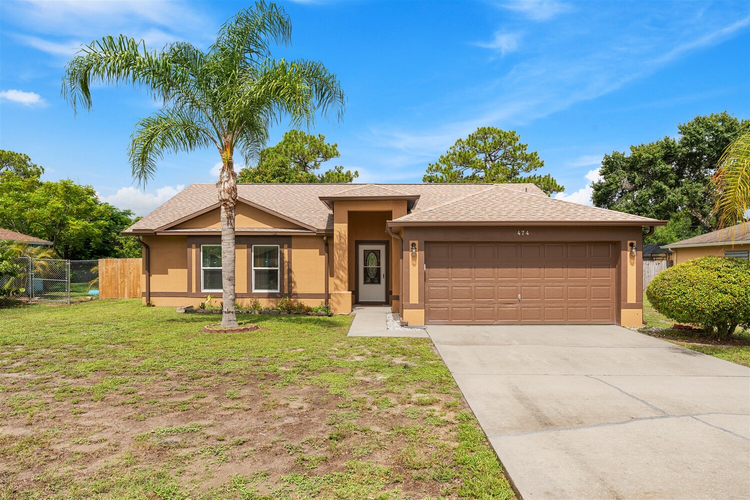 Welcome to this beautifully updated 3-bedroom, 2-bath home in desirable NW Palm Bay! Built in 2007 and thoughtfully upgraded, this 1,618 sq ft home offers modern comfort, a spacious open floor plan, and move-in ready convenience. Enjoy peace of mind with a new roof (2024) and new A/C (2024). Both bathrooms were completely renovated in 2024 with fresh, stylish finishes. The kitchen, updated in 2021, features sleek cabinetry, ample counter space, and a functional layout perfect for daily living and entertaining. Tile flooring runs throughout the home—no carpet! The large living and dining areas flow seamlessly to the kitchen and out to the trussed patio, ideal for relaxing or hosting guests. The split-bedroom layout offers privacy, and all bedrooms are well-sized with great natural light. Situated on a .23-acre lot, there's room to roam, garden, or play. Additional perks include city water and city sewer—no septic worries here! Located close to shopping, schools, and major roadways, this home combines convenience, style, and value. Don't miss your chance to own a practically brand-new home without the new construction price tag!