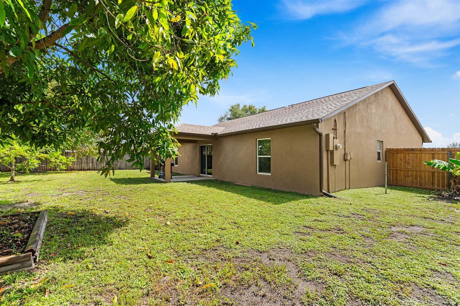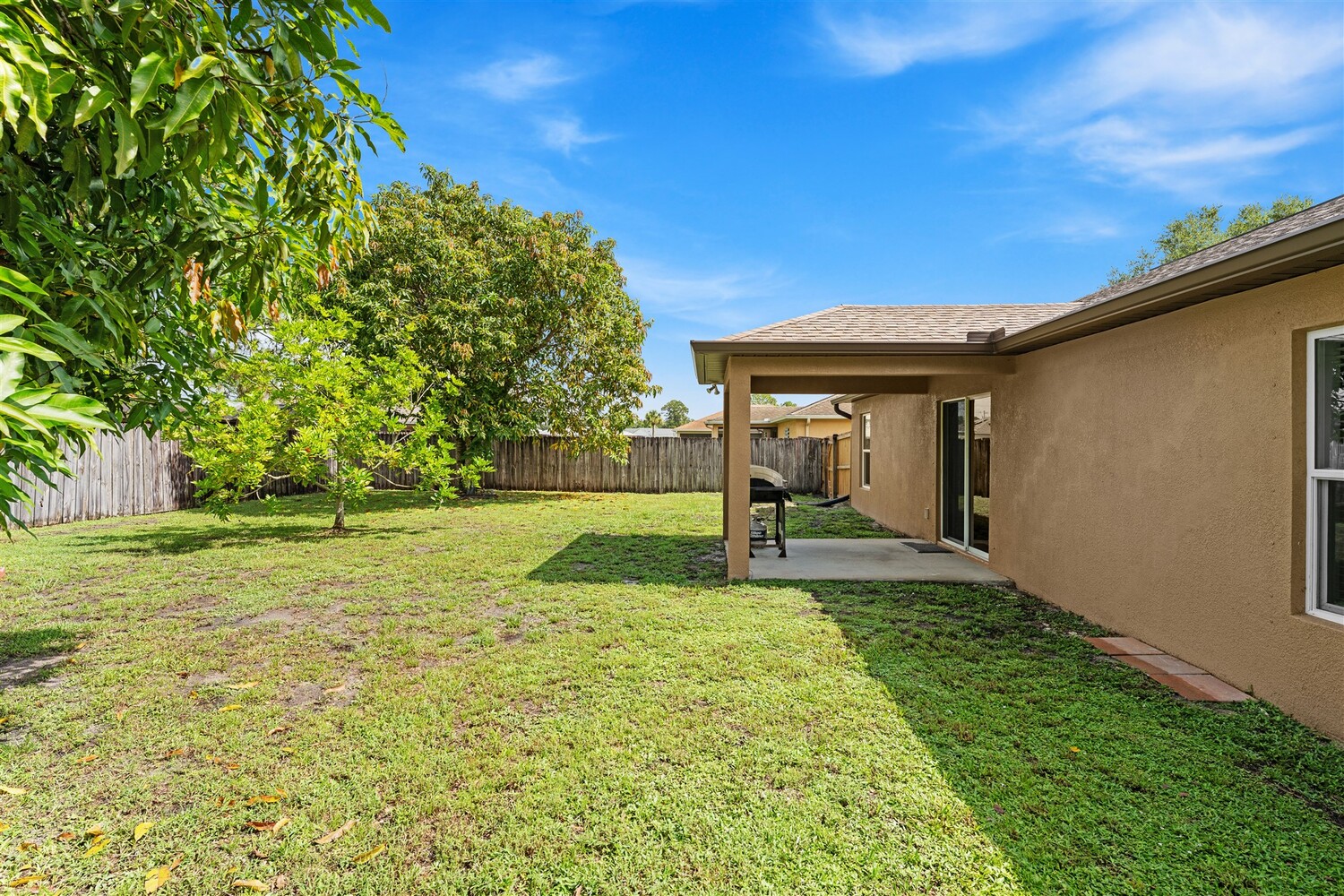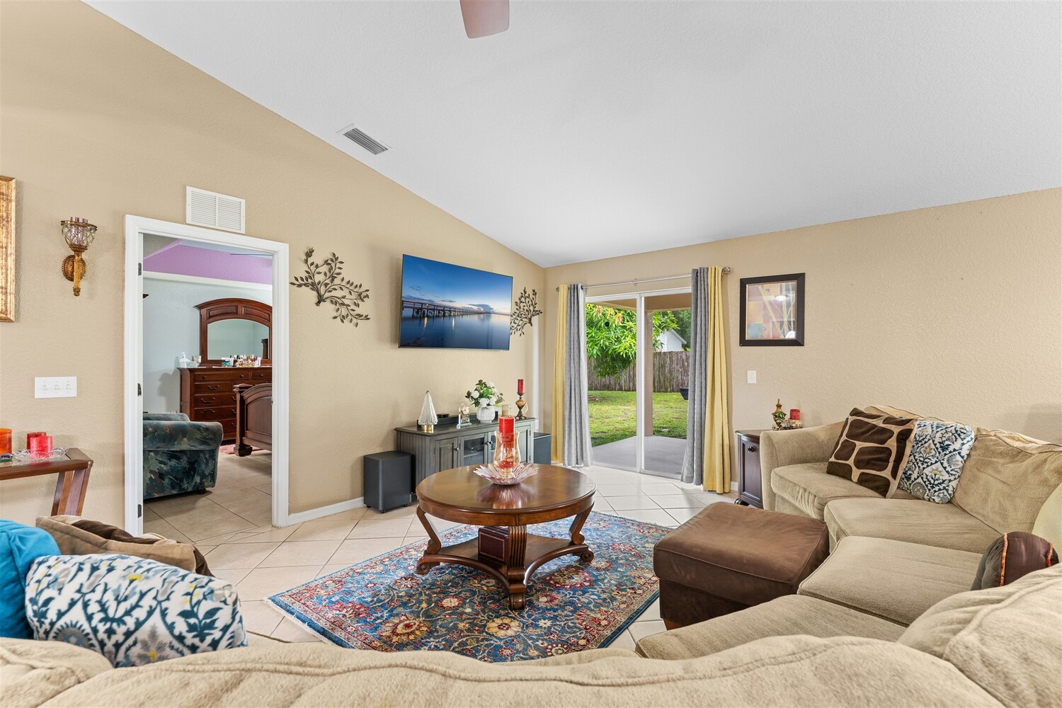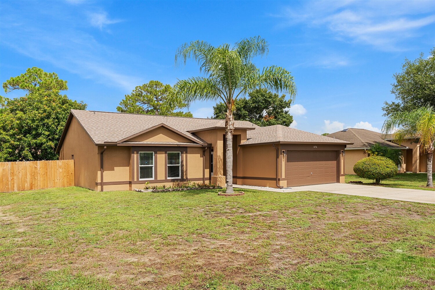 Welcome to this beautifully updated 3-bedroom, 2-bath home in desirable NW Palm Bay! Built in 2007 and thoughtfully upgraded, this 1,618 sq ft home offers modern comfort, a spacious open floor plan, and move-in ready convenience. Enjoy peace of mind with a new roof (2024) and new A/C (2024). Both bathrooms were completely renovated in 2024 with fresh, stylish finishes. The kitchen, updated in 2021, features sleek cabinetry, ample counter space, and a functional layout perfect for daily living and entertaining. Tile flooring runs throughout the home—no carpet! The large living and dining areas flow seamlessly to the kitchen and out to the trussed patio, ideal for relaxing or hosting guests. The split-bedroom layout offers privacy, and all bedrooms are well-sized with great natural light. Situated on a .23-acre lot, there's room to roam, garden, or play. Additional perks include city water and city sewer—no septic worries here! Located close to shopping, schools, and major roadways, this home combines convenience, style, and value. Don't miss your chance to own a practically brand-new home without the new construction price tag!