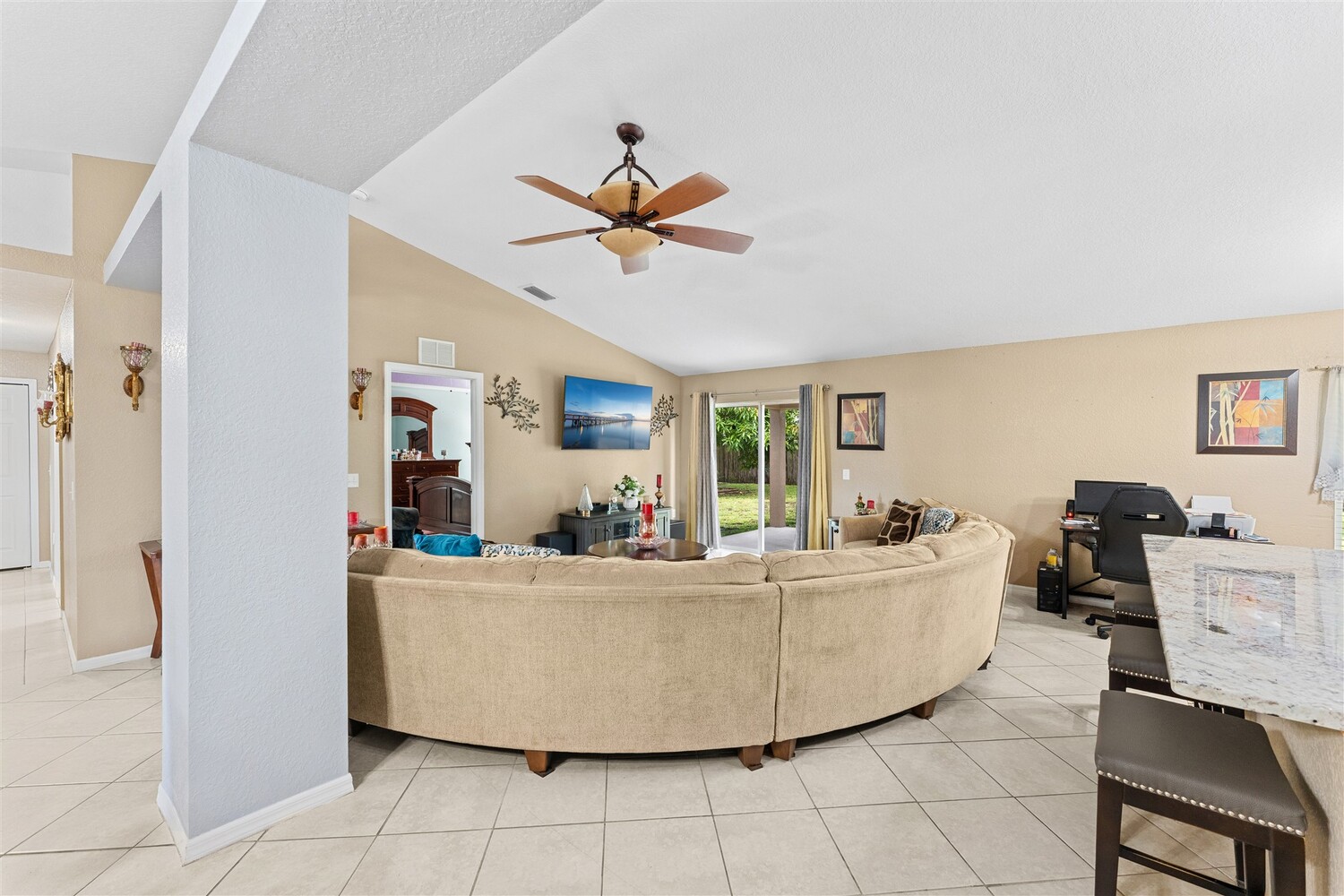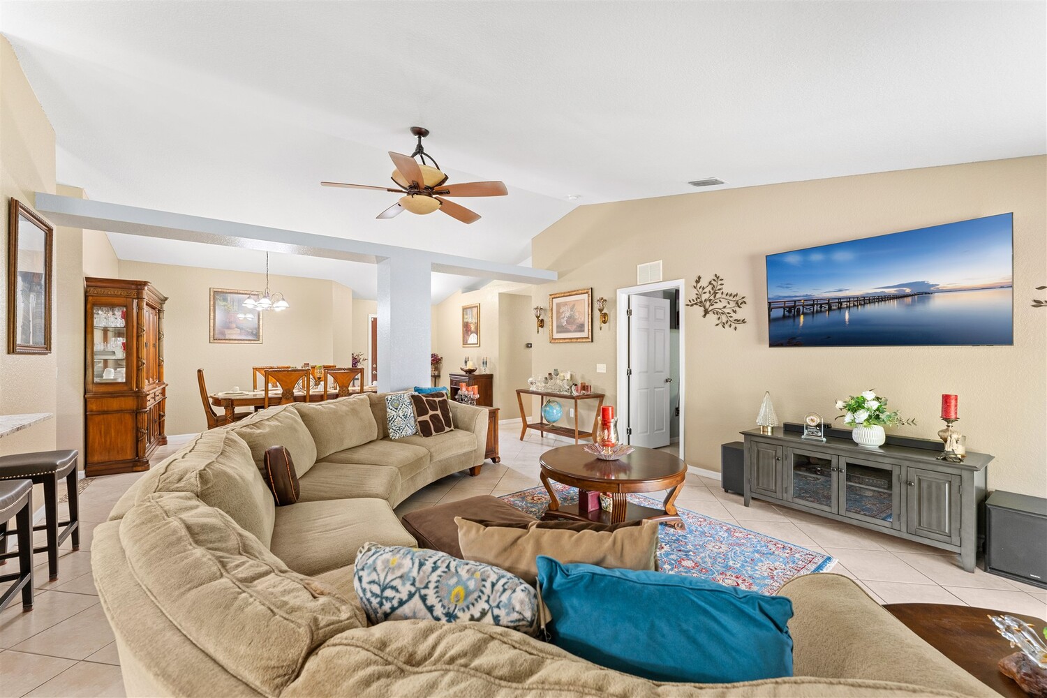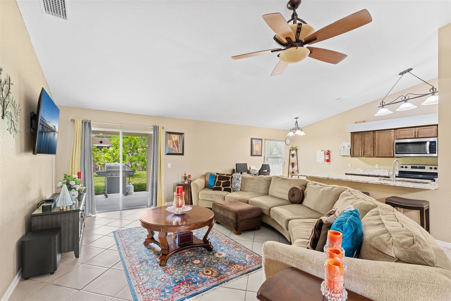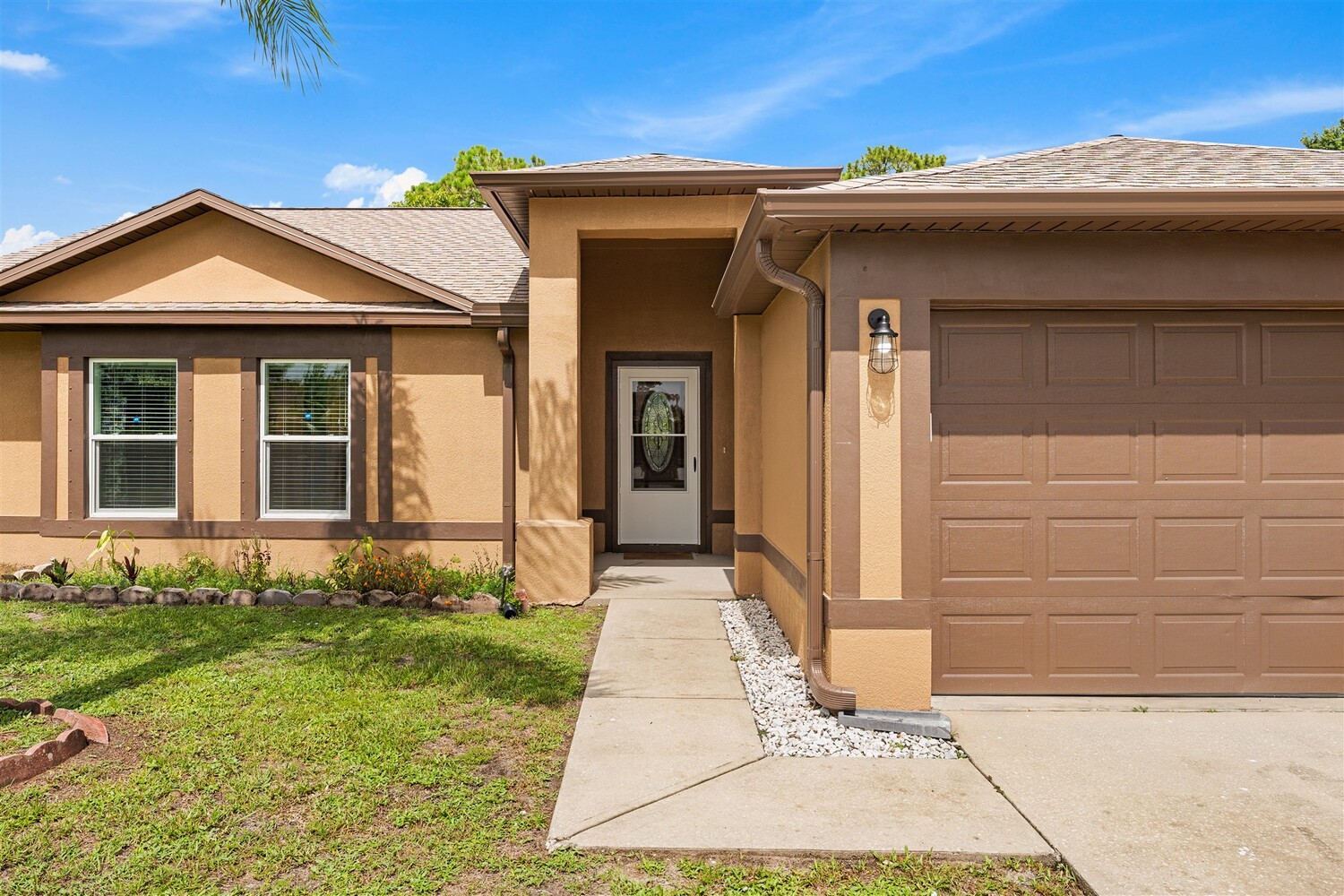 Welcome to this beautifully updated 3-bedroom, 2-bath home in desirable NW Palm Bay! Built in 2007 and thoughtfully upgraded, this 1,618 sq ft home offers modern comfort, a spacious open floor plan, and move-in ready convenience. Enjoy peace of mind with a new roof (2024) and new A/C (2024). Both bathrooms were completely renovated in 2024 with fresh, stylish finishes. The kitchen, updated in 2021, features sleek cabinetry, ample counter space, and a functional layout perfect for daily living and entertaining. Tile flooring runs throughout the home—no carpet! The large living and dining areas flow seamlessly to the kitchen and out to the trussed patio, ideal for relaxing or hosting guests. The split-bedroom layout offers privacy, and all bedrooms are well-sized with great natural light. Situated on a .23-acre lot, there's room to roam, garden, or play. Additional perks include city water and city sewer—no septic worries here! Located close to shopping, schools, and major roadways, this home combines convenience, style, and value. Don't miss your chance to own a practically brand-new home without the new construction price tag!