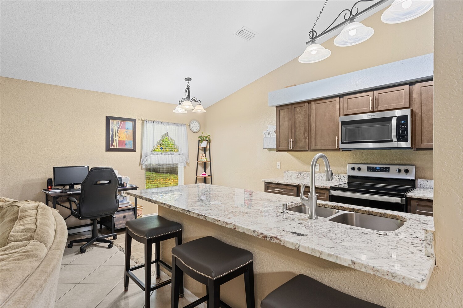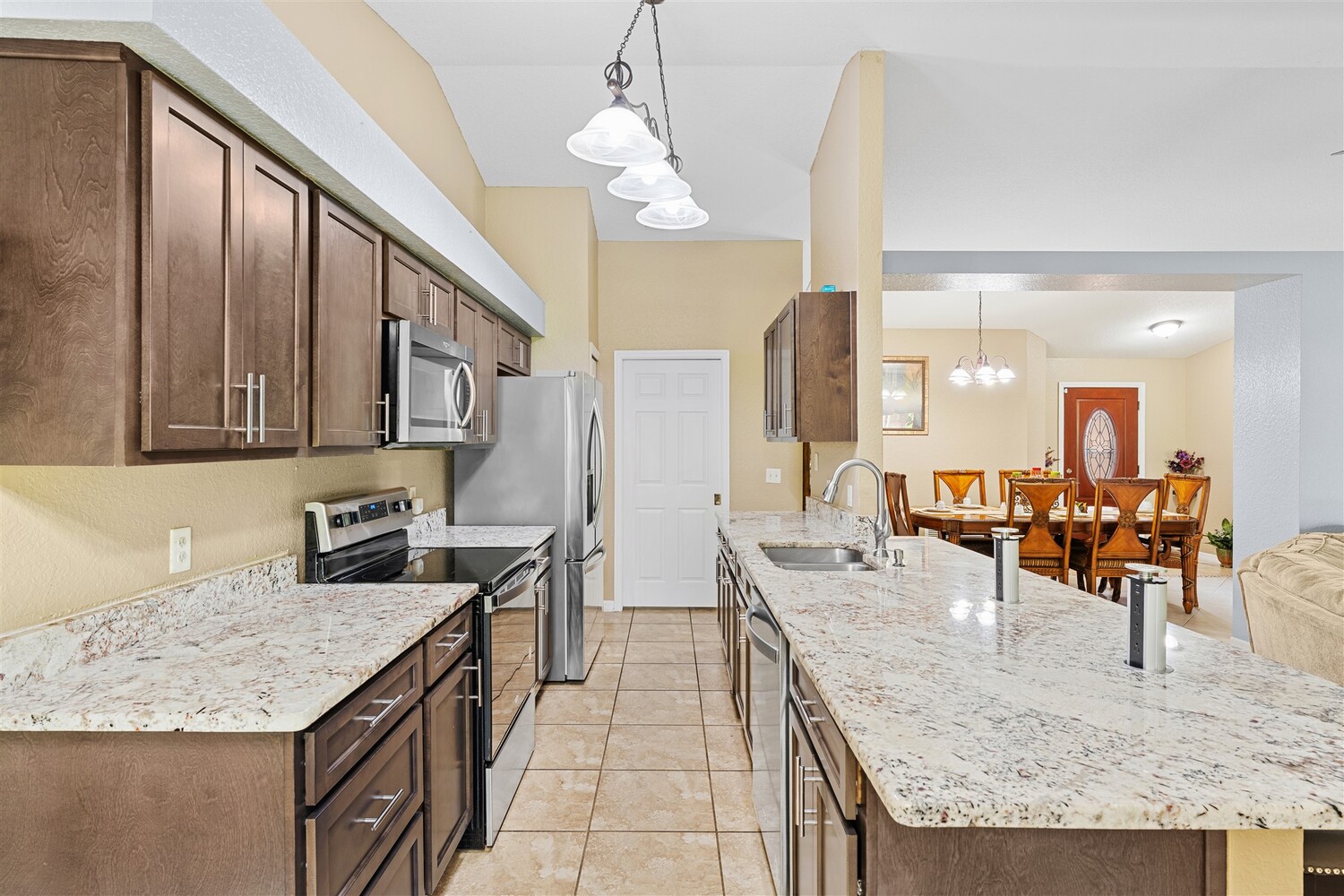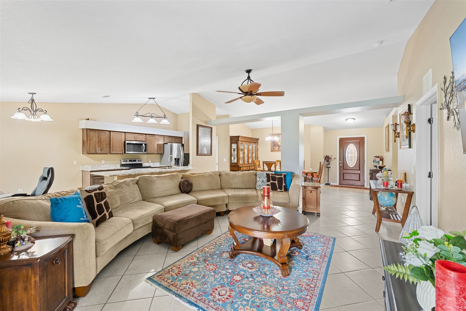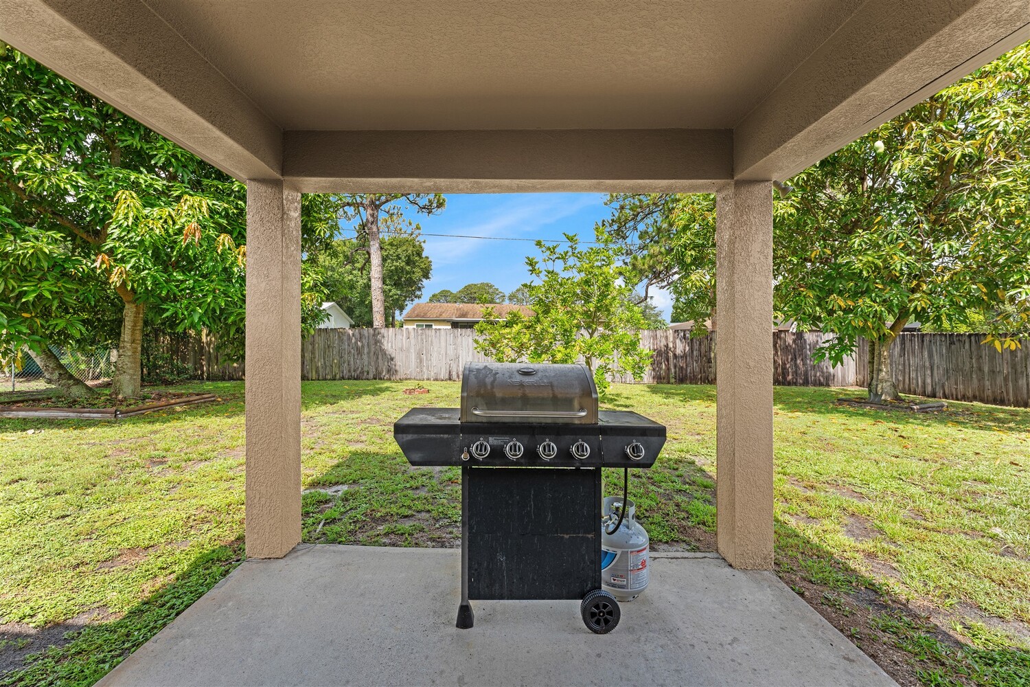 Welcome to this beautifully updated 3-bedroom, 2-bath home in desirable NW Palm Bay! Built in 2007 and thoughtfully upgraded, this 1,618 sq ft home offers modern comfort, a spacious open floor plan, and move-in ready convenience. Enjoy peace of mind with a new roof (2024) and new A/C (2024). Both bathrooms were completely renovated in 2024 with fresh, stylish finishes. The kitchen, updated in 2021, features sleek cabinetry, ample counter space, and a functional layout perfect for daily living and entertaining. Tile flooring runs throughout the home—no carpet! The large living and dining areas flow seamlessly to the kitchen and out to the trussed patio, ideal for relaxing or hosting guests. The split-bedroom layout offers privacy, and all bedrooms are well-sized with great natural light. Situated on a .23-acre lot, there's room to roam, garden, or play. Additional perks include city water and city sewer—no septic worries here! Located close to shopping, schools, and major roadways, this home combines convenience, style, and value. Don't miss your chance to own a practically brand-new home without the new construction price tag!