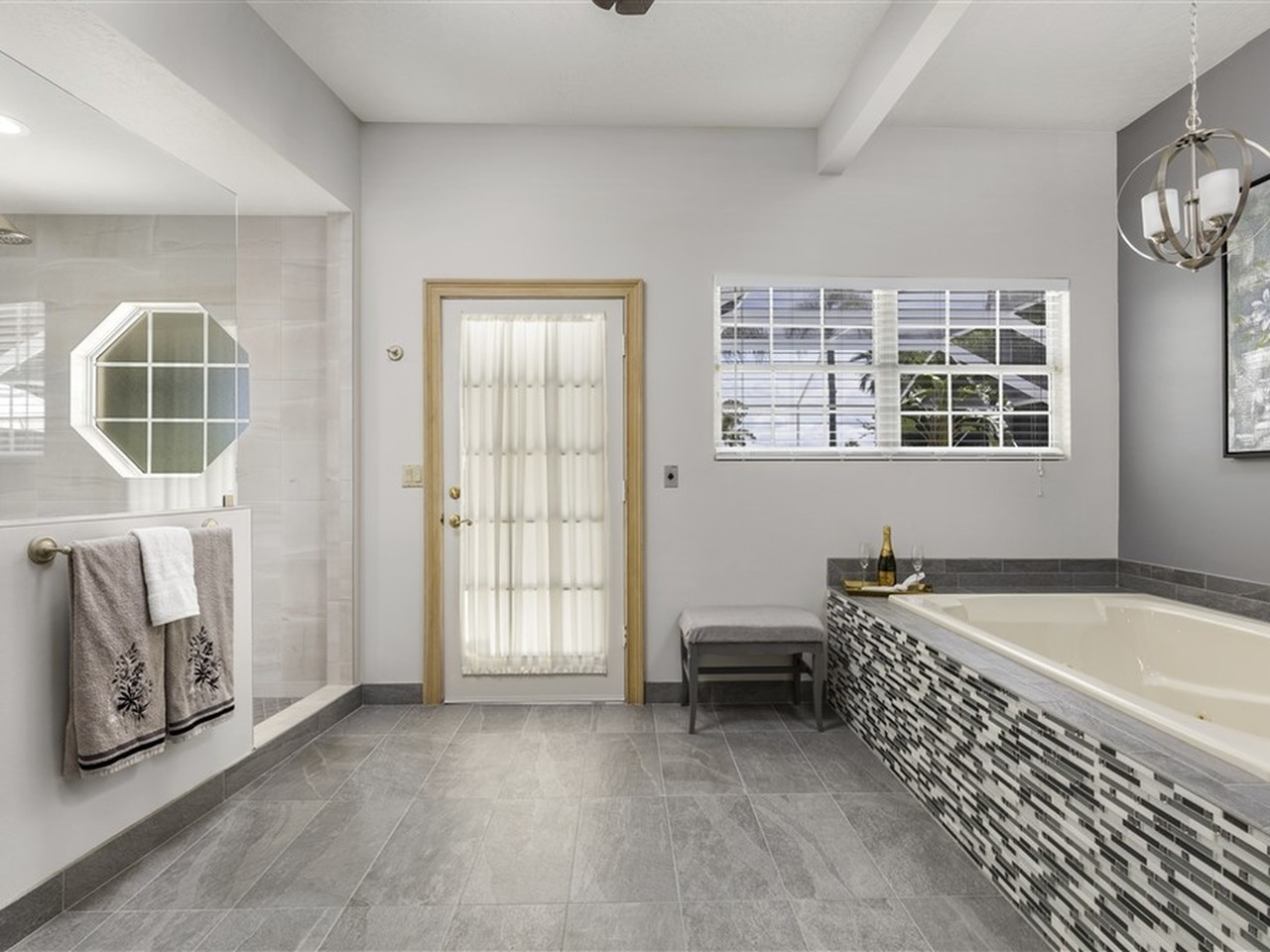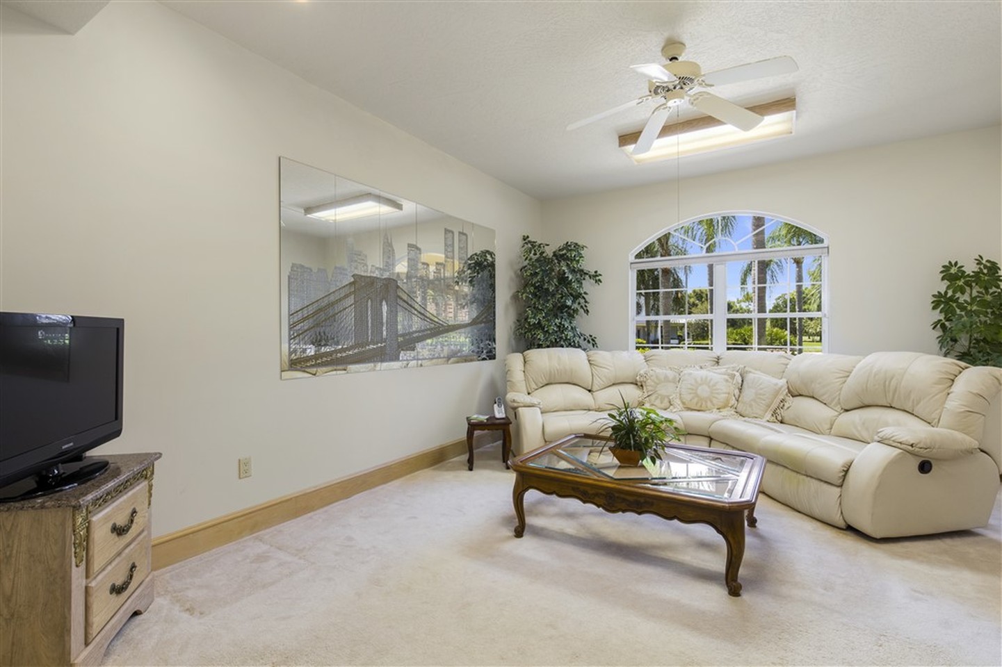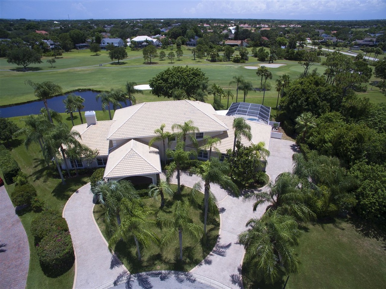SUNTREE GOLF COURSE - This Contemporary estate sits on one of the largest Suntree lots overlooking the 1st and 9th holes on the Classic Course. It’s a perfect location for all types of recreation that is only minutes away from club house for golf and tennis, boating and beach. Fishing is permitted in all Suntree lakes for members. This two story residence was designed for entertaining and provides expansive, open and light-filled living. A circular drive and porte cochere give the house impressive curb appeal. The two story entry gives way to an open floor plan with an airy ambiance and interesting architectural features including soaring ceilings, a coral double-sided fireplace and second floor walkways. Walls of windows allow for breathtaking views of the course from the living room while the adjacent dining room can seat 10+. The kitchen boasts granite counters, stainless steel appliances and a breakfast area for casual dining. The spacious first floor master suite features a large walk in closet and elegant spa like bath. This private retreat opens to the porch and pool. It’s a perfect place to relax and enjoy the lush, green views. An expansive covered screened porch offers shaded golf course viewing, entertaining, and leads to a beautiful crystal clear pool. A large office or media room and fully equipped laundry room round out the first floor. Upstairs, a second master bedroom would make a wonderful in-law suite. Two more generously sized bedrooms with en suites and a large game area are available upstairs. Entertain a crowd or just relax in the evening on the upper deck overlooking the lake and fairway. The estate is completed with a four car garage and multiple storage opportunities.