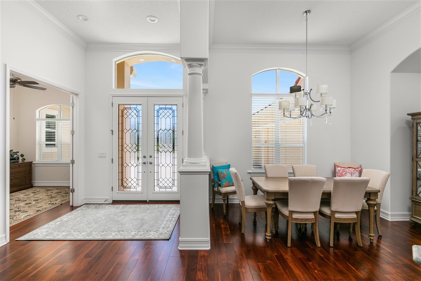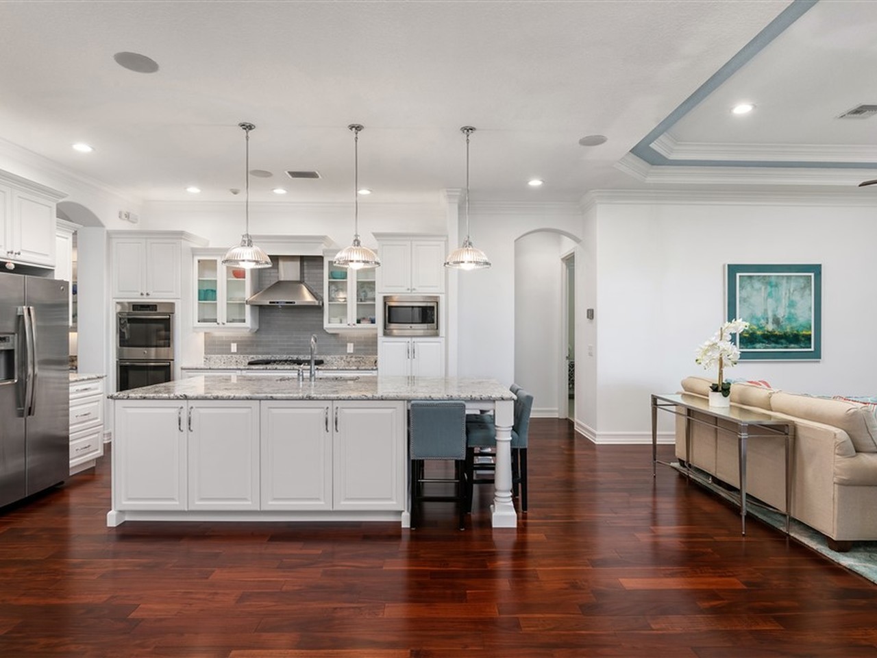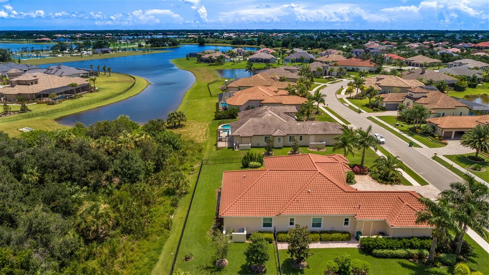 Privacy and Luxury await in this custom 4 bed 3 bath PLUS study home located on a preserve with lake views! This immaculate 4 yr old home will end your search! Walk thru double embossed glass doors into a world framed in today's ''in'' colors, soft grays, whites and blues! Notice first the custom trim work and gorgeous hardwood floors which draw your eye through the liv rm, dining rm, study, to the kitchen and family rm beyond! The large kitchen with white cabinets and a 9' designer island is the heart of the home and rivals any model home! Gray subway tile backsplash,undercabinet lighting, pullouts, walk-in pantry, 5 burner gas cooktop, double ovens, microwave, wine fridge, and butler area, complete any Buyer's wish list! Sumptuous master suite occupies own wing and will not disappoint! The soft color pallet continues through this area with designer ceiling, french door to patio, and his/her closets with custom built-ins! The luxurious master bath includes a tile shower w/ dual showerheads, soaking tub, separate vanities, and linen closet. Pool bath features tile shower and pedestal sink with door to screened-in enlarged patio/porch. A gas summer kitchen, and ceiling fans add to the resort feel of this home! Large fenced in manicured and landscaped yard has plenty of room for a pool and the builder installed a concrete pad and pre-plumbed the electricity for future pool equipment. A dream laundry room with glass door includes a sink and cabinets galore. A hallway with home maintenance center leads to the oversized 3 car garage with custom interlocking floor system, sink, and pull down stairs to additional storage. Guest room, guest bath, and bonus room w/closet (4th bedroom) are tastefully decorated and complete the tour! Other custom features found in this outstanding home are exterior french doors with built-in blinds in many rooms, recirculating hot water, multiple tray ceilings, crown moldings, wider doors and bracing for future grab bars, gutters, hurricane shutters, radiant barrier in attic with 18"soffit overhangs to cool attic more efficiently, soffit lighting, security cameras, and ceiling speakers in family room and kitchen! This home has it all!