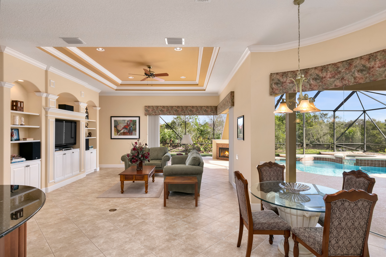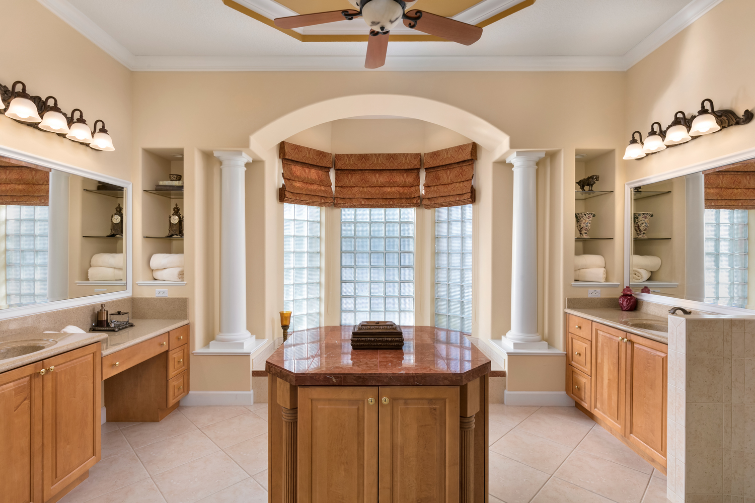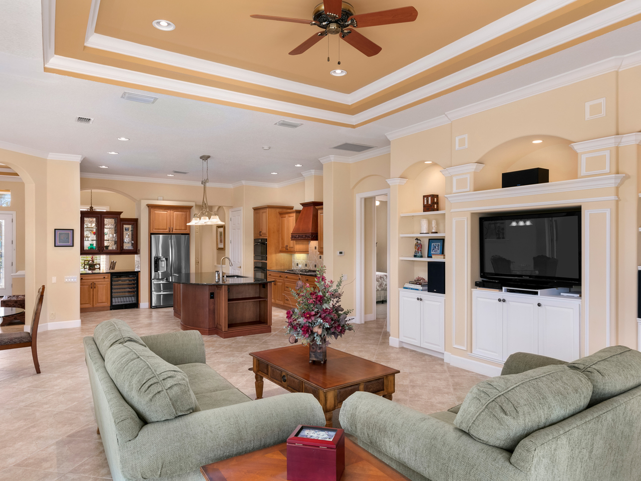 This Spectacular Custom home is located in the gated golf community of Baytree in the heart of Suntree/Viera. This 3,590 sq.ft. home is the perfect place to entertain featuring 4 large bedrooms, 3.5 baths, office, and 3 car garage. The kitchen with its Thermador gas cooktop, custom 42” cabinets, expansive island, granite countertops, custom hood, granite desk, and breakfast nook welcome large gatherings and make it the heart of the home. This home defines luxury Florida living when you experience the 90 degree doors that expand your living space from the family room to the screened and covered lanai with salt pool and spa. The soothing waterfall into the pool creates a relaxing space to enjoy your outdoor kitchen and fireplace as you take in your views of the preserve and 14th green. This Spectacular Custom home is located in the prestigious gated golf community of Baytree in the heart of Suntree/Viera. Attention to detail and quality craftsmanship grace this immaculate 3,590 sq.ft. home featuring: barrel tile roof, 90 degree doors, plantation shutters, built in entertainment center, large 17KW generator, soaring ceilings and double tier tray ceilings framed with crown molding. With four bedrooms, Den, 3 1/2 baths, oversized 3 car garage, and large outdoor pool/lanai area this home provides a luxury space that everyone can enjoy. The Grand Foyer is open to the dining room and formal living room which is complete with fire place and triple pane glass slider that opens to the pool. Outfitted with Cherry and glazed Honey Maple 42" custom cabinetry with under mount lighting, the kitchen is a chef's dream and boasts a new Thermador five-burner stainless steel gas stove, built in oven, Advantium oven/microwave, U-Line beverage cooler, and pantry with adjustable solid shelving. The expansive island, farmhouse under mount sink, custom hood, granite countertops, breakfast bar, and tiled backsplash truly make this the heart of the home. Adjacent to the kitchen you find a convenient ''mini office'' with more cabinetry, and a granite topped desk. In addition, there is a granite pass through to the formal dining room with floating seeded glass cabinetry. The open floor plan also includes a large bright family room with built in entertainment center. The inviting master suite has a treyed ceiling, bay window sitting area, door to the pool, and large walk in closets. The master bath is a quiet retreat. Soak in the jetted tub surrounded by bay windows, or step into the tile and glass shower. The double vanity, center island and chandelier create a grand space! Additional outdoor living and relaxing space can be found as you exit the family room and walk through the 90 degree doors and out onto the home's fully screened lanai where you can enjoy preserve and 14th green golf course views. The Southeastern exposure allows for comfortable use of the pool, spa, outdoor shower, and summer kitchen all day. A waterfall flows from the spa into the salt pool providing a peaceful sound as well as an aesthetic appeal. An electric heat exchange system heats the pool/spa and is managed with a Jandy Aqualink. Automatic cleaning of the pool, which was resurfaced in 2016, is accomplished by the Great White Sweep. Florida living wouldn't be complete without the outdoor kitchen complete with gas grill, 2 burner GE monogram cooktop, refrigerator, sink, and outdoor gas fireplace. This large covered space allows for entertaining or watching wildlife rain or shine! Oversized 3 car garage has a bay window, epoxy floor, high ceilings, plantation shutters, custom cabinetry and shoe shelf by California Closets and an air-conditioned storage room. Marantec garage door opener. Hurricane shutters. Custom stamped concrete driveway. New exterior paint and pool deck sealer. Oversized laundry room with large laundry tub and 42" cabinetry. New 2018 recirculating water heater, 2 HVAC 2017(16 seer) and 2013 (14 seer-cooling only).