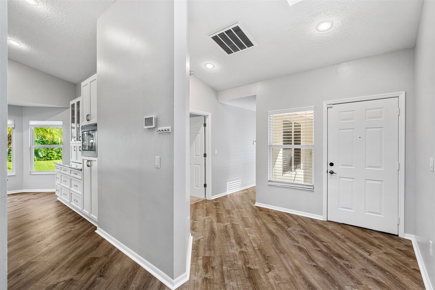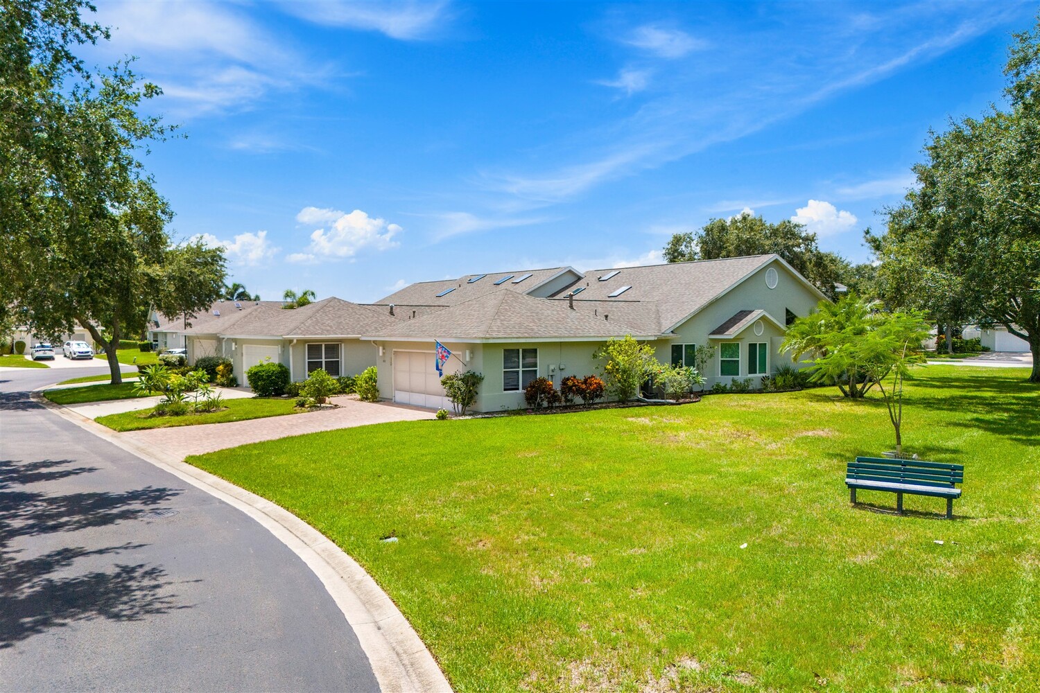 Welcome to 822 Oakwood Drive, a beautifully updated end-unit townhome located in the desirable community of Briarwood in Suntree. Located just steps away from the sparkling community pool! This 3-bedroom, 2-bath home is filled with natural light thanks to skylights and large windows, with six replaced in 2019. Major updates include a new roof (2020), A/C (2017), a stunning $41K kitchen remodel (2020), and a $17K primary bath renovation (2023). The inviting screened front porch sets the tone for easy Florida living. Inside, the chef's kitchen features a center island, granite countertops, white cabinets with glass inserts, stainless steel appliances, a built-in microwave, breakfast bar, and gorgeous nook windows that bathe the space in light. The kitchen flows into the open family room with a cozy gas fireplace, perfect for entertaining or relaxing. The primary suite offers a luxurious retreat with double sinks, a walk-in tub, and a separate shower. The home also includes a huge laundry room with washer/dryer hookups, storage cabinets, and a utility sink, plus a 2-car garage with a retractable screen. In the back, enjoy a separate enclosed porch with windows, leading to an extended paver patio, ideal for outdoor dining or lounging. With its thoughtful upgrades, spacious layout, and unbeatable location in Suntree this home offers a solid foundation to make it your own with a few finishing touches.