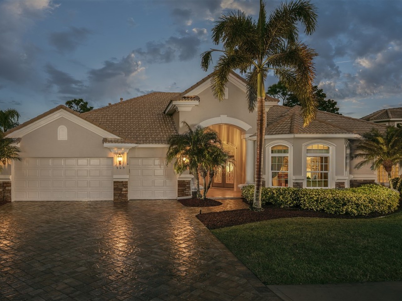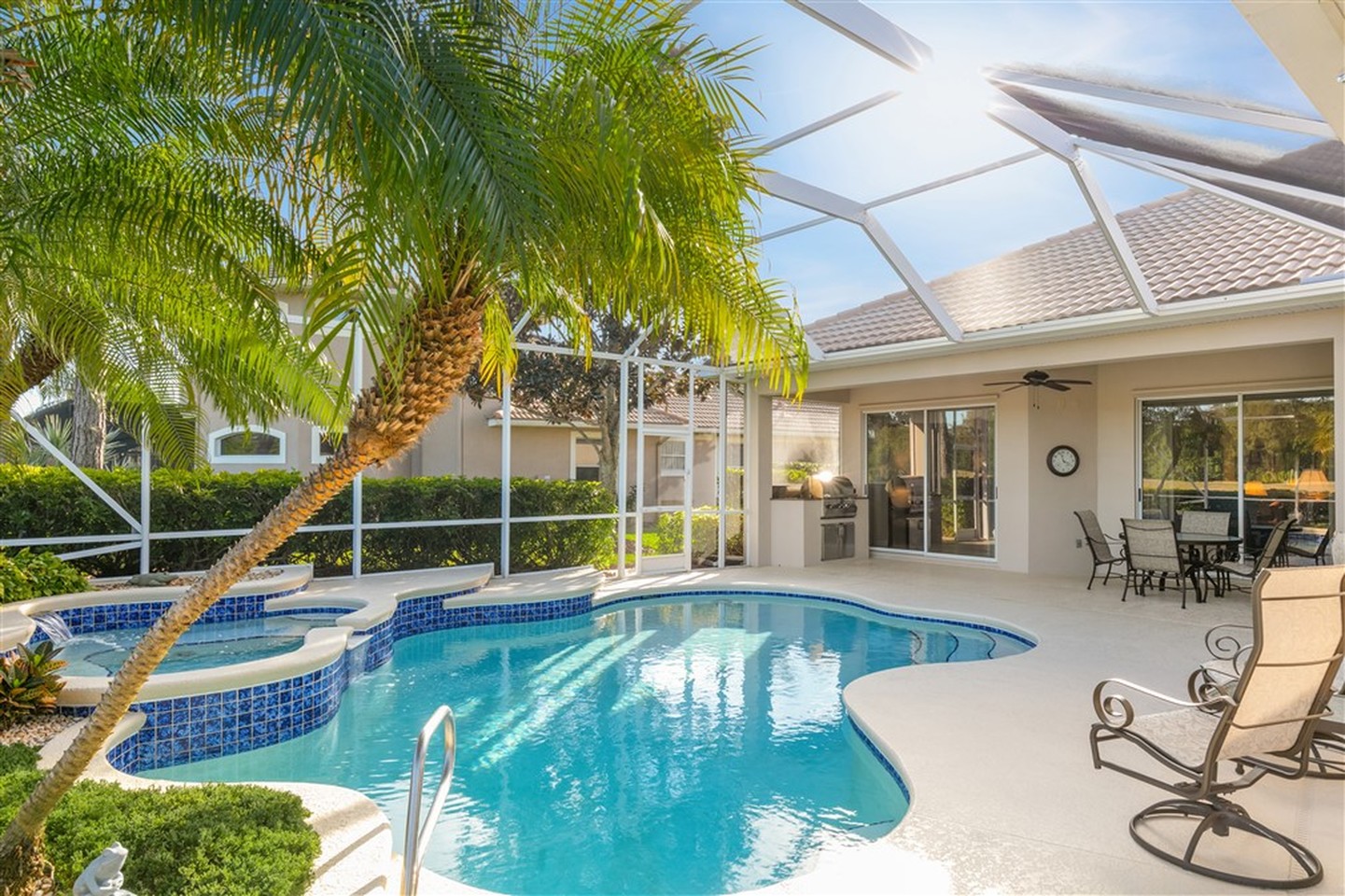Welcome to Superior custom construction, stunning golf views, and a private screened pool in a topnotch gated golf community. Meticulously maintained 2753 square foot, one story, 3 bed, 3 bath, 3 car garage home with private office is situated on a quiet dead-end street. New sealed paver driveway, stacked stone exterior accents, double door entry and a picturesque bay window grace the front exterior. Family and guests can easily transition between indoor and outdoor spaces through sliding glass doors from the living room, family room and master bedroom. Open floor plan, tray ceilings, formal living and dining spaces. Island kitchen w/ breakfast bar, gas cooktop. Enjoy newer AC units, kitchen appliances, water heater and all new PGT WinGuard Impact Glass Hurricane Windows. Newly repainted exterior in 2017. Other features not to be missed include a screened pool/spa, lanai and summer kitchen, an immaculate 3 car garage and manicured landscaping. Baytree golf course is a Gary Player Signature Course and is located next to the community's pool, tennis and bocce courts. Convenient access to I-95, Orlando IAP, beaches and schools make this a wonderful place to live, play, retire or raise a family.