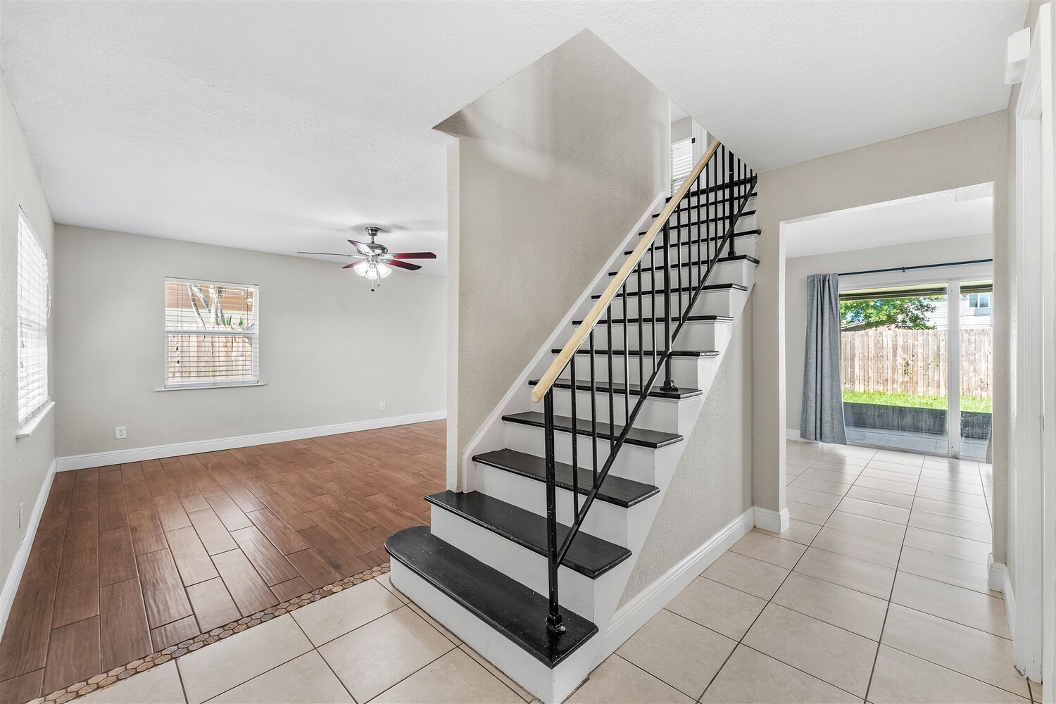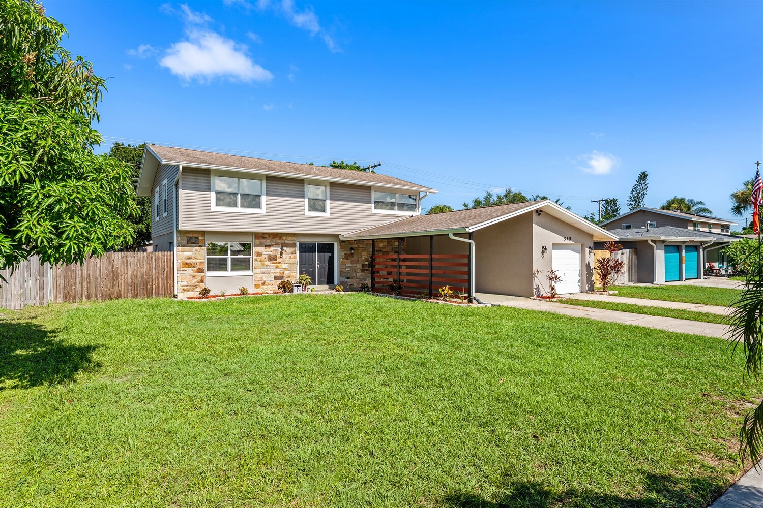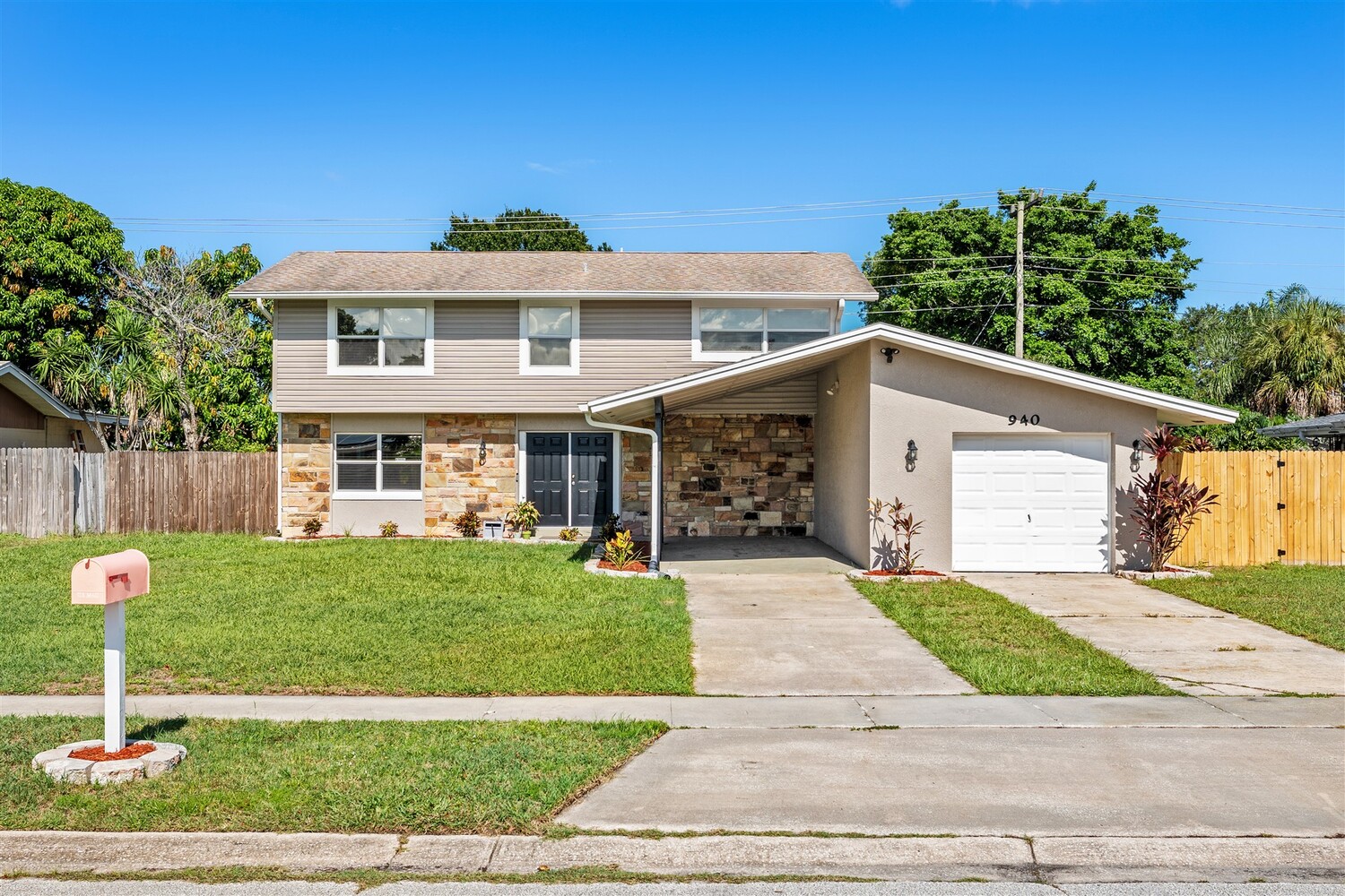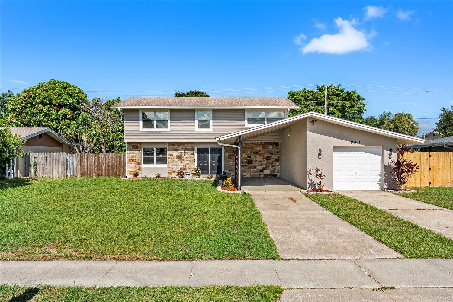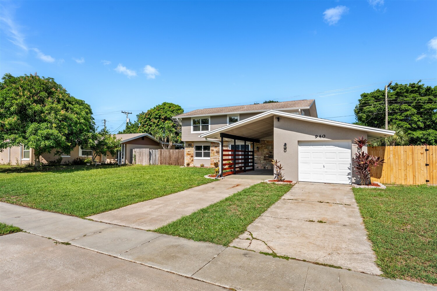 Act Fast—Assumable VA Loan at 940 Bowing Ln, Rockledge, FL 32955! Don't miss this 4-bed, 2.5-bath gem in Buckingham Levit Park! New tile floors the first level (two living rooms, dining room, eat-in kitchen overlooking a fenced backyard, powder bath, garage, carport), while new LVP shines upstairs. Enjoy granite counters, stainless appliances, custom lighting, and a screened porch. Washer/dryer included! This rare VA loan deal offers savings—act now before it's gone! Nestled in a sought-after community, it's near Space Coast attractions and highways. Perfect for families or entertainers, this move-in ready home won't last. Schedule a tour today! Key Features: 4 Beds, 2.5 Baths, New Tile (1st Floor), New LVP (2nd Floor), Two Living Rooms, Dining Room, Eat-In Kitchen, Fenced Backyard, Screened Porch, Granite Counters, Stainless Appliances, Custom Lighting, Powder Bath, Garage, Carport, Washer/Dryer Included, Assumable VA Loan.