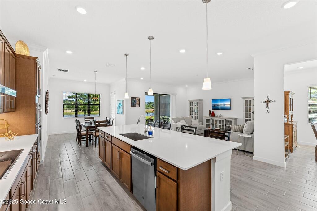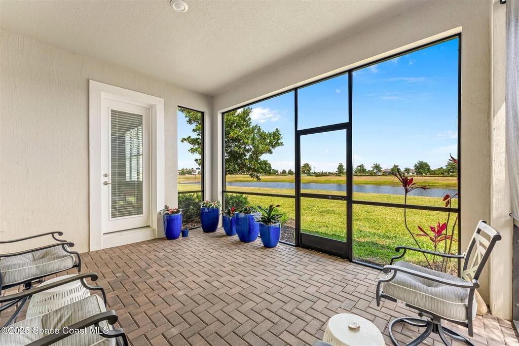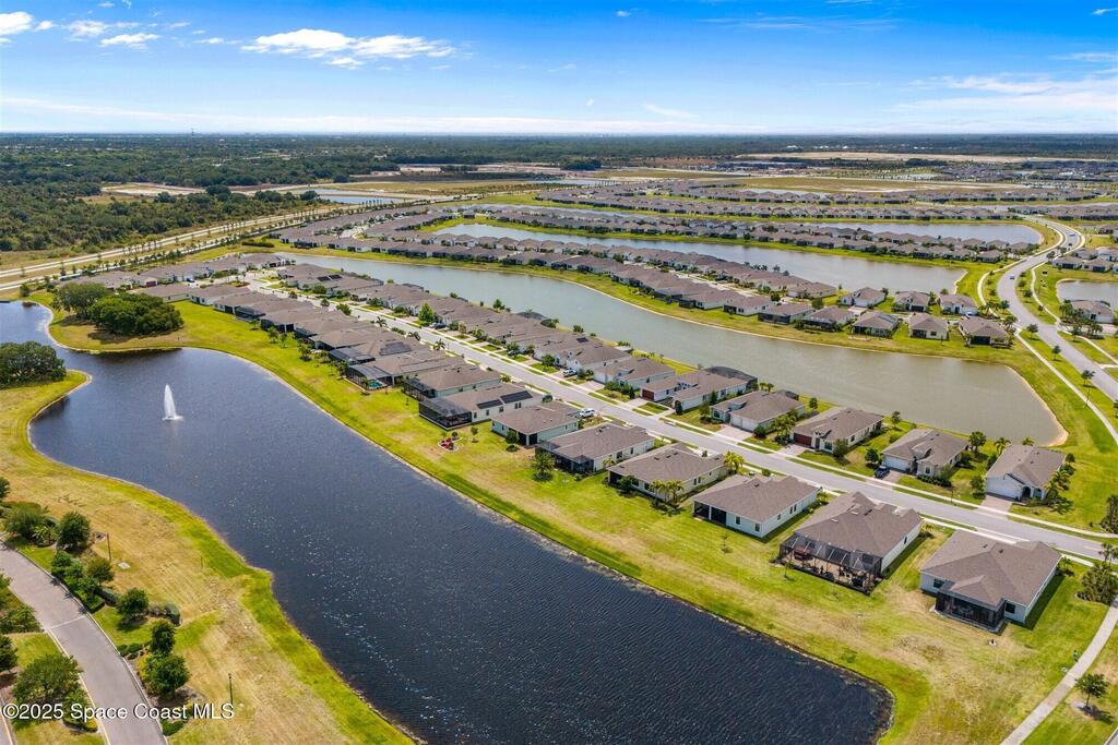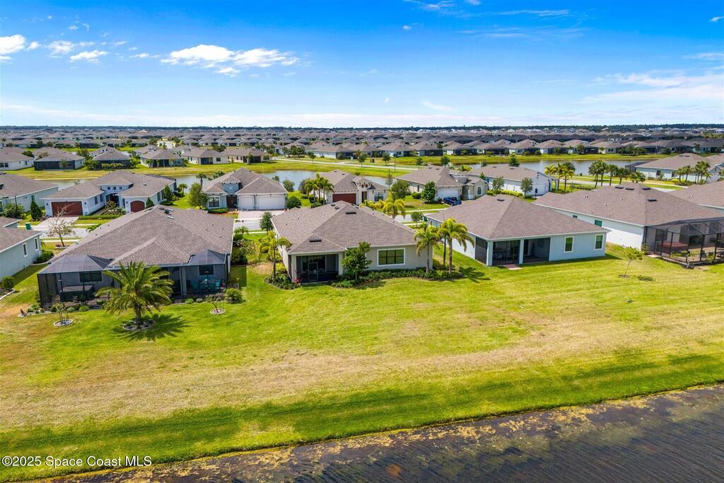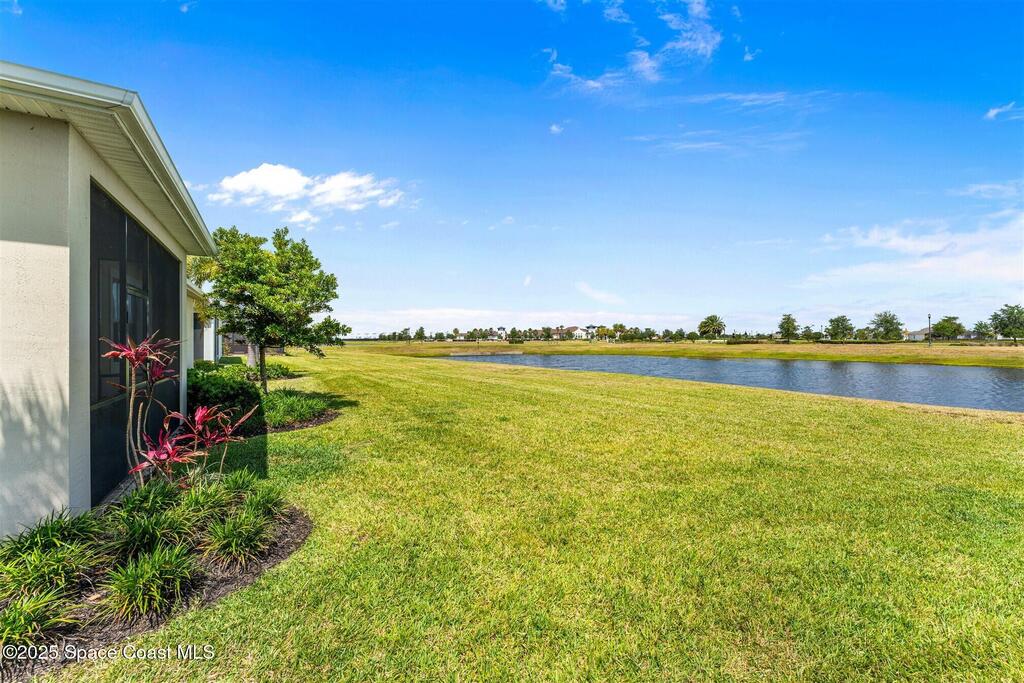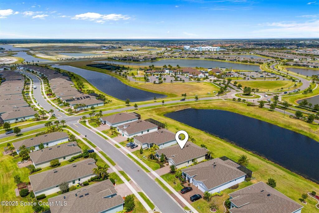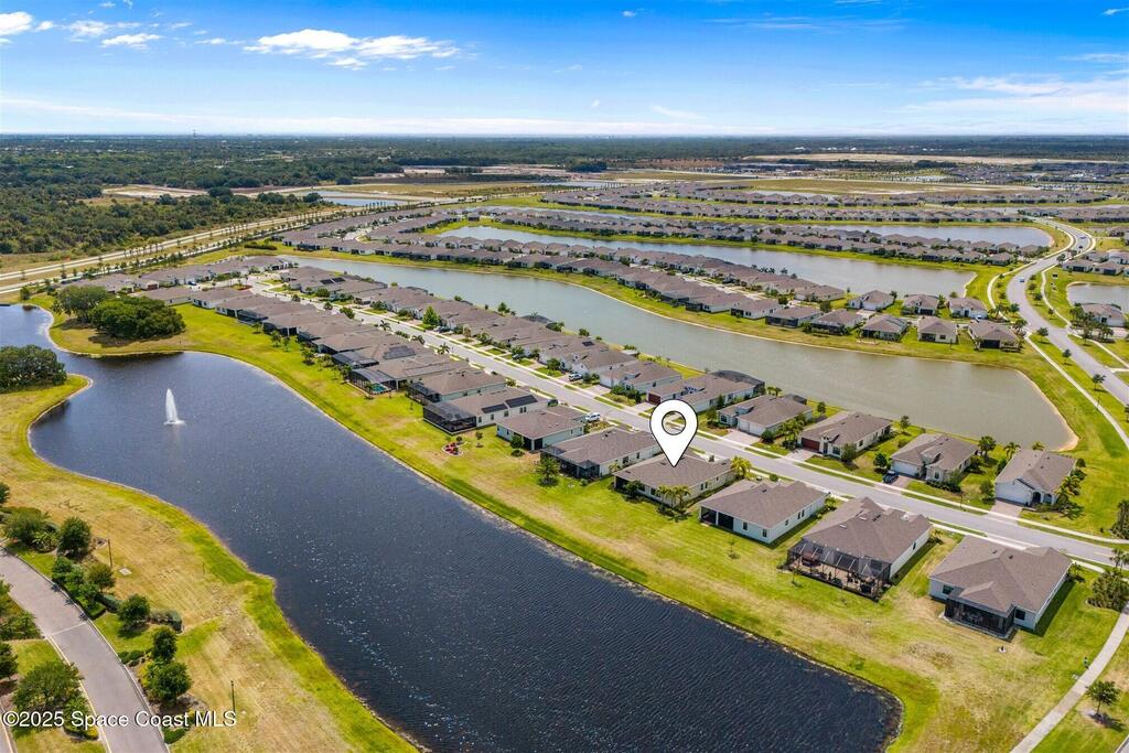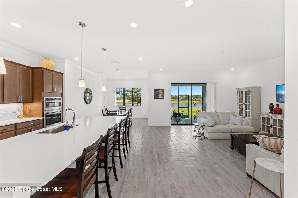 A must-see, this former builder's model with mother-in-law suite (ADU) attached, has all the extras! Situated on a waterfront lot with added landscaping, the next-gen floorplan in Bridgewater, Viera's popular 55+ resort style community, features a separate living suite with private entrance, kitchen and laundry, family room, full bath and bedroom and is perfect for an office, in-laws, and grown children. This beautifully decorated home with 3 additional bedrooms, 2 baths and a flex room, features plank tile throughout with color sealed grout adding beauty and ease of cleaning. The stunning gourmet kitchen features wall oven, a cooktop, designer hood, tiled backsplash w/ undercabinet lighting, pantry and a huge island! Crown molding and additional LED lighting in all rooms! Enjoy relaxing on the stone-faced front porch or on the screened lanai overlooking the lake and fountain! State of the art clubhouse with heated pool, spa, tennis, pickleball! Close to beaches! HOA maintains yard!