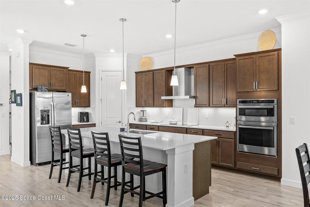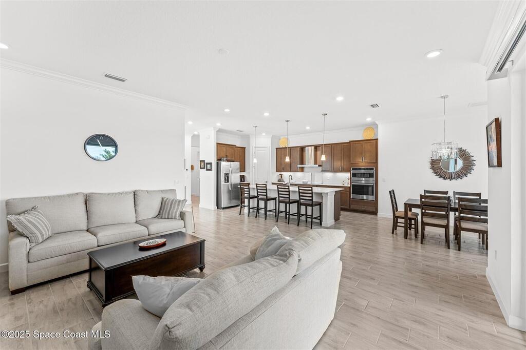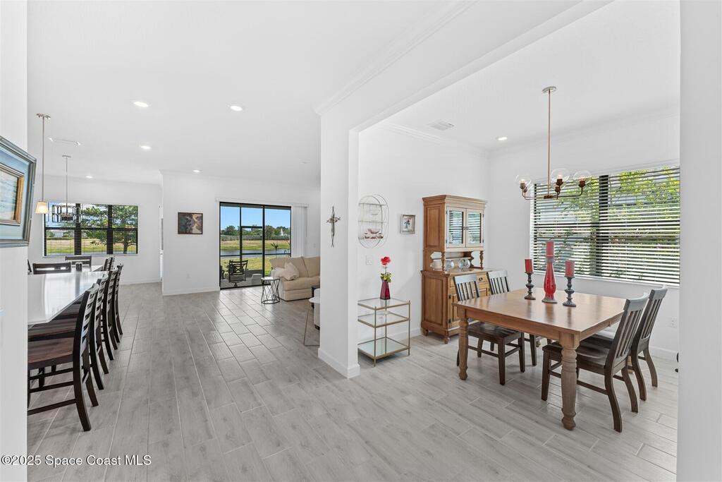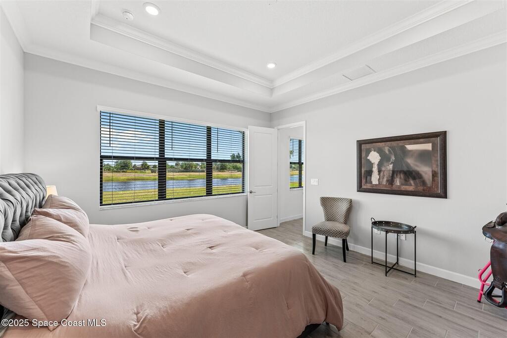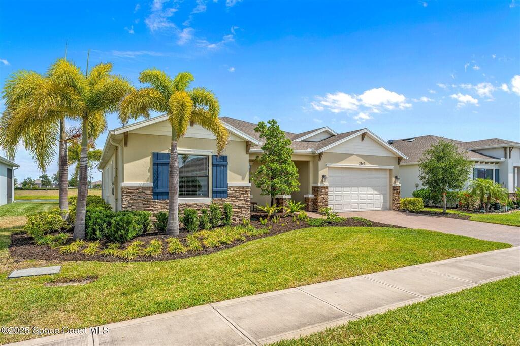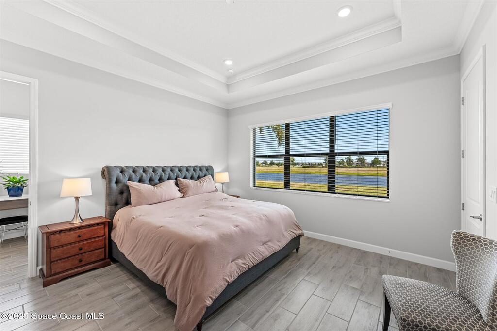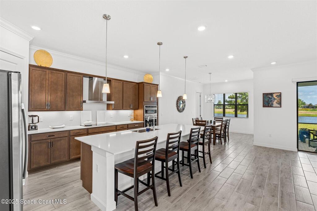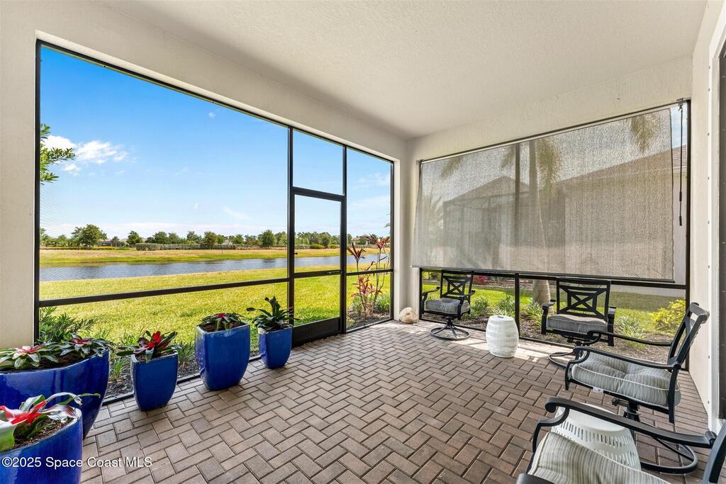 A must-see, this former builder's model with mother-in-law suite (ADU) attached, has all the extras! Situated on a waterfront lot with added landscaping, the next-gen floorplan in Bridgewater, Viera's popular 55+ resort style community, features a separate living suite with private entrance, kitchen and laundry, family room, full bath and bedroom and is perfect for an office, in-laws, and grown children. This beautifully decorated home with 3 additional bedrooms, 2 baths and a flex room, features plank tile throughout with color sealed grout adding beauty and ease of cleaning. The stunning gourmet kitchen features wall oven, a cooktop, designer hood, tiled backsplash w/ undercabinet lighting, pantry and a huge island! Crown molding and additional LED lighting in all rooms! Enjoy relaxing on the stone-faced front porch or on the screened lanai overlooking the lake and fountain! State of the art clubhouse with heated pool, spa, tennis, pickleball! Close to beaches! HOA maintains yard!