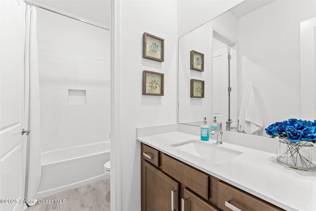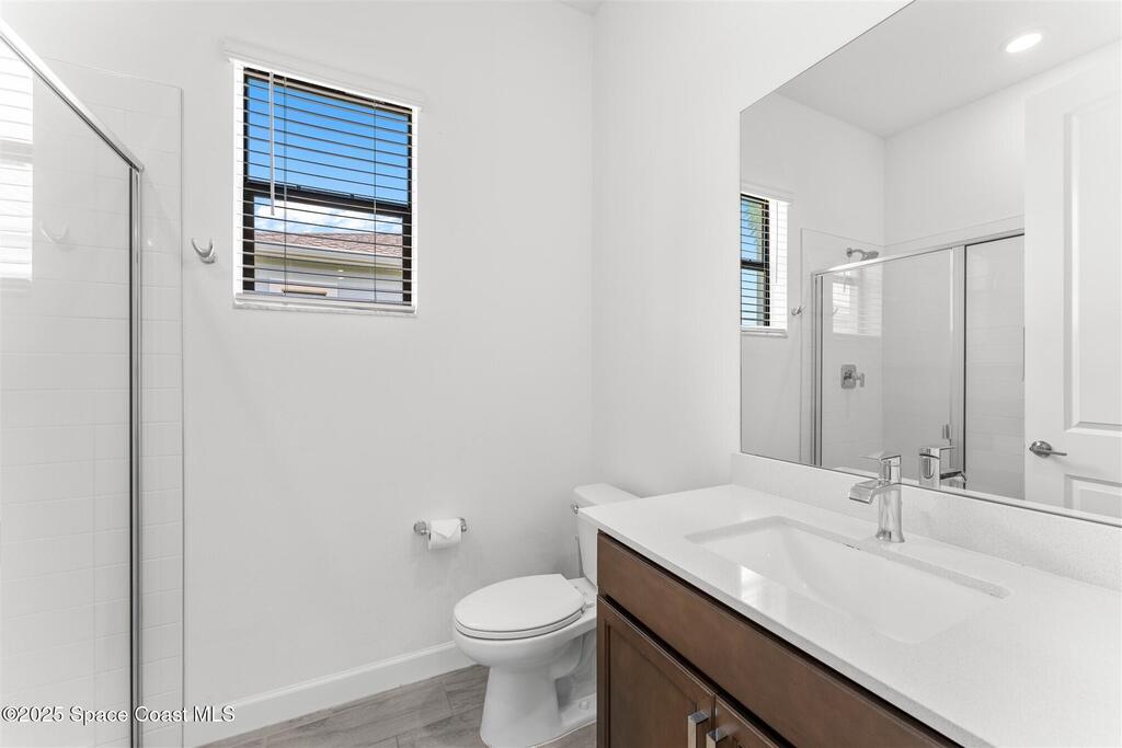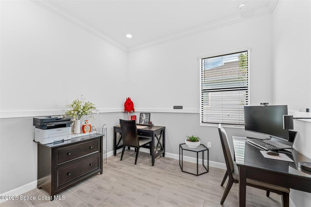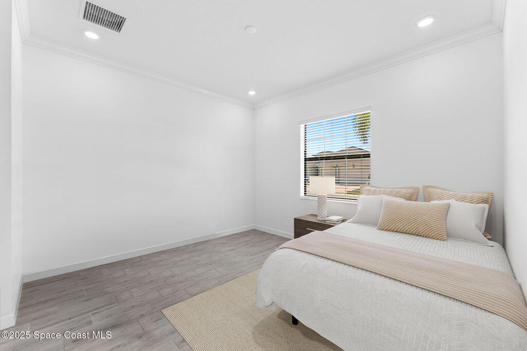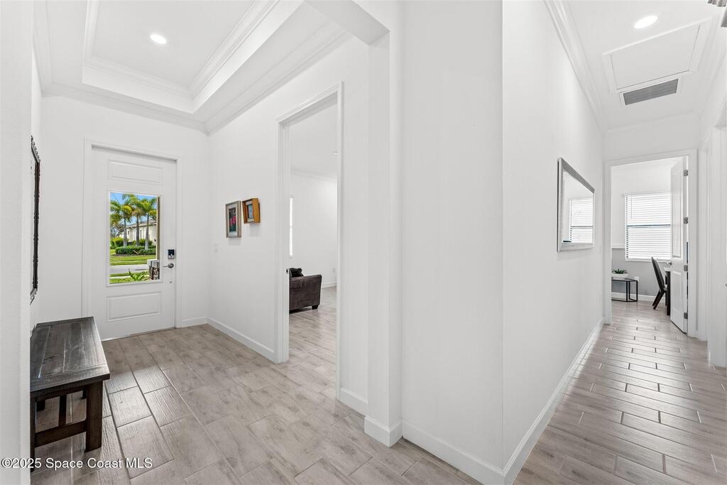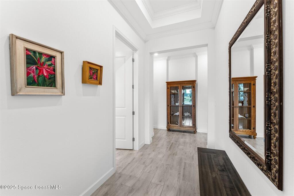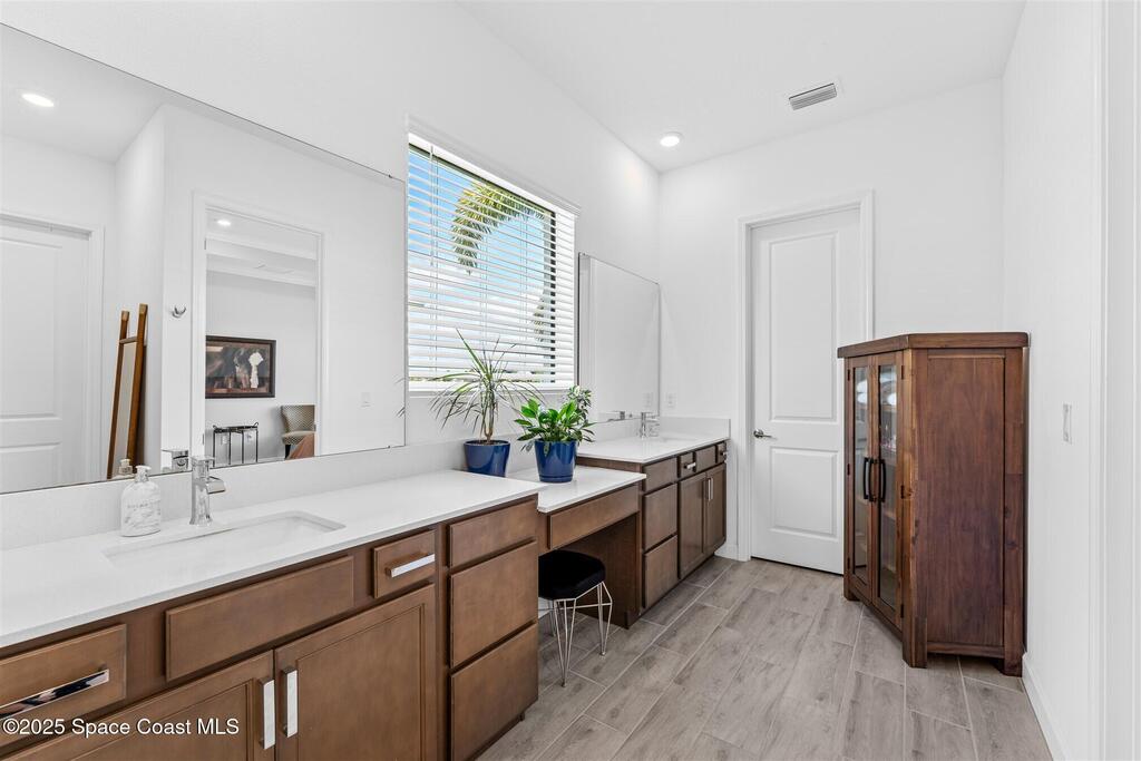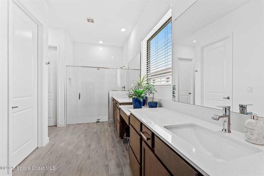 A must-see, this former builder's model with mother-in-law suite (ADU) attached, has all the extras! Situated on a waterfront lot with added landscaping, the next-gen floorplan in Bridgewater, Viera's popular 55+ resort style community, features a separate living suite with private entrance, kitchen and laundry, family room, full bath and bedroom and is perfect for an office, in-laws, and grown children. This beautifully decorated home with 3 additional bedrooms, 2 baths and a flex room, features plank tile throughout with color sealed grout adding beauty and ease of cleaning. The stunning gourmet kitchen features wall oven, a cooktop, designer hood, tiled backsplash w/ undercabinet lighting, pantry and a huge island! Crown molding and additional LED lighting in all rooms! Enjoy relaxing on the stone-faced front porch or on the screened lanai overlooking the lake and fountain! State of the art clubhouse with heated pool, spa, tennis, pickleball! Close to beaches! HOA maintains yard!