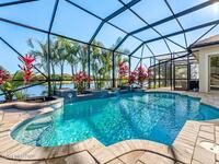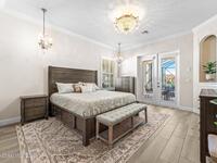 Immerse yourself in elegance in this exquisite, custom built, former model pool home, featuring 4 bedrooms, 4.5 baths, and remarkable luxury finishes. Charming double door entry leads to open floor plan and views of the pool and lake beyond. Stunning wood-look tile runs through the main living areas. Beautiful first-floor primary suite oasis includes a walk-in closet and spa-like bath with built-in storage, oversized shower, free standing tub and pool access. Stunning chef's kitchen is graced with 2-tone cabinets, quartzite countertops, custom vent hood, & stainless steel appliances including a 6 burner gas stove and two ovens. Two additional bedrooms grace the first floor. Upstairs, a fourth bedroom with full bath, a bonus room . SEE ''MORE''...