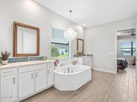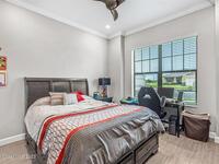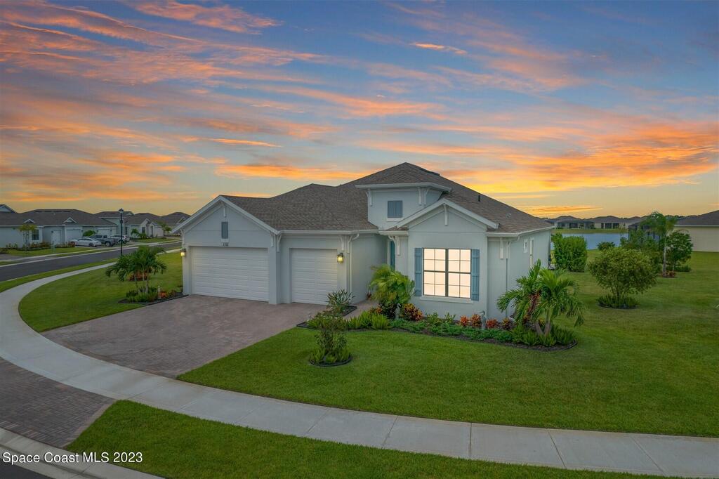Rare opportunity to have the most sought-after floor plan on one of the largest lake front lots in Bridgewater, Viera's resort style 55+ gated community! This stunning nearly new 3 bedroom plus den, 3 bath, 3 car garage home, custom painted and decorated in the popular palette of whites and grays, has every option: plank tile and crown molding throughout, hurricane rated impact windows and slider, 8' doors, gourmet kitchen with wall ovens & cooktop and largest island offered, luxury bath package with quartz counters, decorator lighting and fans, epoxy garage floor, and over $20,000 in professional landscaping! Privacy abounds on this over half-acre lake lot with extended paver patio and additional trees. Less than one year old w/ Builder's Warranty! Smart Home! Amazing Clubhouse and Pool.