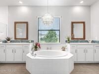 Ceiling Fan(s), Guest Suite, His and Hers Closets, Kitchen Island, Open Floorplan, Pantry, Primary Bathroom - Tub with Shower, Primary Bathroom -Tub with Separate Shower, Split Bedrooms, and Walk-In Closet(s)