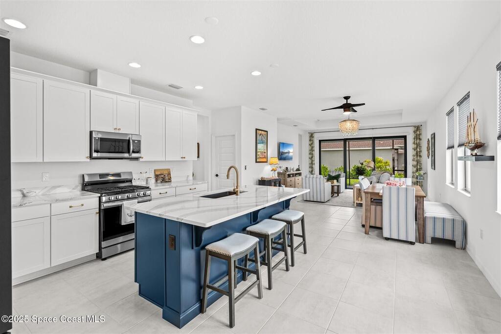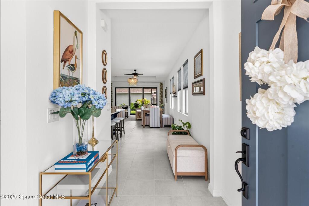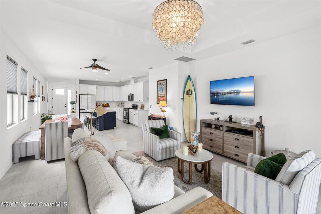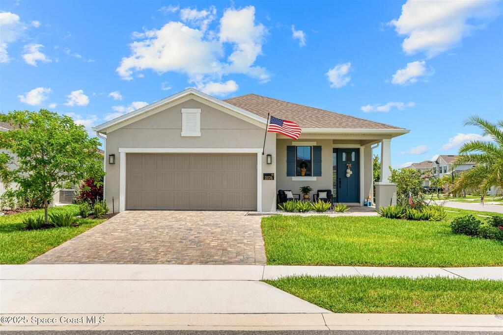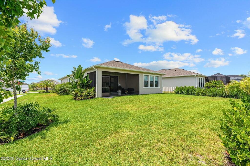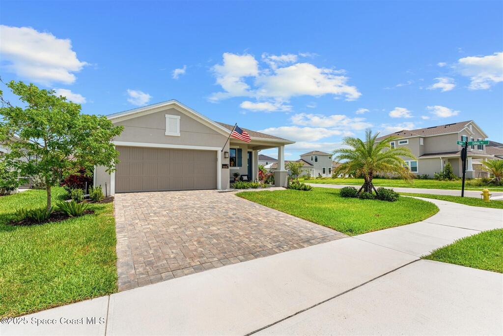 Bright, open, and welcoming, this charming home in sought-after Pangea Park offers ample coastal charm in a fantastic location. Welcome home to this beautiful 3/2 CBS residence where contemporary design and cozy comfort are found in equal measure. The paver front patio is the perfect place to sip your morning coffee or greet guests as they arrive. Through the front door, you'll enter into an open floorplan, connecting the living, dining, and kitchen spaces, bathed in natural light. The modern kitchen features two toned cabinetry, a glass front refrigerator, gas range, and a breakfast bar/island with quartz counters. The main living area opens via triple sliders to the screened-in back patio where you can relax and watch the sunset. The spacious primary suite includes a clean, cool, white-and-grey bathroom with glass and tile walk-in shower, dual sinks, and plenty of storage space. Two more bedrooms and one additional bathroom offer flexibility and functionality. SEE ''MORE''.