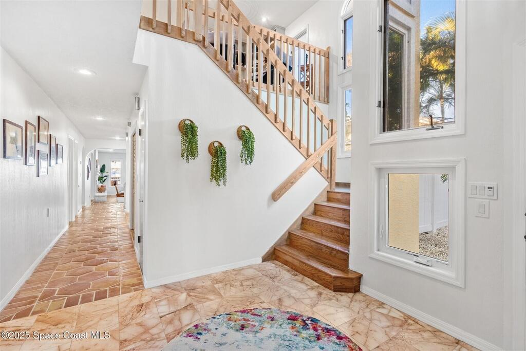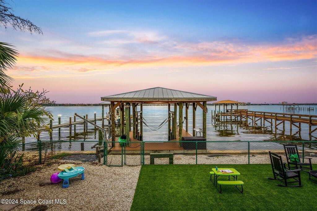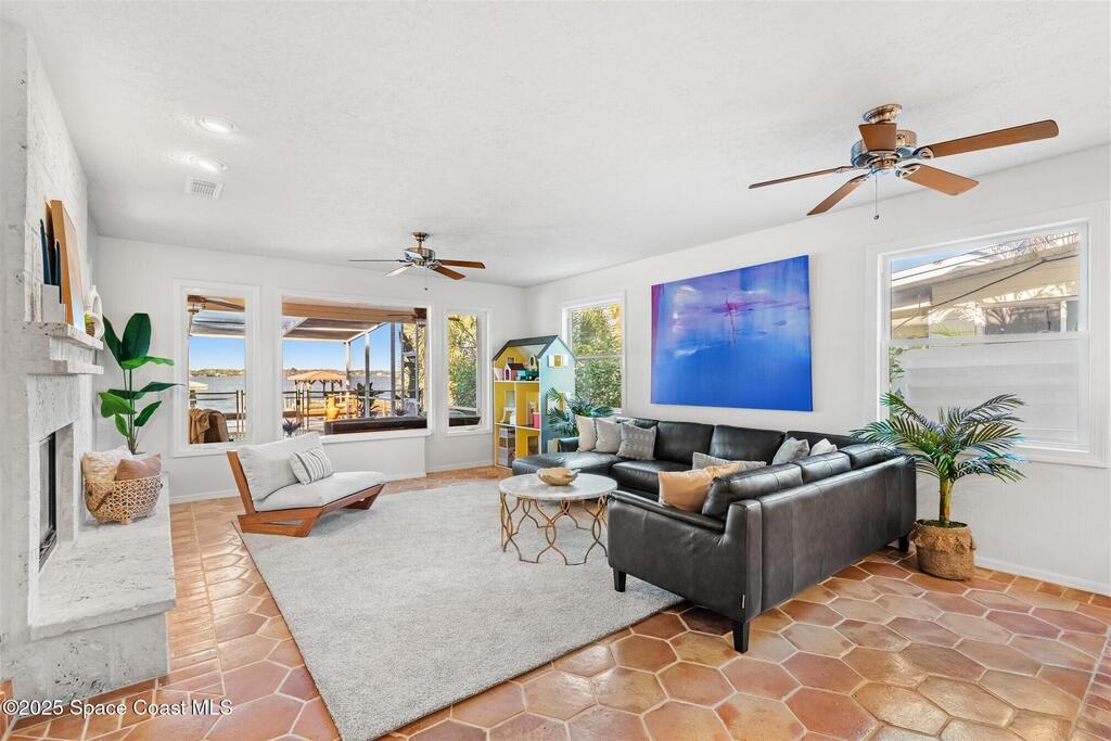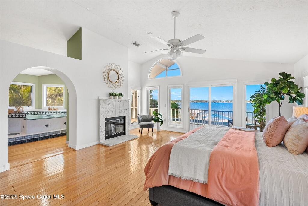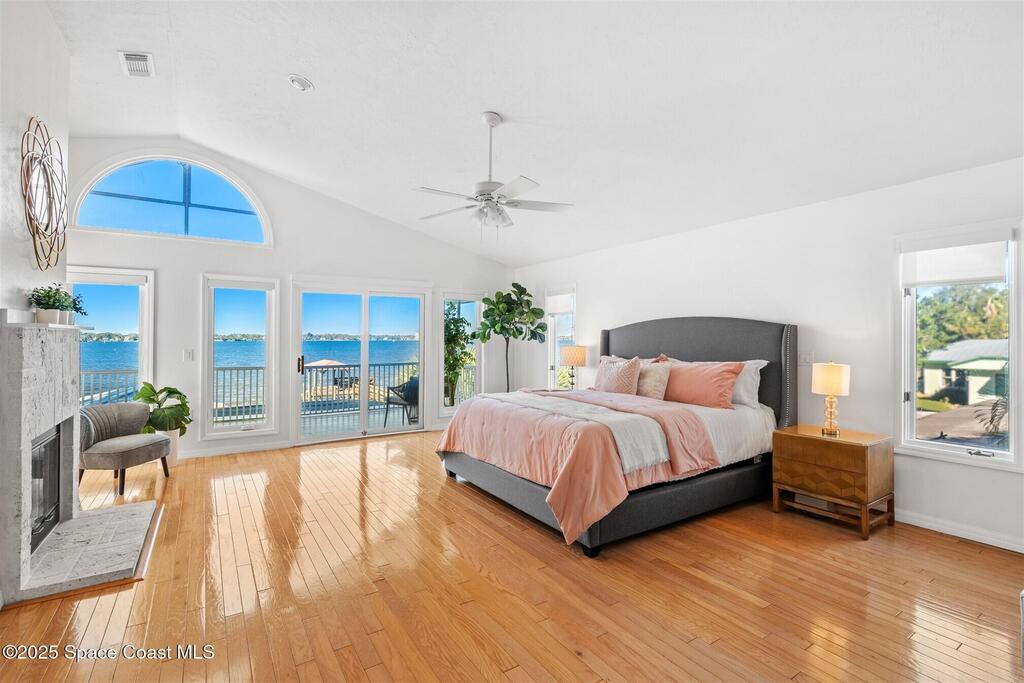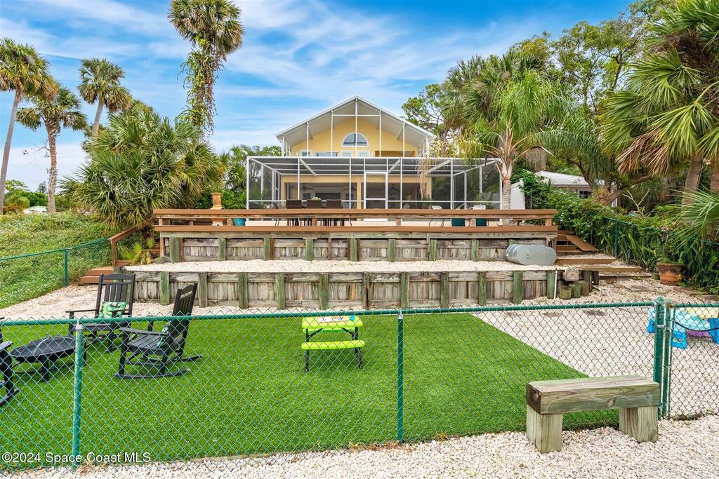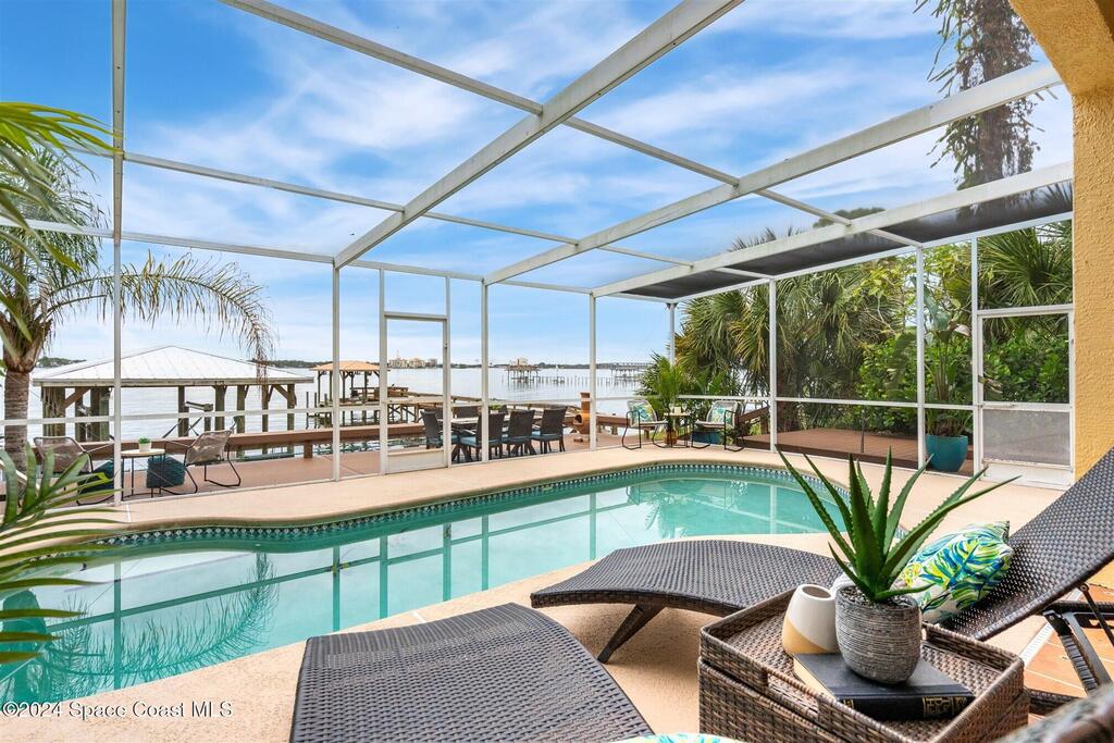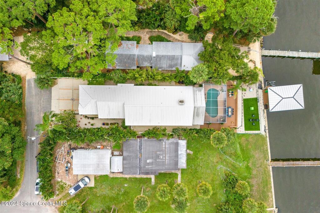 Incredible waterfront opportunity--13 feet above sea level with NO flood insurance required! This spacious 3,960 sq ft home features 4 bedrooms, 3.5 baths, an office, loft, and bonus room, offering versatile space for families or multigenerational living. Boaters will love the covered dock with 6,000 lb boat lift, jet ski lift, and composite decking, all overlooking the Indian River. Enjoy direct river frontage, and easy access to sandbar islands, dockside restaurants, and more. The home features a private in-law suite with its own entrance, kitchen, living room, bedroom, and bath--perfect for guests or rental income. Upstairs, the luxurious primary suite offers floor-to-ceiling windows, private balcony, jacuzzi tub, and walk-in shower overlooking the water. A coral stone fireplace, tankless gas water heater, stainless steel appliances, and new metal roof (2022) add both charm and function. See ''MORE''