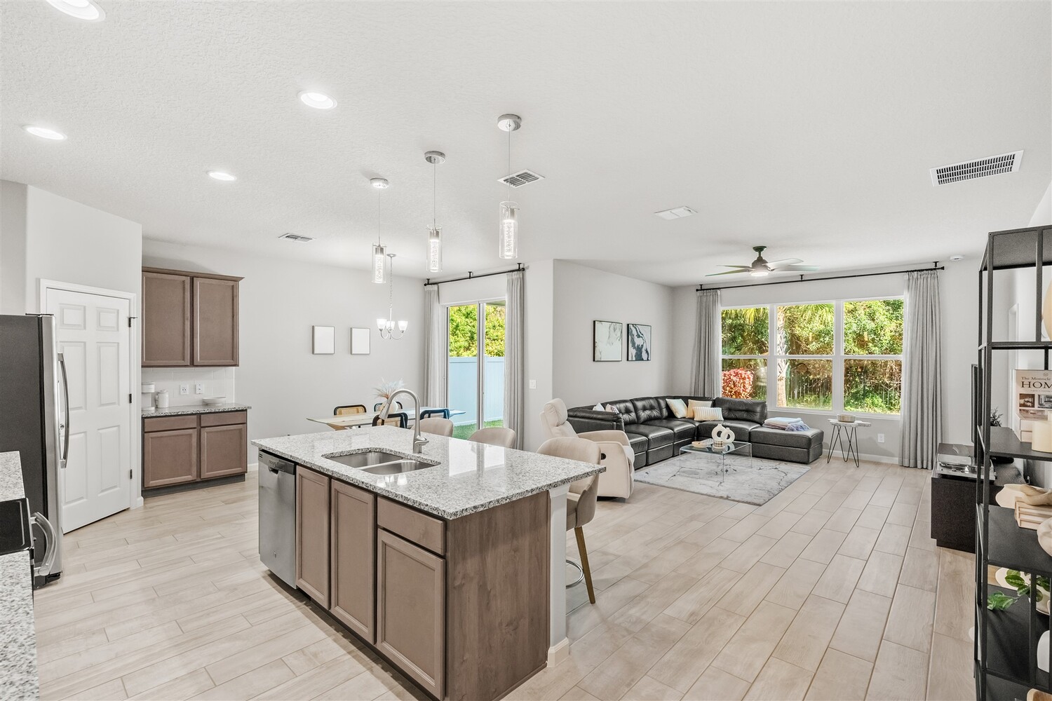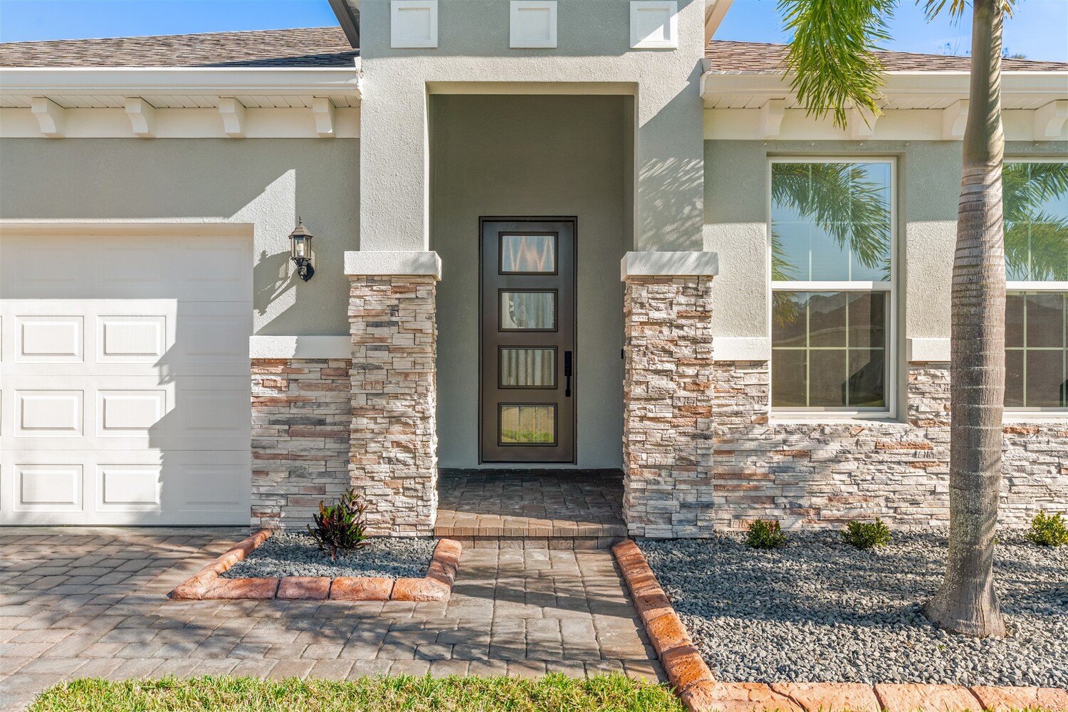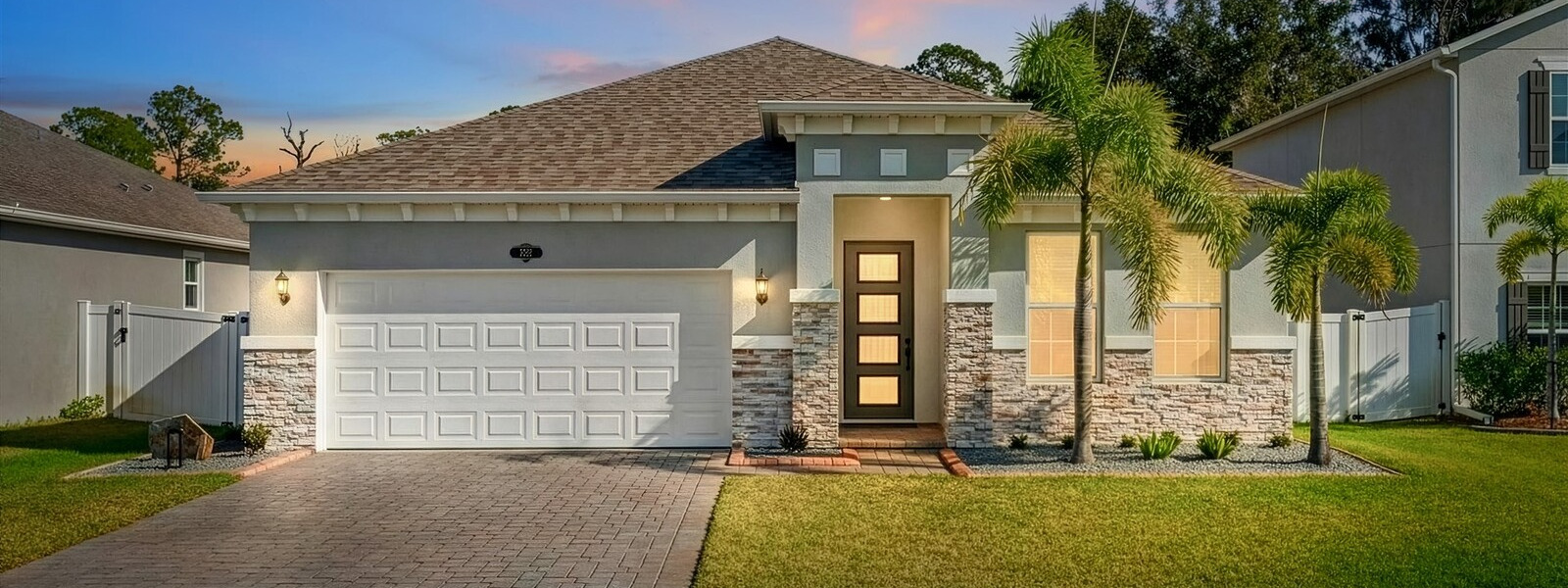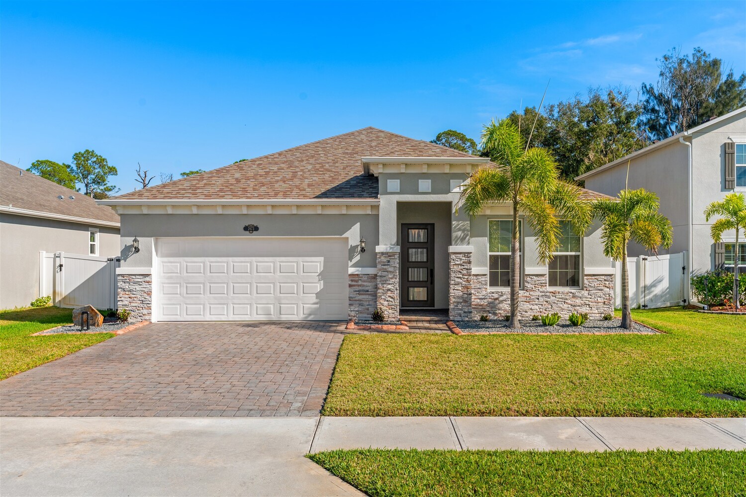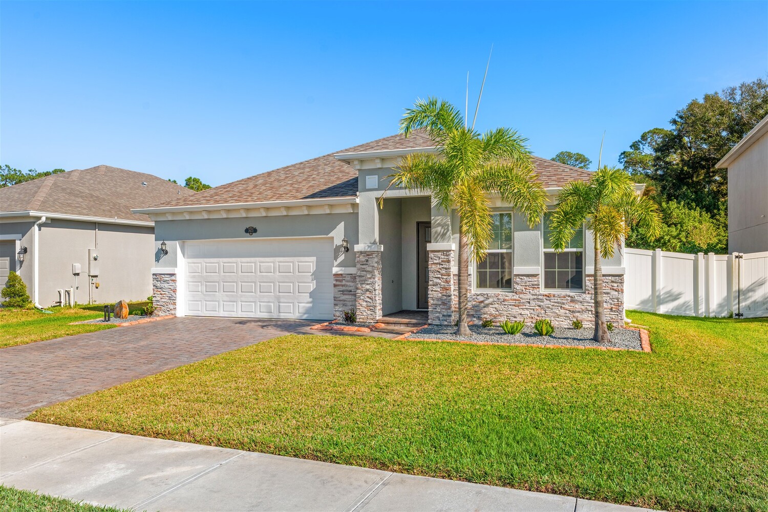 Better than new! Located in a gated community and backing to quiet greenery, this light and bright home in West Melbourne offers cozy charm paired perfectly with contemporary amenities. From the moment you arrive, you'll appreciate the modern elevation with paver drive, stone accents, and clean lines. Open the custom front door to find plenty of natural light shining through, allowing immediate access to the bedrooms and leading to the heart of the home. The deluxe kitchen features granite counters, pantry, ample cabinetry, and stainless steel appliances, perfect for entertaining and intimate family gatherings alike. The private primary suite has a custom shower and sizeable closet. All bathrooms feature granite counters and lovely cabinetry! This desirable community in West Melbourne gives you easy access to A-Rated schools, parks, shopping, dining, and is just a short drive to L3Harris, Northrop Grumman and the airport.