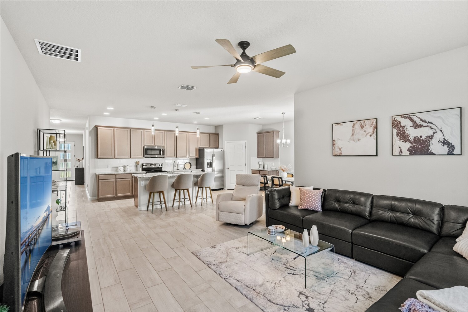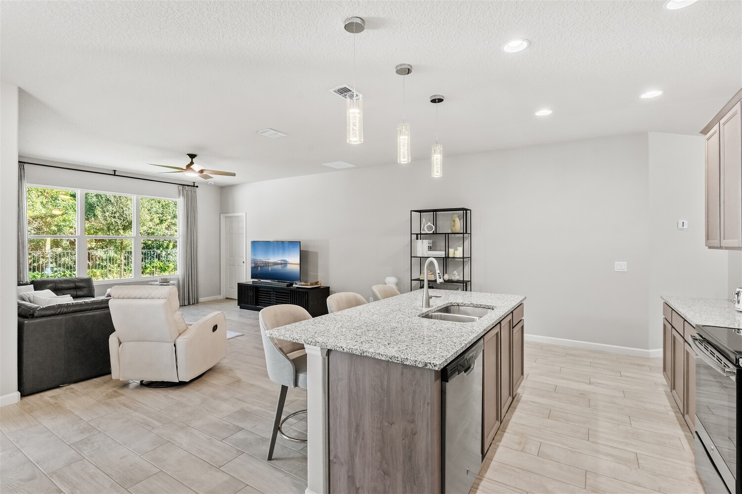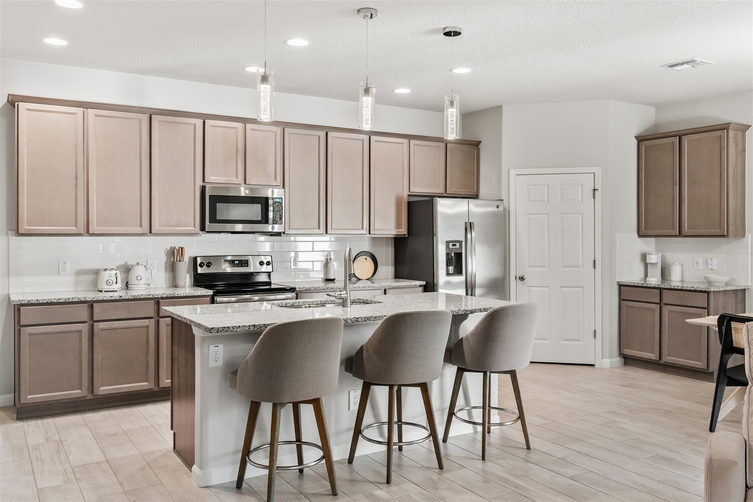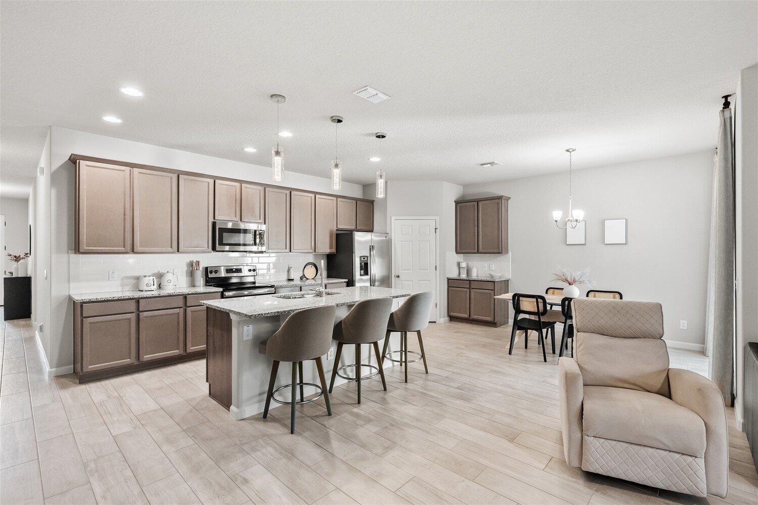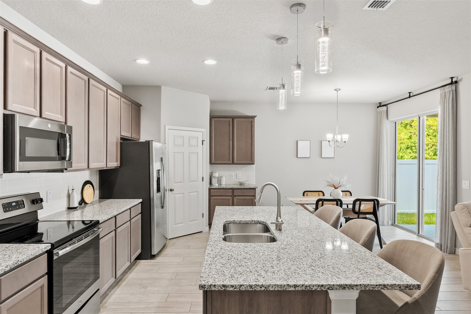 Better than new! Located in a gated community and backing to quiet greenery, this light and bright home in West Melbourne offers cozy charm paired perfectly with contemporary amenities. From the moment you arrive, you'll appreciate the modern elevation with paver drive, stone accents, and clean lines. Open the custom front door to find plenty of natural light shining through, allowing immediate access to the bedrooms and leading to the heart of the home. The deluxe kitchen features granite counters, pantry, ample cabinetry, and stainless steel appliances, perfect for entertaining and intimate family gatherings alike. The private primary suite has a custom shower and sizeable closet. All bathrooms feature granite counters and lovely cabinetry! This desirable community in West Melbourne gives you easy access to A-Rated schools, parks, shopping, dining, and is just a short drive to L3Harris, Northrop Grumman and the airport.